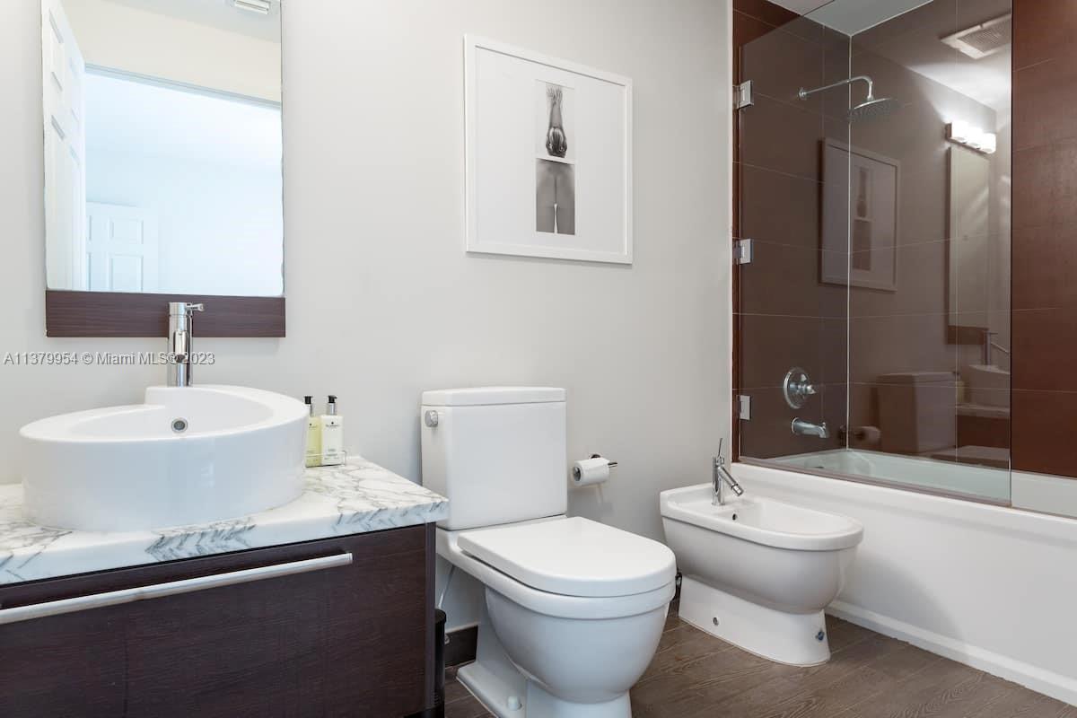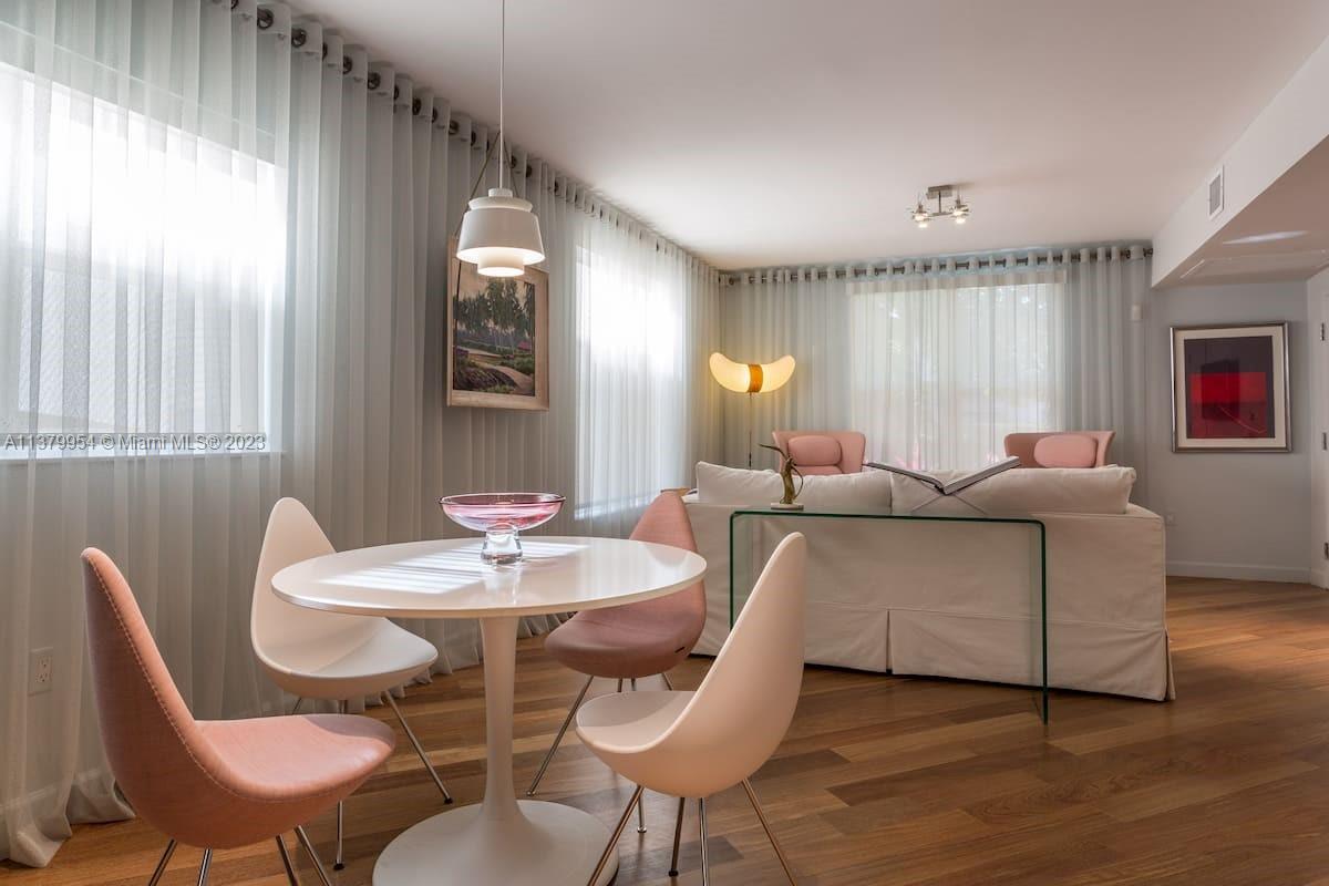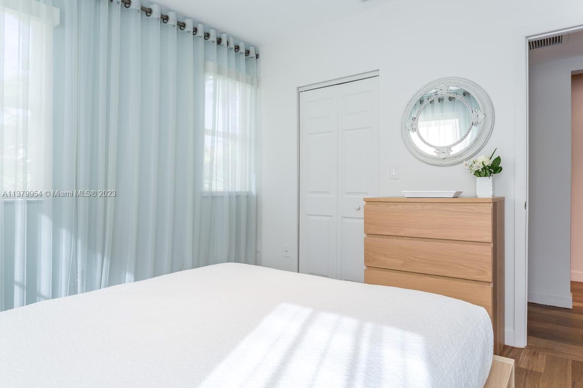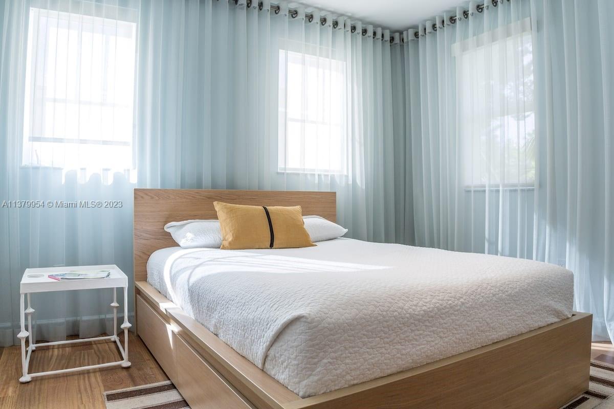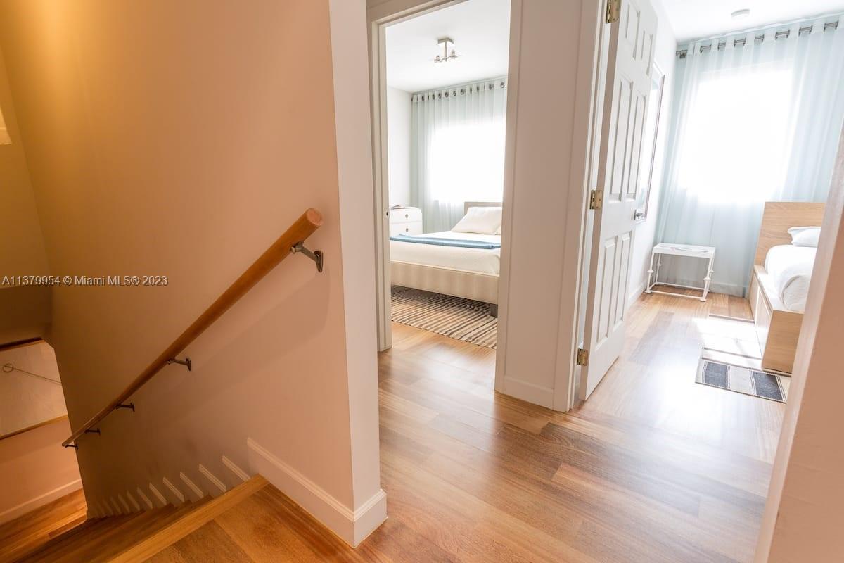Stunning 2 floors townhouse with 2 bedrooms, 2 full baths + 1 half guest bath. Bright corner unit offers semi private gated garden entrance. Beautiful garden views from the living room. High end finishes: Brazilian hardwood floors, Carrara marble countertops, Italian kitchen cabinetry, Kitchenaid appliances, designer lighting fixtures, newer air conditioning units with Nest thermostat, washer and dryer, new large custom closet in master bedroom. Hurricane impact windows. Best location in South Beach, 4 min walk to the beach but in a quiet and low traffic street; near restaurants, shops and everything Miami Beach has to offer. HOA fee includes high speed internet, cable, water, landscape, etc. Furniture is negotiable. Move in condition and ready to sell.