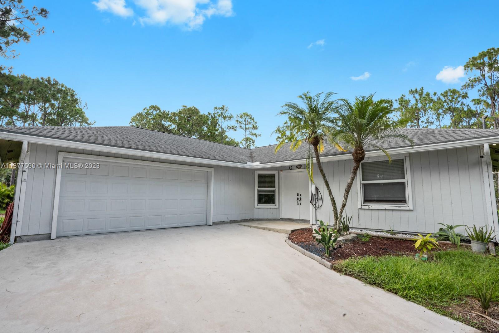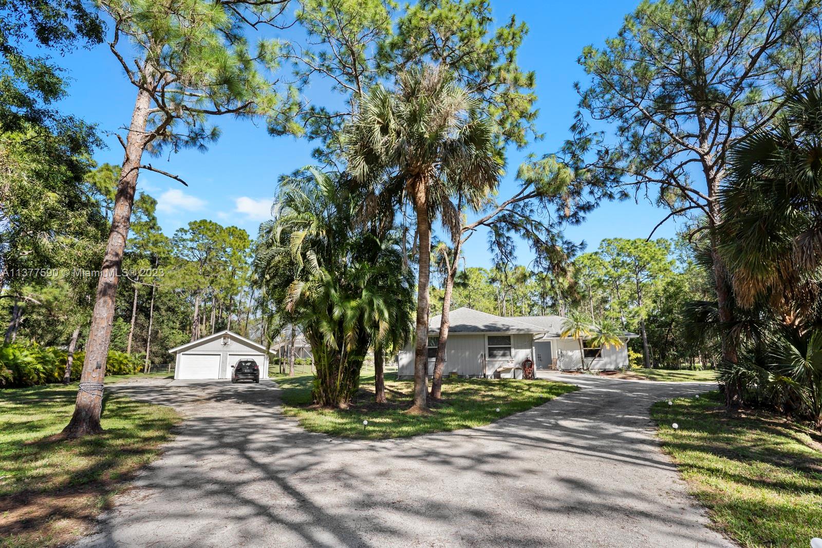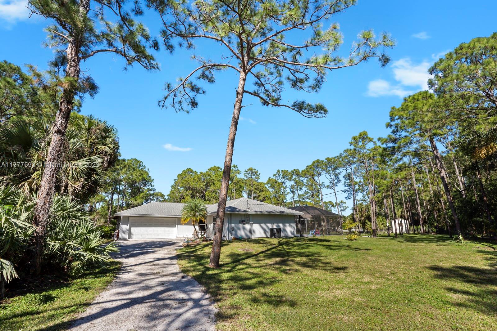 This beautiful home boasts a charming and spacious interior perfect for any family. The 3-bedroom, 2-bathroom property features a fully renovated kitchen with stainless steel appliances and ample counter space, ideal for those who love to cook and entertain. The bright and airy living room leads to a covered patio & screened in pool. The property sits on 1.15 acres allowing maximum privacy and space for family and entertaining. The master suite features a large walk-in closet and a master bathroom with dual vanities. Additional features include an attached 2-car garage that has been converted into additional living space, a separate 2-car garage & ample storage space. Conveniently located near shopping, dining, and entertainment, this property is a must-see!