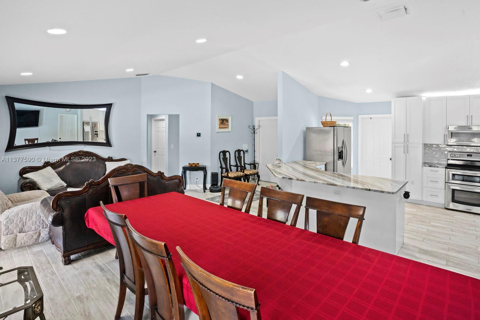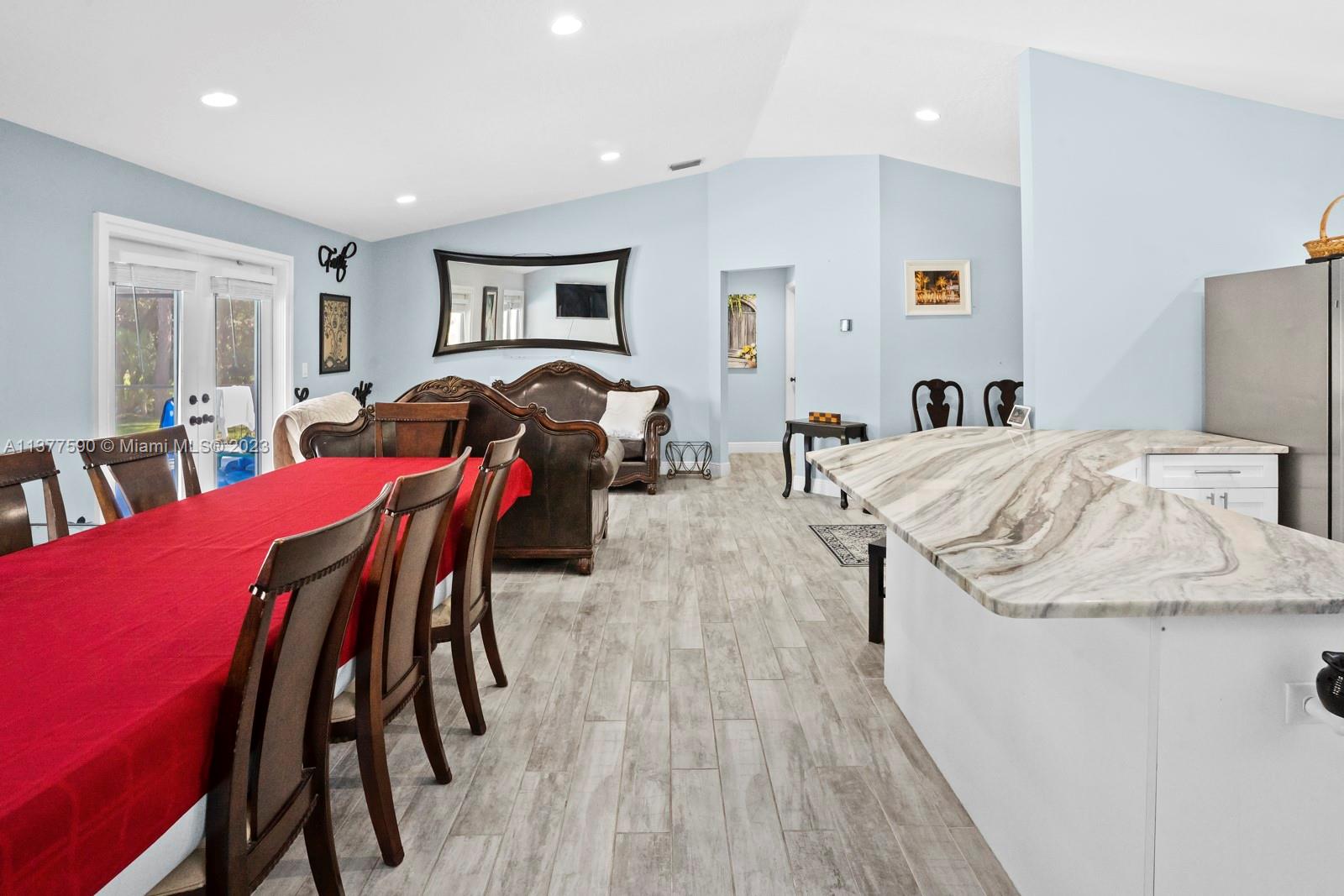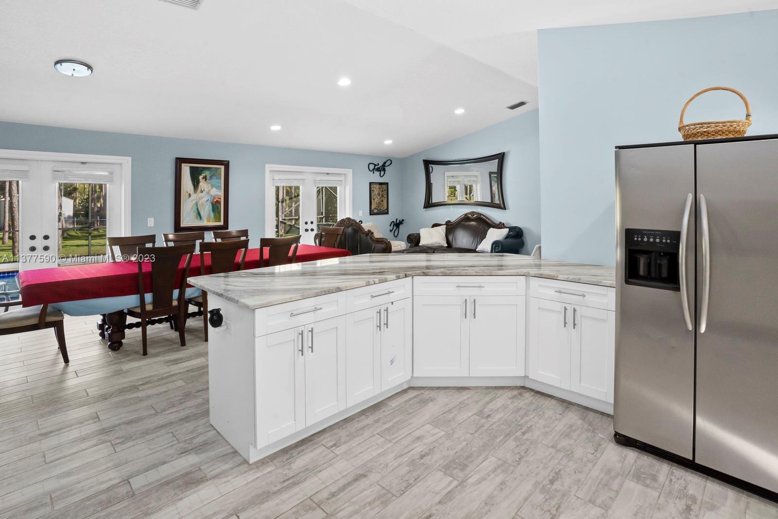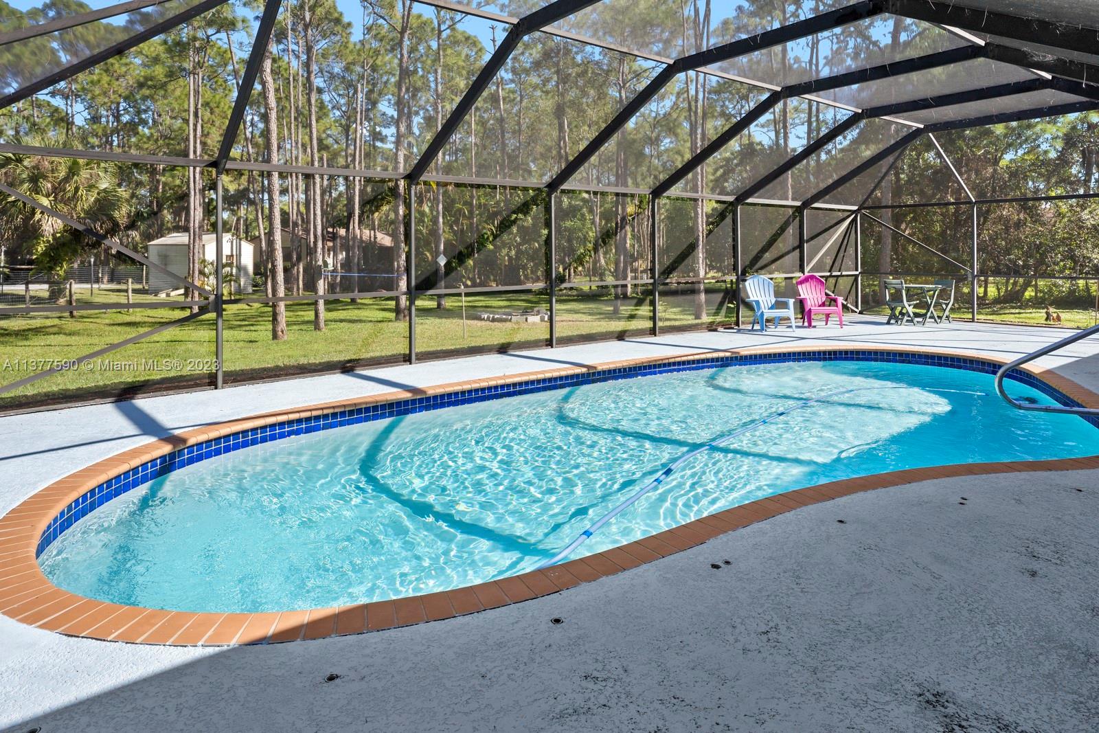This beautiful home boasts a charming and spacious interior perfect for any family. The 3-bedroom, 2-bathroom property features a fully renovated kitchen with stainless steel appliances and ample counter space, ideal for those who love to cook and entertain. The bright and airy living room leads to a covered patio & screened in pool. The property sits on 1.15 acres allowing maximum privacy and space for family and entertaining. The master suite features a large walk-in closet and a master bathroom with dual vanities. Additional features include an attached 2-car garage that has been converted into additional living space, a separate 2-car garage & ample storage space. Conveniently located near shopping, dining, and entertainment, this property is a must-see!