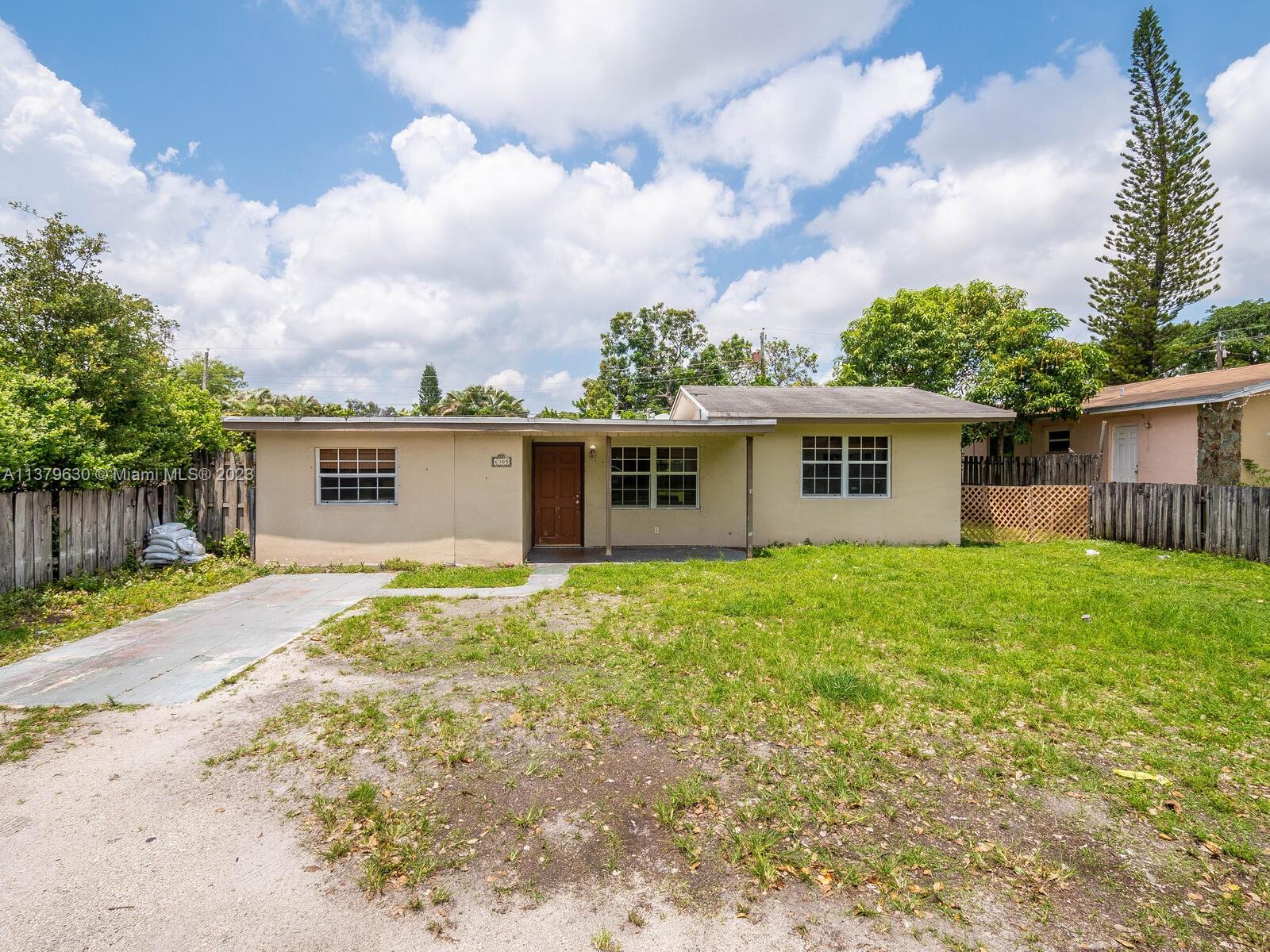 Excellent opportunity to own a single family home located just west of the Turnpike in Central Hollywood, minutes away from the Hard Rock Hotel & Casino, Memorial Hospital, and Hard Rock Stadium. This 3/2 home has been well-maintained and is in move-in condition. Tile floors throughout, granite counters in kitchen, one bedroom and kitchen with open to the back patio. Includes all appliances and washer and dryer hookups. It sits on a 6,671 sq ft lot, offering plenty of pool space. The large fenced backyard is perfect for pets. Hurricane shutters, one shed for storage, no HOA. The A/C and water heater are in good condition. This property is in a great location, close to shopping, dining, and schools. Access to the Turnpike is just minutes away.