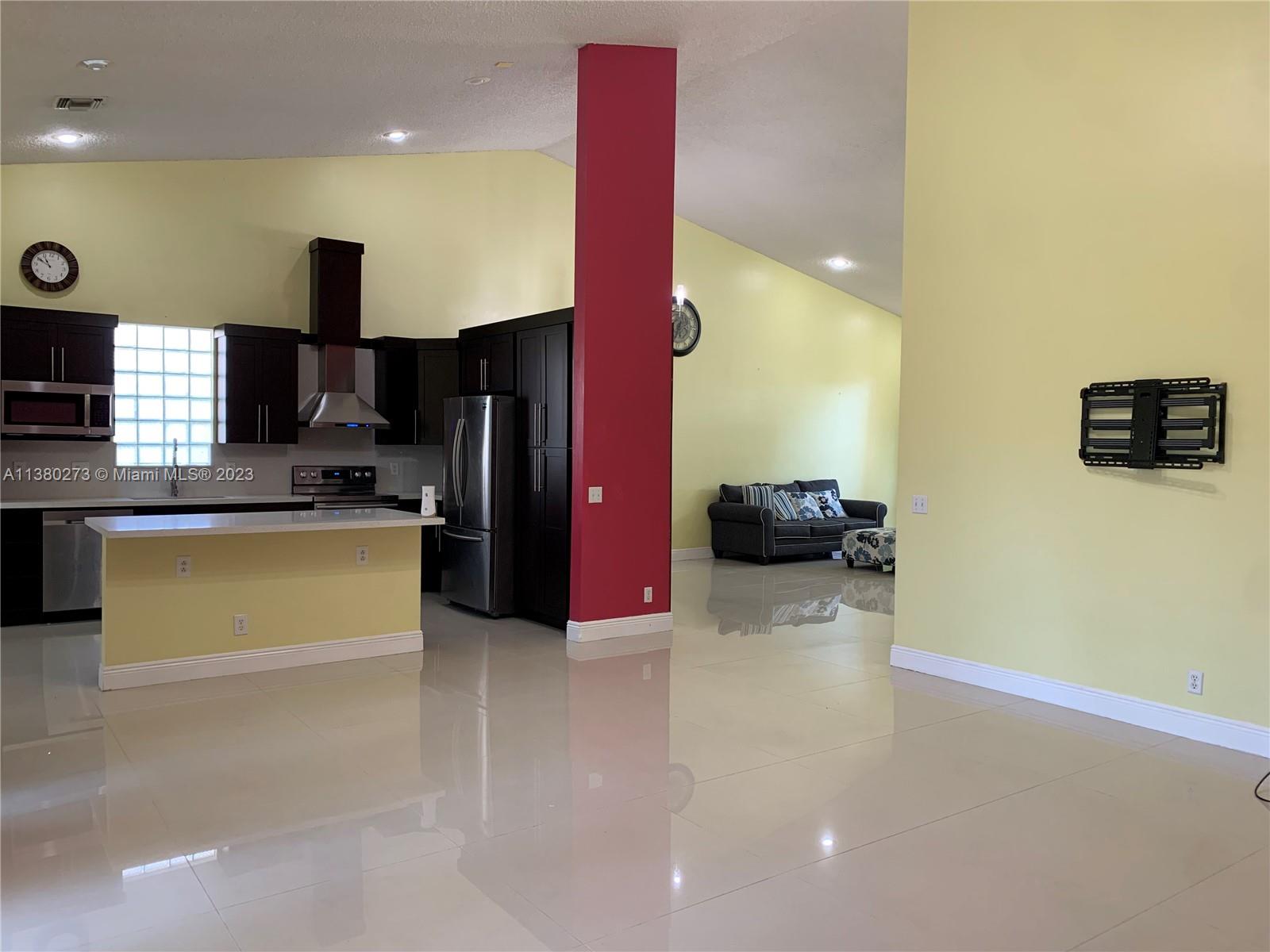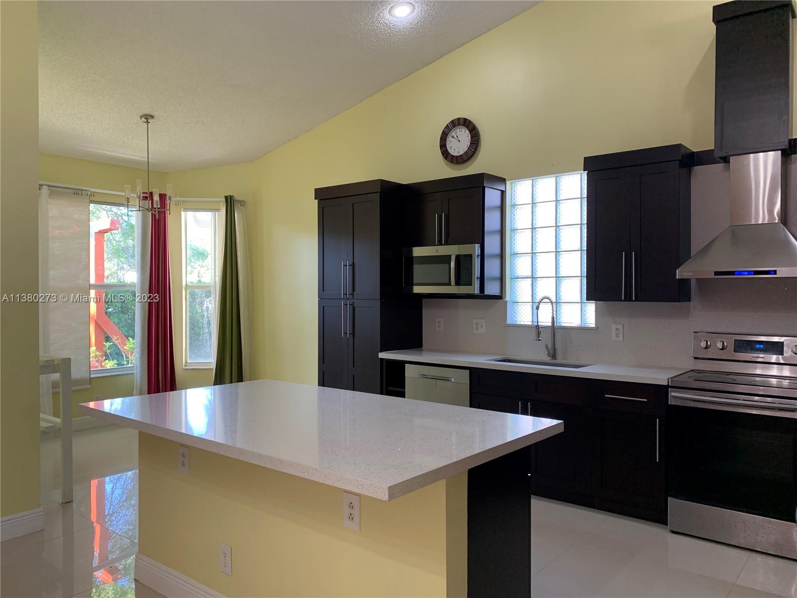 Well-maintained and Spacious home is an ideal choice for anyone. Boasts four bedrooms, 2.5 bathrooms with high ceilings, along with a generous living area that's perfect for hosting guests. Recently renovated kitchen features stainless steel appliances and includes an eat-in area, while an additional dining area and living room provide additional space for relaxation and entertainment. Master bedroom is massive, offering a large walk-in closet, two sinks with cabinet storage, and enclosed shower. Backyard overlooks a beautiful lake with a fountain and features a swing for ultimate relaxation. 2016 roof, accordion shutters, wiring for an alarm system, two car garage, parking for three cars in driveway. $100K+ in upgrades. Low HOA, Close to Shopping Centers, Top-rated schools nearby.