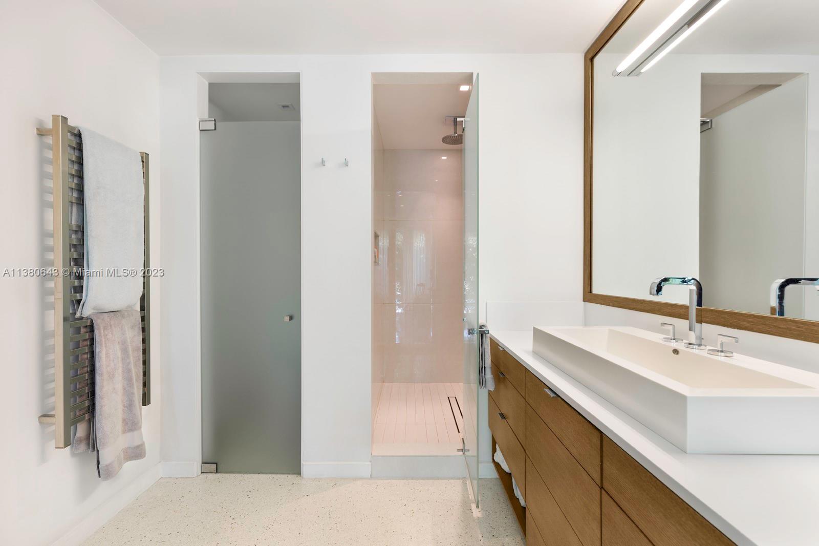 Captivating, Modern home on a corner lot in the exclusive island of Key Biscayne. Acclaimed design team: Bruno Elias Ramos(Architect), Robert Rionda(Interiors) & Michael Thiel(Landscape Design). Dramatic, light-filled living spaces feature double-height ceilings, terrazzo floors, smart home technology, surround sound system and exquisite custom details throughout. Stunning kitchen w/ high-gloss Italian cabinetry, quartz & stainless-steel countertops + Sub-Zero/Gaggenau appliances. Incredible primary suite offers sitting area, private balcony & spa-like bath. Solar panels lower electric bill by 50%. Enjoy views of the Miami skyline from the roof-top terrace w/ enclosed office area and a playroom. Ultra-private, landscaped garden, covered terrace, summer kitchen & heated infinity pool & spa.