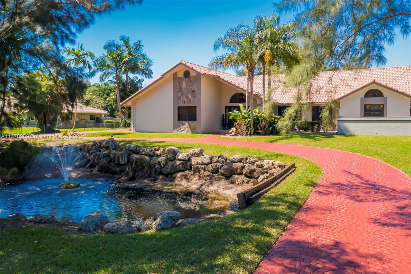 PRICE IMPROVEMENT!!! Amazing 7 bdrm + theater/media rm, 5 bath, PLUS huge in-law quarters with full kitchen/living area! Situated on over an acre with private gate. Located in sought-after Equestrian community of Plantation Acres. Beautifully updated chef’s kitchen w/ quartzite counters, SS app, center island, soft close drawers & cabinets, double oven & coffee bar. NEW Impact windows/doors & NEW whole house generator! Full home sec. system w/outside cameras! Watch fish in pond or swim in the screened in, saltwater pool w/fountain. Backyard has fruit trees, and huge yard provides plentiful space for entertaining. Large storage shed to store your golf cart, etc. Located near Sawgrass Mall & American Heritage-FL #1 Private School.Near 595, 10 min to FLL Airport, 5 min to FL Panthers Arena