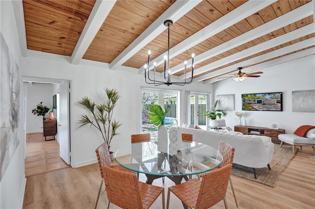 Mid Century 2 Bed 2 Bath Waterfront Home in Sought After Shady Banks. Long Tranquil Water views down the Canal to the New River. Open Floor Plan, Vaulted Exposed Beam Ceilings. Freshly Painted Inside & Out. Large Primary Bedroom with Walk in Closet, Bath w/ Spa Tub, Separate Shower. 21 ft Dock, No Fixed Bridges, Ocean Access. Beautiful Mature Oak Tree, Impact Windows/Doors. French Doors provide Natural Light & Water Views from Living & Primary Bedroom. Enjoy Water Views while having your Morning Coffee & Afternoon Cocktails on the Patio Swings. Stamped Concrete Drive w/ Plenty of Parking & 1 Car Garage w/Separate Utility/Laundry Room. Down the street from 6 Acre Hortt Park w/ Tennis, Volleyball Walking Paths. Secluded Neighborhood Surrounded by the New River with One Way In/Out. A Must See