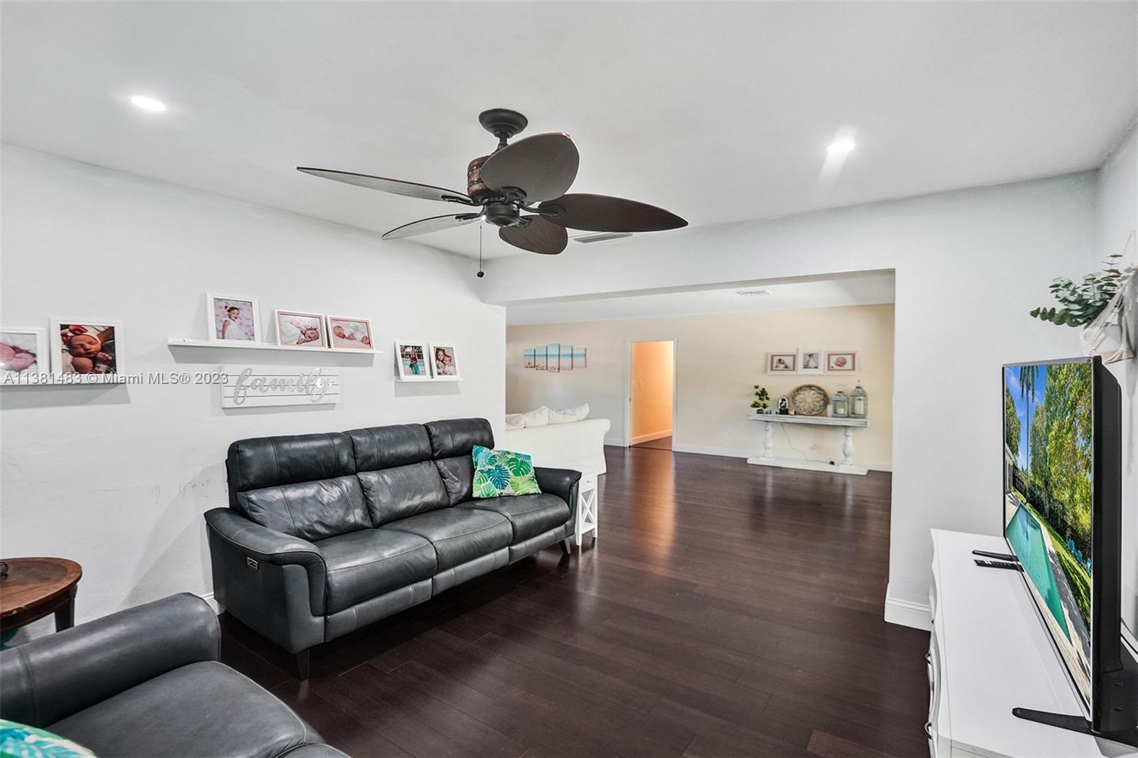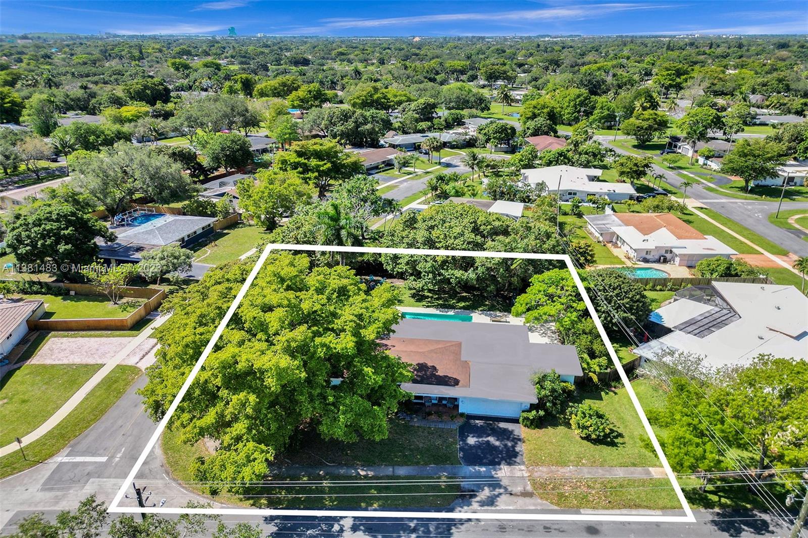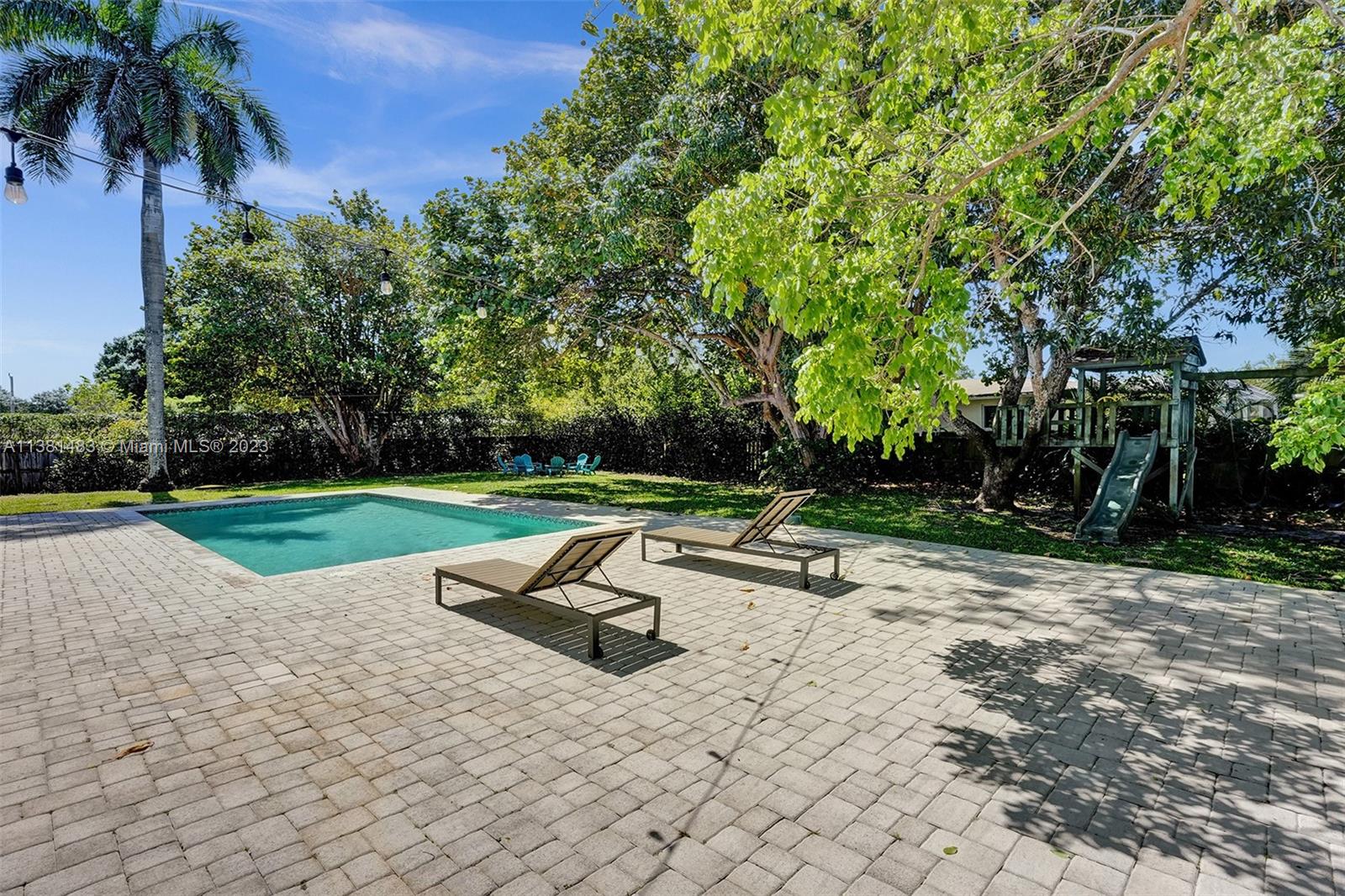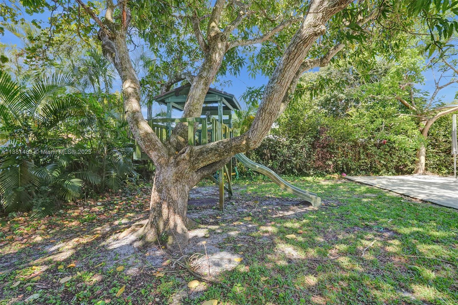 Spacious 3/2 home w/office or 4th bedroom presents spacious floor plan over 2700 total sf*All living areas open to beautiful views of huge pool & expansive paver patio, fire pit area, tree house w/ swings & plenty of green space*3 oversized impact glass doors across entire rear of home provide plenty of light & lead to 16,481 sf yard*Interior offers eat in kitchen, TV rm, living rm, family rm, office/bdrm, & laundry & storage rm w/generous pantry*Engineered wood flooring creates a seamless flow thru-out*2 car garage, tankless water heater, reverse osmosis water system, & roll down storm shutters*Situated on .38 acre oversized corner lot w/fenced yard & lots of trees provide plenty of shade & mangoes*Walk to Fig Tree & Heritage Park*Easy access to highways, shopping, schools & entertainment