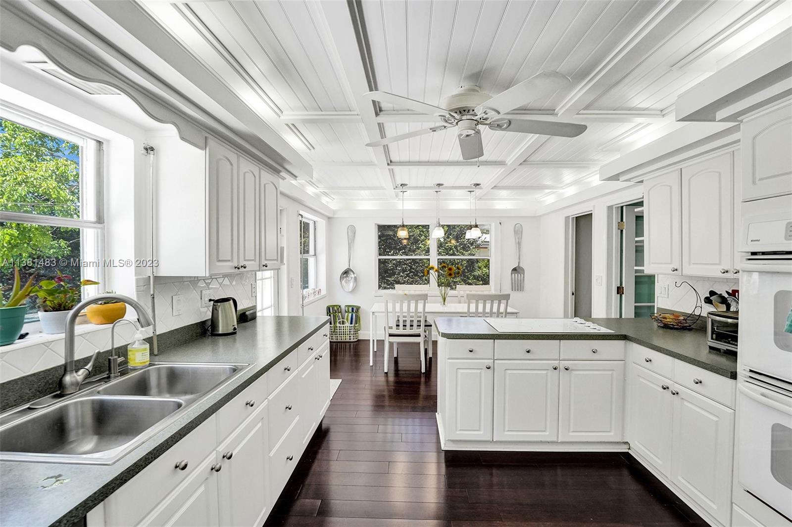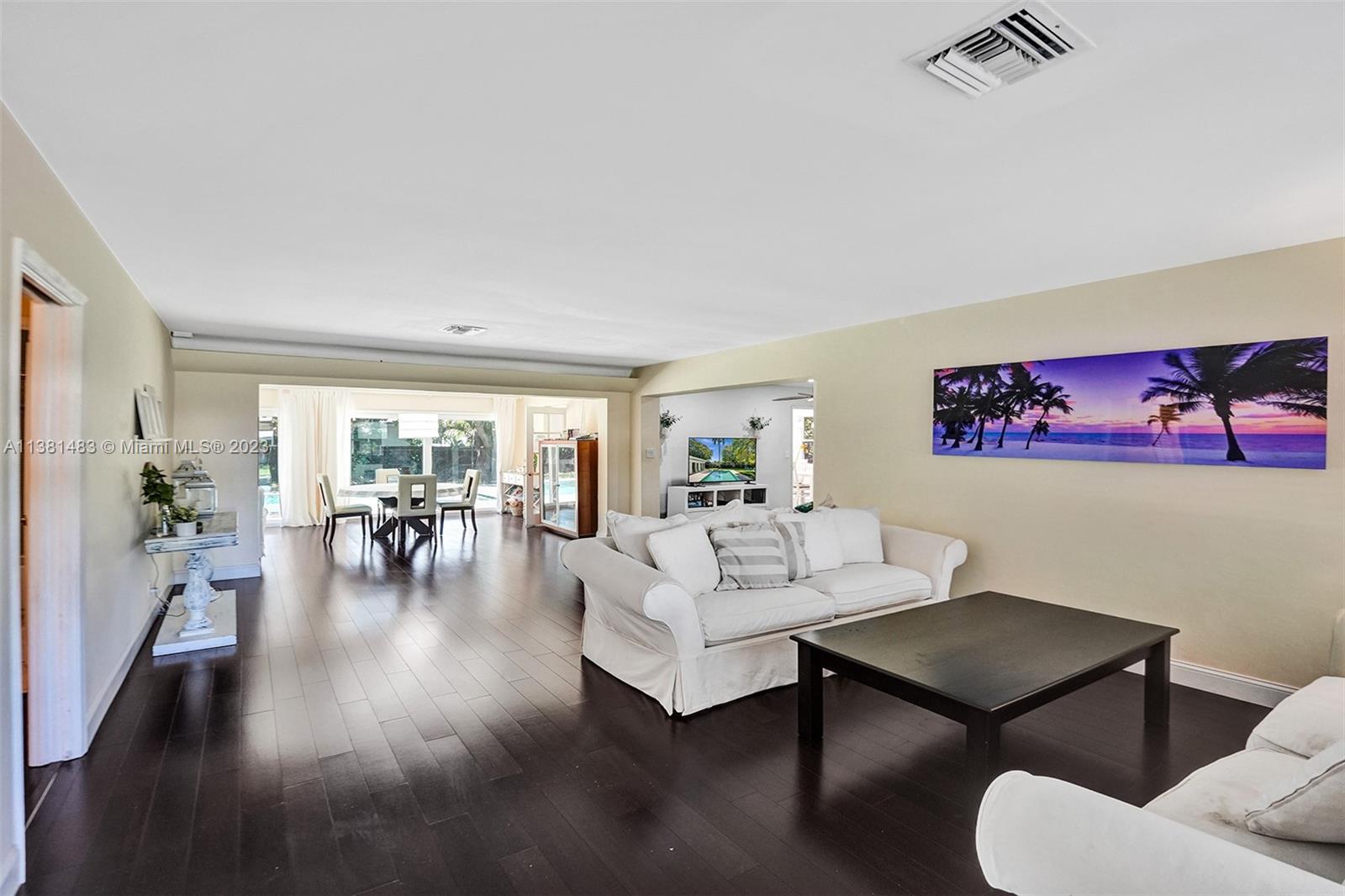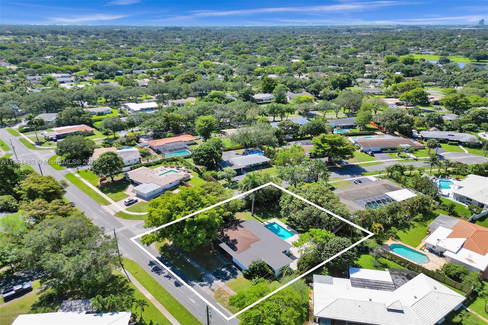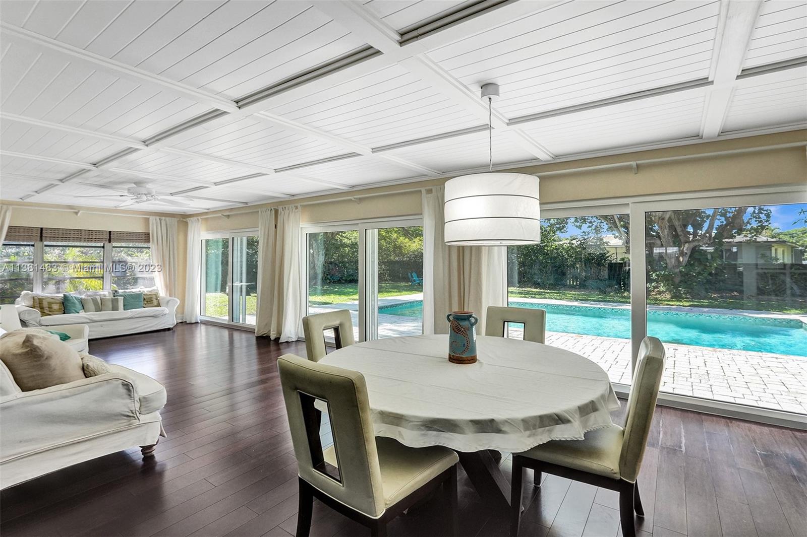 Spacious 3/2 home w/office or 4th bedroom presents spacious floor plan over 2700 total sf*All living areas open to beautiful views of huge pool & expansive paver patio, fire pit area, tree house w/ swings & plenty of green space*3 oversized impact glass doors across entire rear of home provide plenty of light & lead to 16,481 sf yard*Interior offers eat in kitchen, TV rm, living rm, family rm, office/bdrm, & laundry & storage rm w/generous pantry*Engineered wood flooring creates a seamless flow thru-out*2 car garage, tankless water heater, reverse osmosis water system, & roll down storm shutters*Situated on .38 acre oversized corner lot w/fenced yard & lots of trees provide plenty of shade & mangoes*Walk to Fig Tree & Heritage Park*Easy access to highways, shopping, schools & entertainment