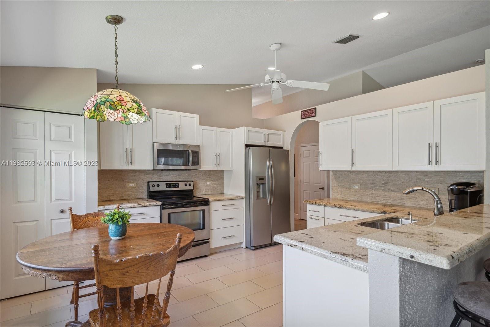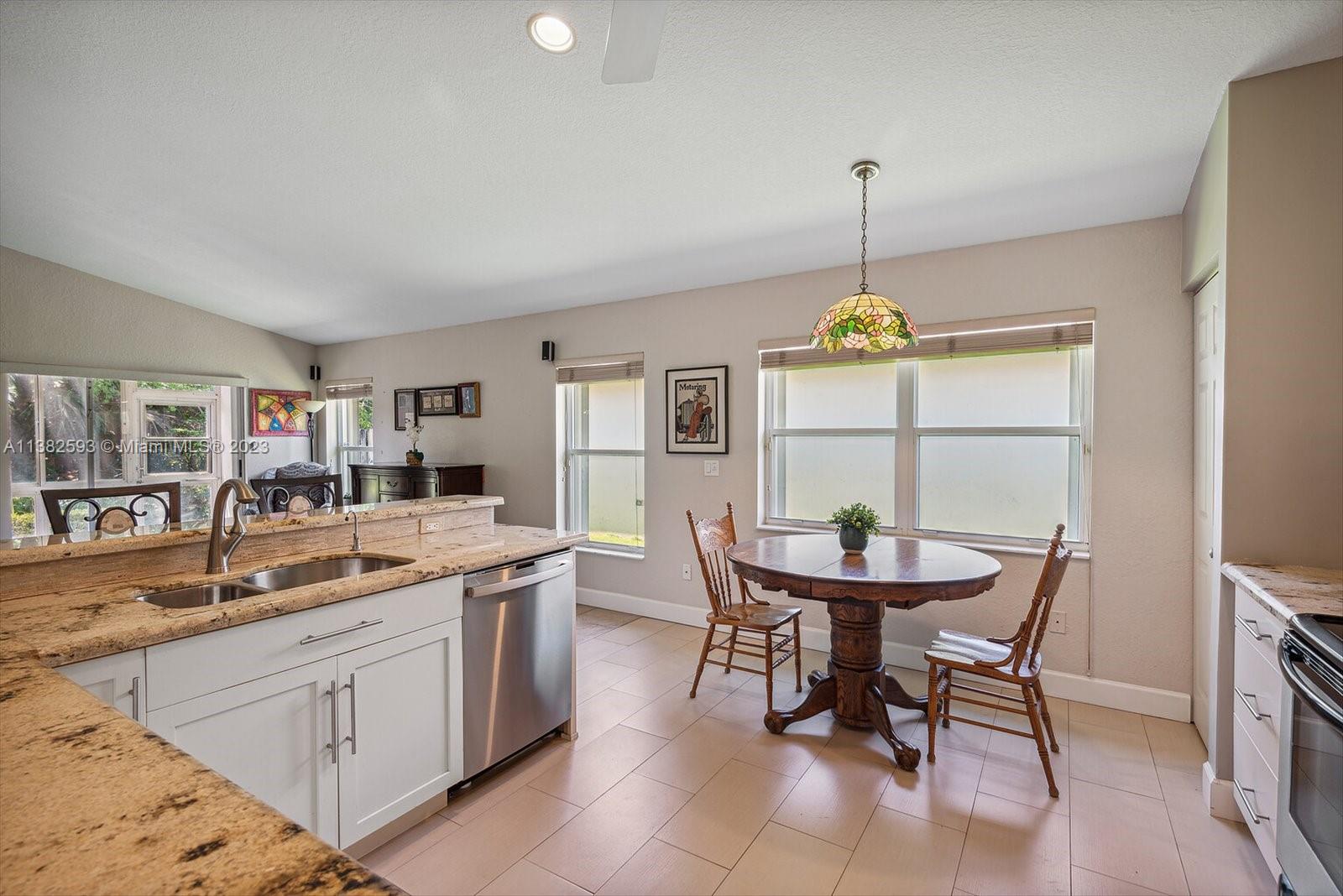 Amazing 3 bedroom, 2 baths, 2 car garage without back neighbors in gated Crescent Lakes in sunny Boca Raton. ROOF 2020, A/C 2021, WATER HEATER 2013. The home features an open-concept floor plan with vaulted ceilings. Updated kitchen with granite countertops and SS appliances. The master suite features views to preserve, 2 walk-in closets, an updated master bath featuring dual sinks, Roman tub w/separate shower. Enclosed sunroom perfect for entertaining. Accordion shutters, impact-rated garage door. Crescent Lakes is a beautiful gated community with a low HOA offering a beautiful clubhouse, updated gym, community pool, Hot tub, and 2 clay tennis courts. No membership community. Monthly fees include lawn care, basic cable, and a clubhouse.