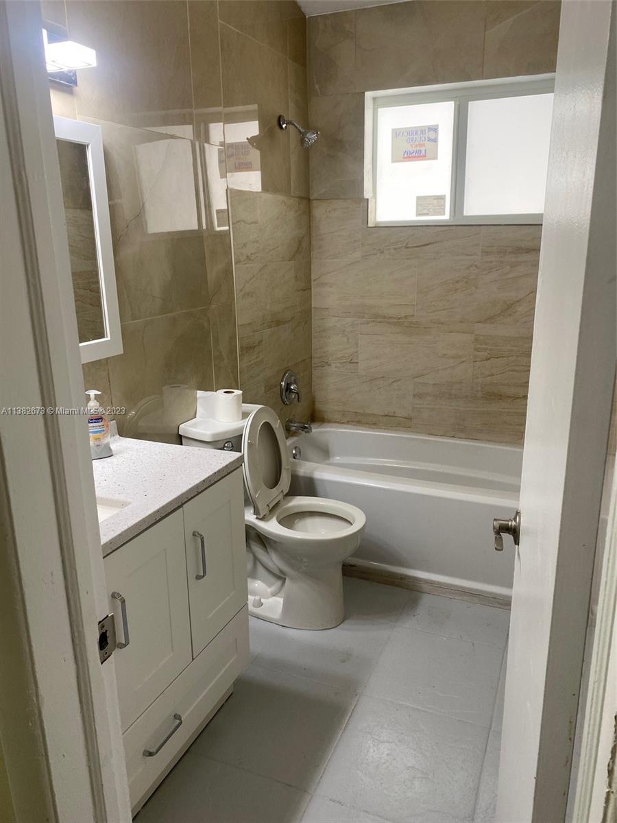 Beautiful renovated 3 Bedroom house with impact windows and doors - large back yard -new white kitchen with 36 inch high cabinets -new kitchen appliances and ac will be installed prior to closing- updated bathroom tiled to ceiling - high ceilings through out house - large screen porch - close to house of worship - close to shopping- bus stop on corner- great schools - ready to move in