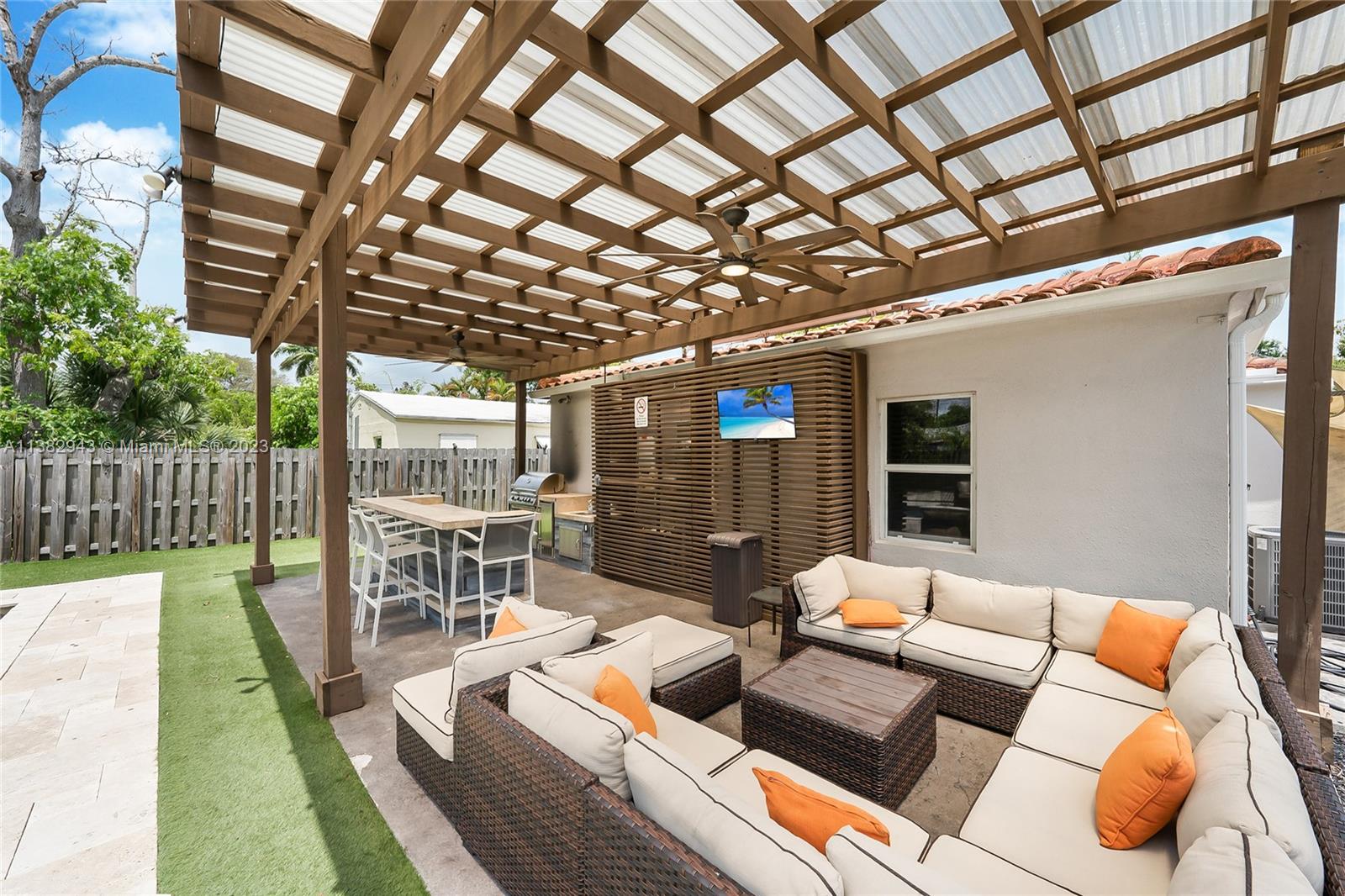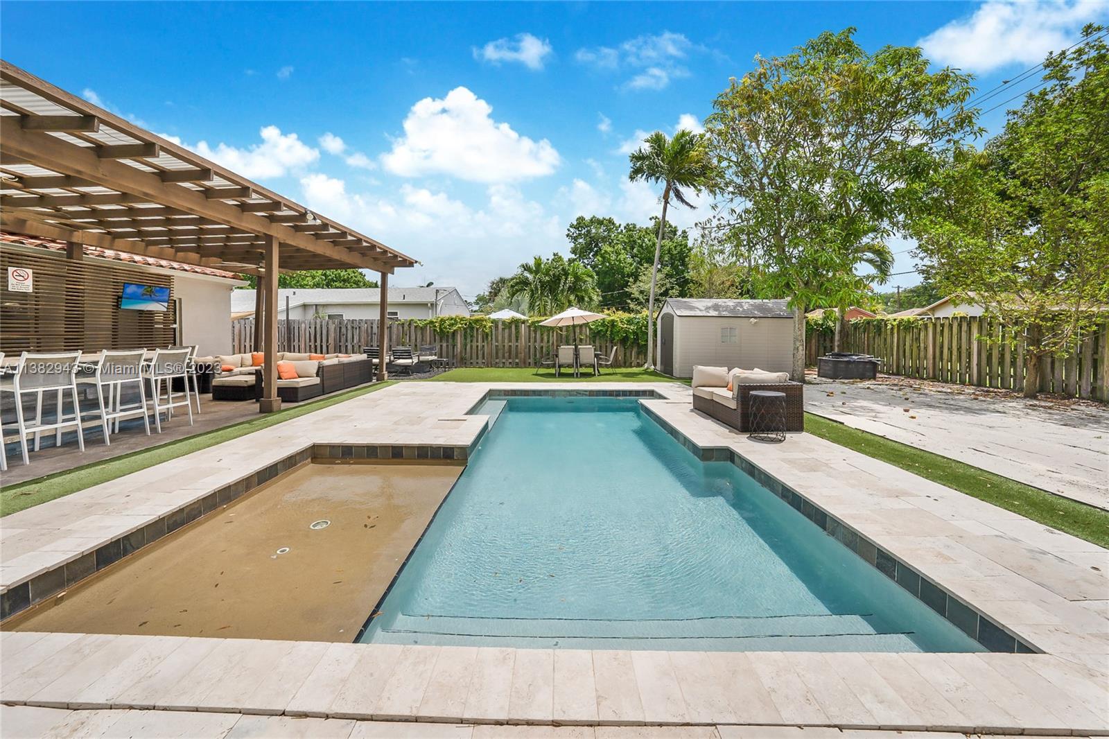 One-of-a-kind opportunity! Stunning 3/2 single family home in Croissant Park featuring the perfect outdoor space to entertain. The fully fenced yard provides privacy for the heated saltwater pool, the modern Pergola shelters a fully equipped summer kitchen with built in gas BBQ, ice maker, dining island & gas fire pit. Completed with a game and a and living room area, The spectacular indoor FEATURES & FINISHES includes Impact windows/doors, updated kitchen and baths, gas tankless H2O heater, 3 yrs AC w/ sanitizing UV light system, The entire home is under water filtration system, and features solar panels, as well as a large driveway to accommodate all guests. PRIME LOCATION in east Fort Lauderdale - minutes from airport, cruise port and the entertainment district.