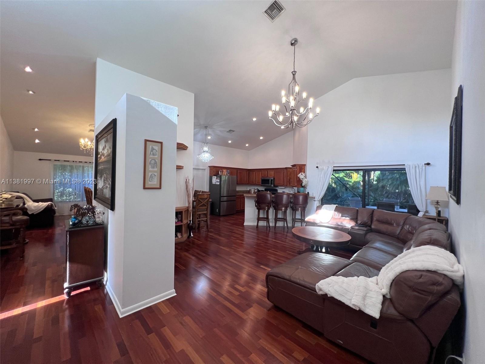 BREATHTAKING 4/2 HOME LOCATED IN HIGHLY DESIRABLE NORTH ORCHARD IN THE PRESTIGOUS COMMUNITY OF FOREST RIDGE! 15 FEET SOARING VAULTED CEILINGS WELCOME YOU INTO THIS UPDATED HOME WITH VERY OPEN SPACIOUS FLOOR PLAN. WOOD FLOORING THROUGHOUT THE HOUSE, MARBLE IN THE BATHS, GRANITE COUNTERTOPS, STUNNING HIGH END CHANDELIERS AND ALL UPDATED LIGHTING FIXTURES. IMPACT GLASS AND ACORDION SHUTTERS OFFER COMPLETE HURRICANE PROTECTION. "A" RATED SCHOOLS, COMMUNITY POOL, TENNIS COURTS, BASKETBALL COURTS, PICKLEBALL COURTS, WALKING & BIKING TRAILS. POLYBUTYLENE PIPES HAVE BEEN REPLACED.