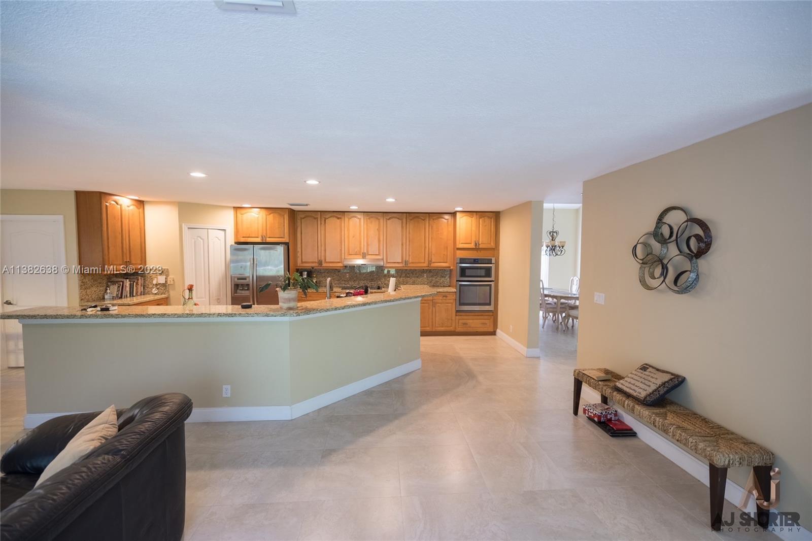 This stunning 5-bedroom, 3-bathroom home is located in the gated community of Chapel Trail Estate. The home has large porcelain flooring on 1st floor and wood laminate flooring on staircase and 2nd floor. It has a spacious kitchen with wood cabinetry and granite tops, stainless steel appliances and walk-in pantry overlooking a large family room. The home has a large backyard with a Mango and banana tree. The roof and dual air condition units were recently replaced. It has ample parking with a 3-car garage and a large driveway. The home comes with lightweight Hurricane Shutters and recently replace impact windows on the two front bedrooms. The Homeowners Association fees are $490 quarterly, which include cable & Internet. This Gem is in high demand.