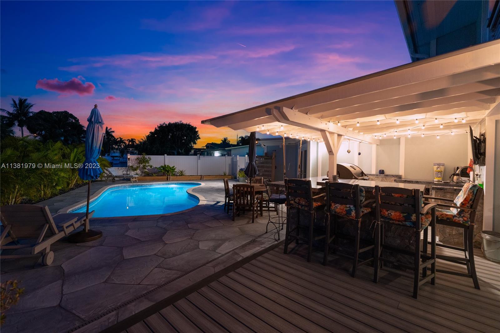 Waterfront 4 bed & 3 bath in Lauderdale Isles, Florida w/outdoor pool-shower on 100 feet of sea wall w/ Ocean access. Entertainment friendly including a saltwater pool, outdoor kitchen w/ grill, fire pit, & bi-level patios & roof deck. Enjoy the privacy of the large, fenced backyard. Boaters will love having up to 48-footers & width of dock + boat of 20’. Dock has 31’ of new bumpers, waterline, & powered w/ (110 v; 50 & 30 amp service). Inside, enjoy the Infrared sauna plus baths come w/ speakers. Updates include Impact Windows, Central A/C & Roof (2020). Winner of Lauderdale Isles "WOW Award" 2021. See attached or request list of outstanding features. Minutes to anywhere w/ quick I-595 & Turnpike Access. Near Hard Rock Hotel & Casino, Fountain Shoppes, airport & the beaches.