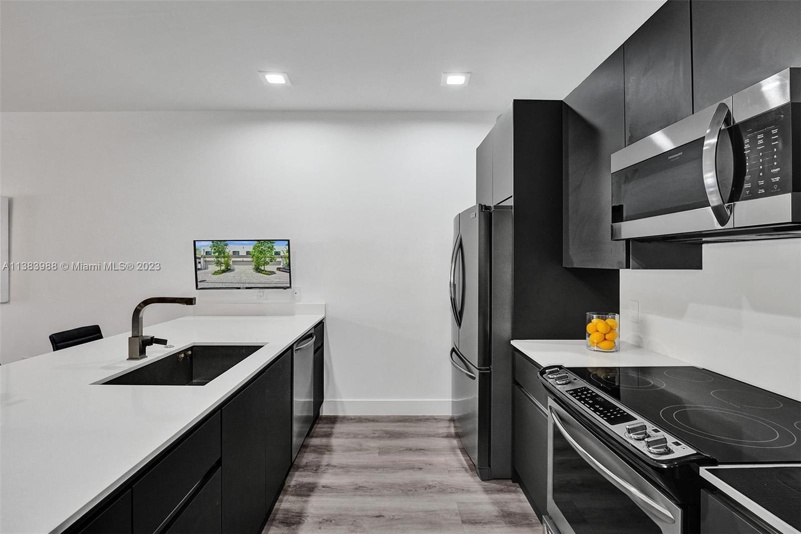 Looking for a home in heart of Croissant Park? Luxurious 2-level townhouse boasts 3BR/2.5BA&2-car garage & 1745SF. Inside you'll be struck by attention to detail & custom updates unlike others. 1stFLr has open-concept living/dining area, perfect for entertaining guests. Chef's kitchen w/SS appliances, white quartz counters & big pantry. Living room has custom built-in cabinet & DR has built-in bar w/wine fridge, shelves & cabinets. All BRs on 2ndFL. Spacious primary suite w/stunning astroturf balcony & sunset views, custom walk-in closet & en-suite bath w/2-sinks, water closet & frameless shower. Impact windows-porcelain tile-motorized blinds-custom lights-SmartHome features-high ceilings-fenced & gated. Say yes to this serene oasis-Portofino Townhomes-quaint complex of 12, built in 2019