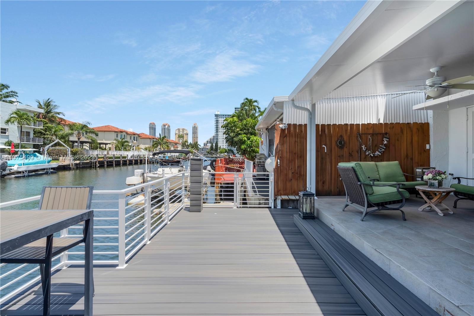 Boat Lovers!!! An amazing townhouse in the canal with a dock for boat up to 25 feet right behind the unit, with a beautiful and ample deck for entertaining, is a dream! There is open access to the ocean without fixed bridges. This townhouse is very spacious and was substantially remodeled leaving a cozy and contemporary look, with an open floor plan, 1st level with tiles on the floor, stainless steel appliances and large quartz countertop in the kitchen. There are 2 master suites in the upper level(vinyl floor), plenty of storage spaces, 2 assigned parking spaces and the location is prime. Close to the beach, restaurants, Aventura Mall, and much more. VACANT!