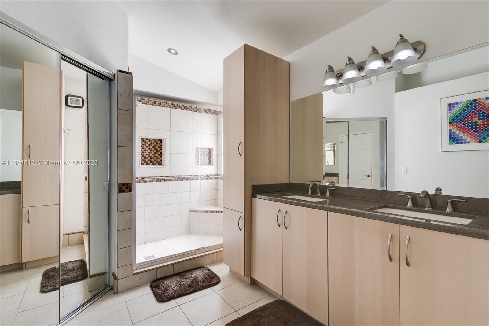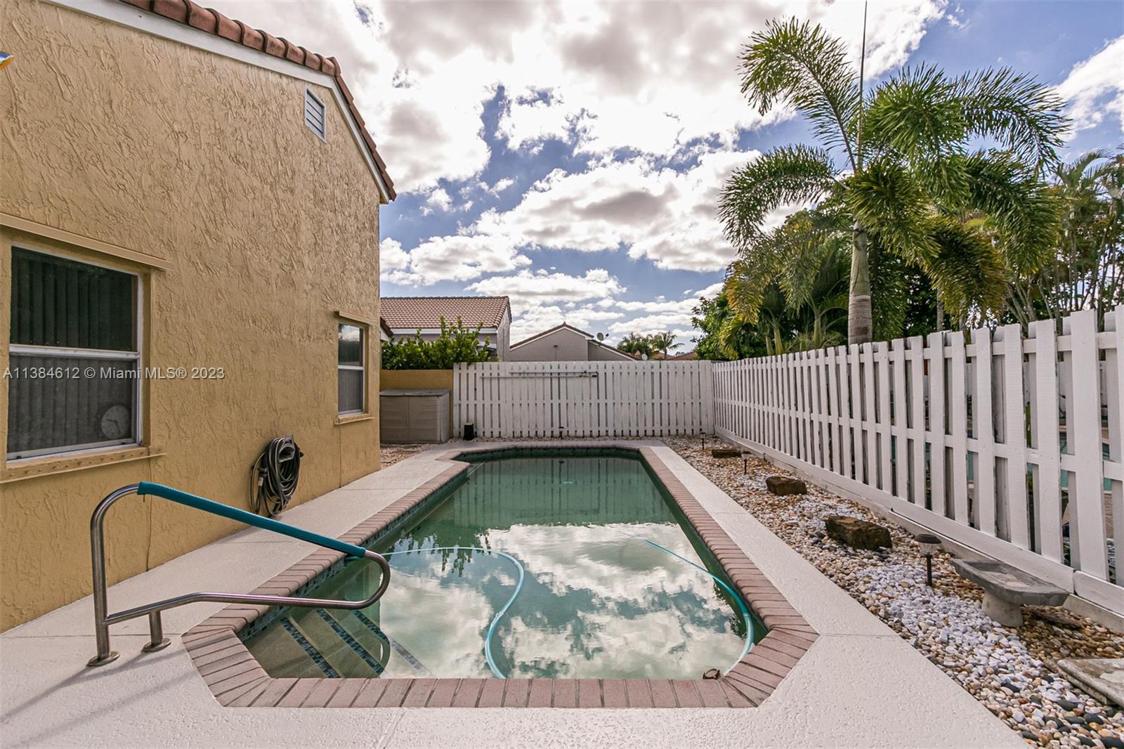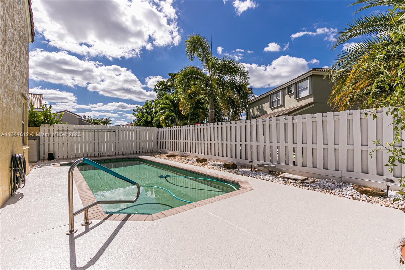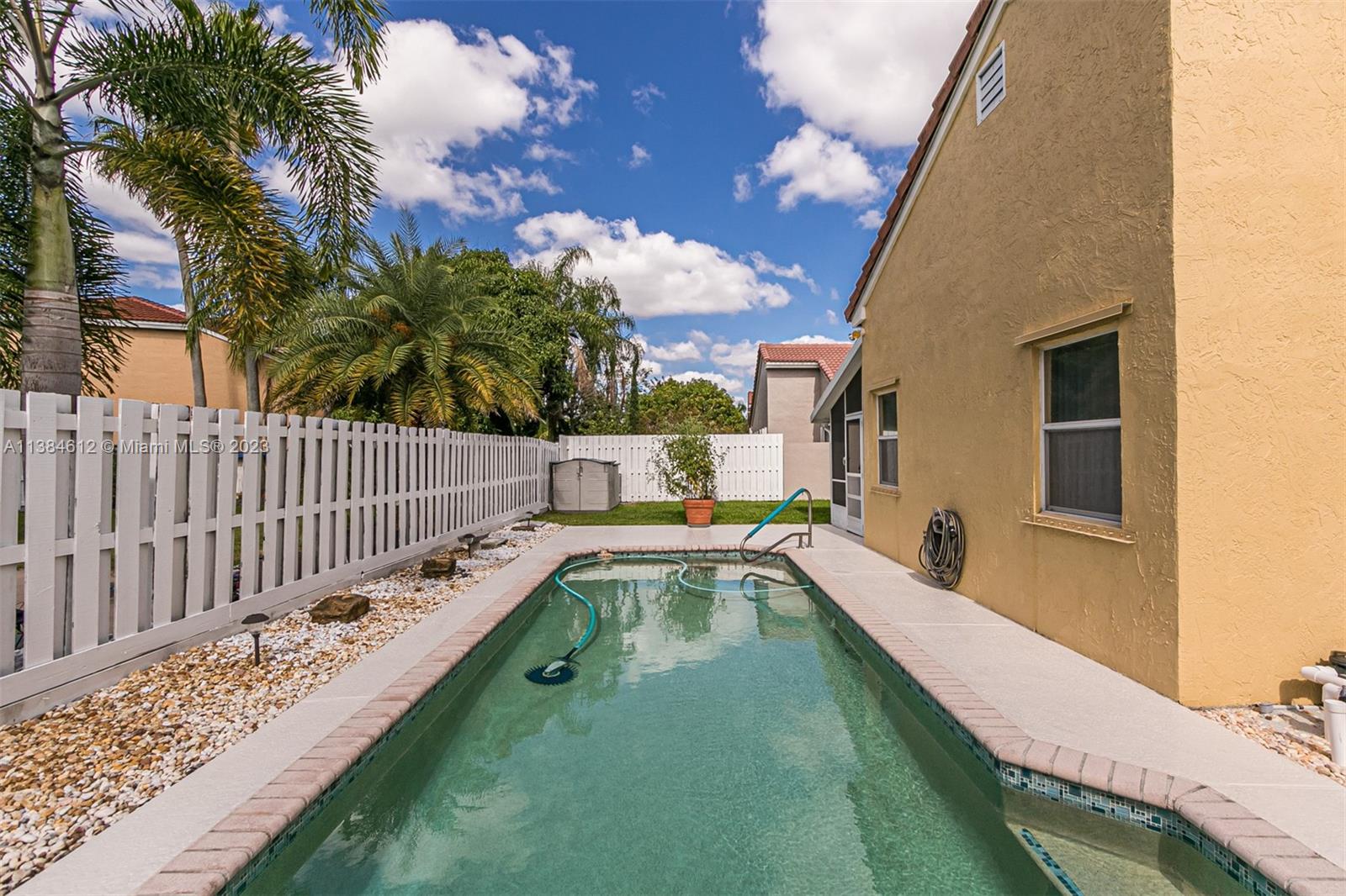 Beautiful 3/2 home with 2 car garage. Screened in patio leading to deck with swimming pool. Spanish tile roof. Steel panel hurricane shutters. Updated electrical panels with dedicated line for electric car charging. Interior jacuzzi tub. Master walk in stall shower.