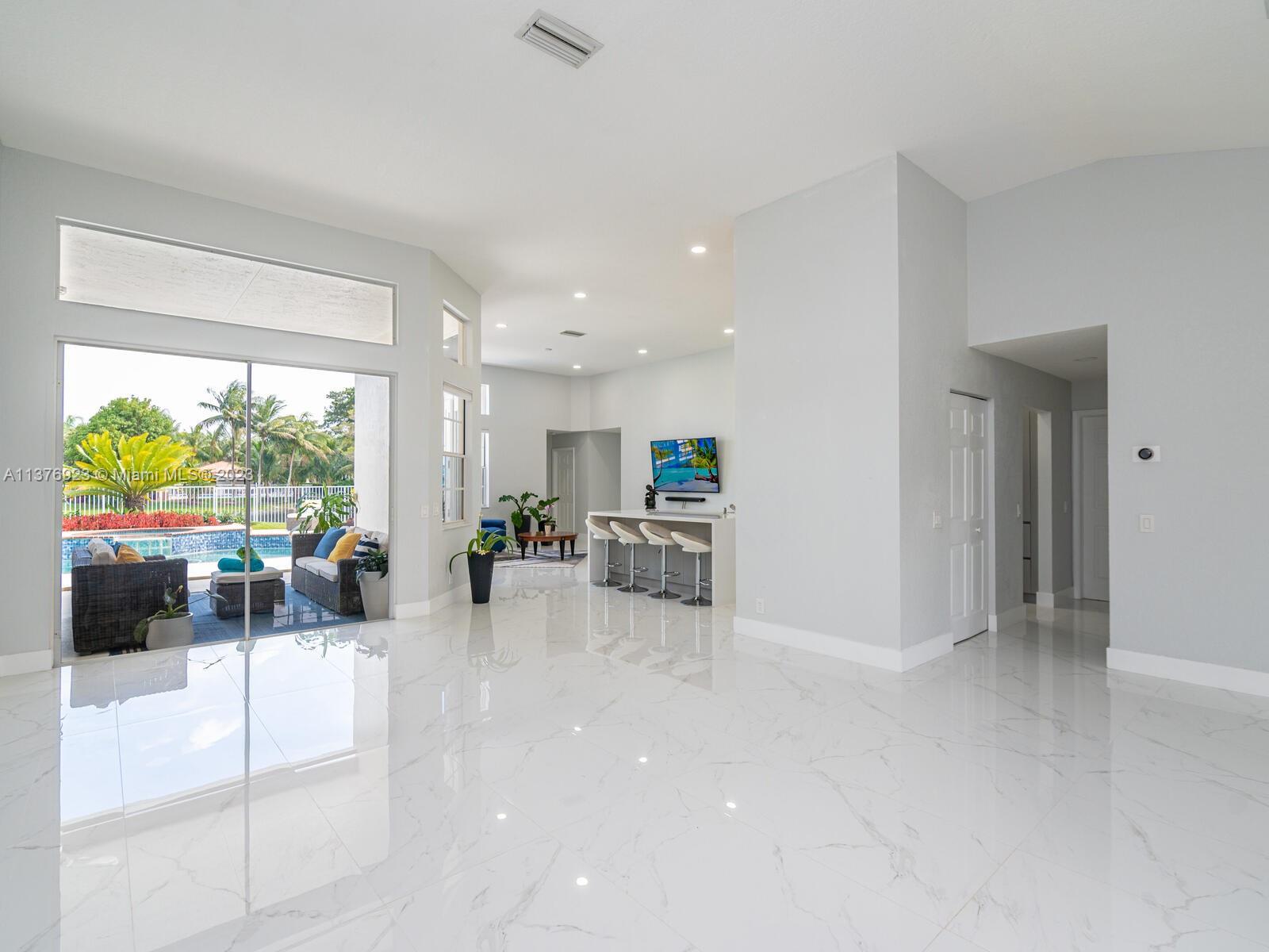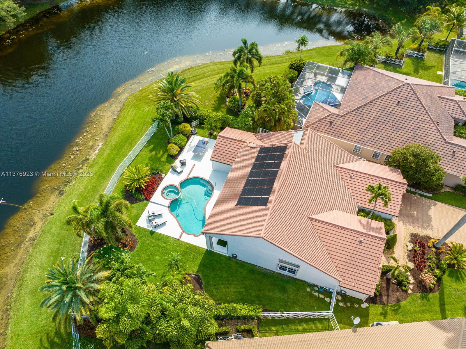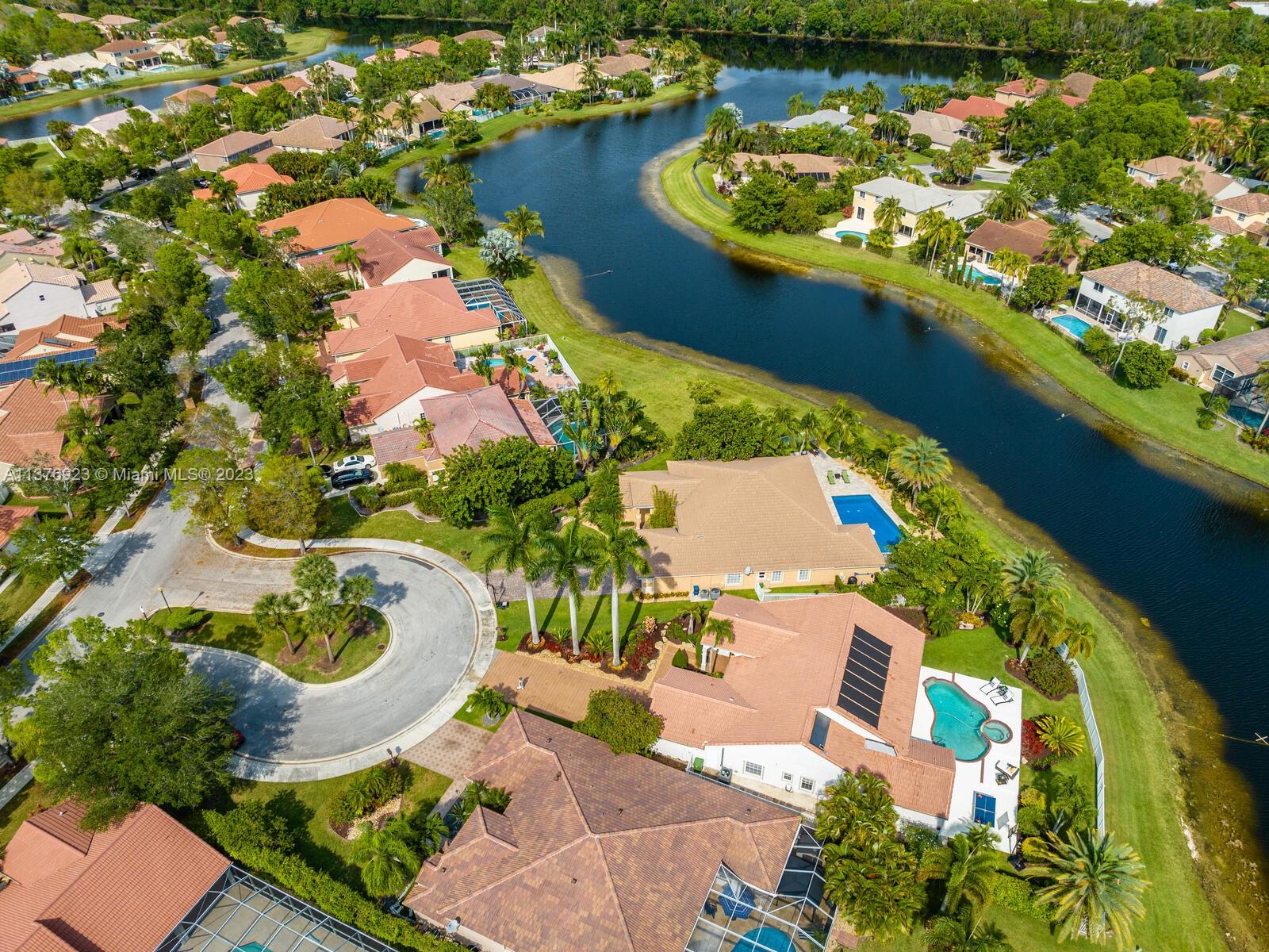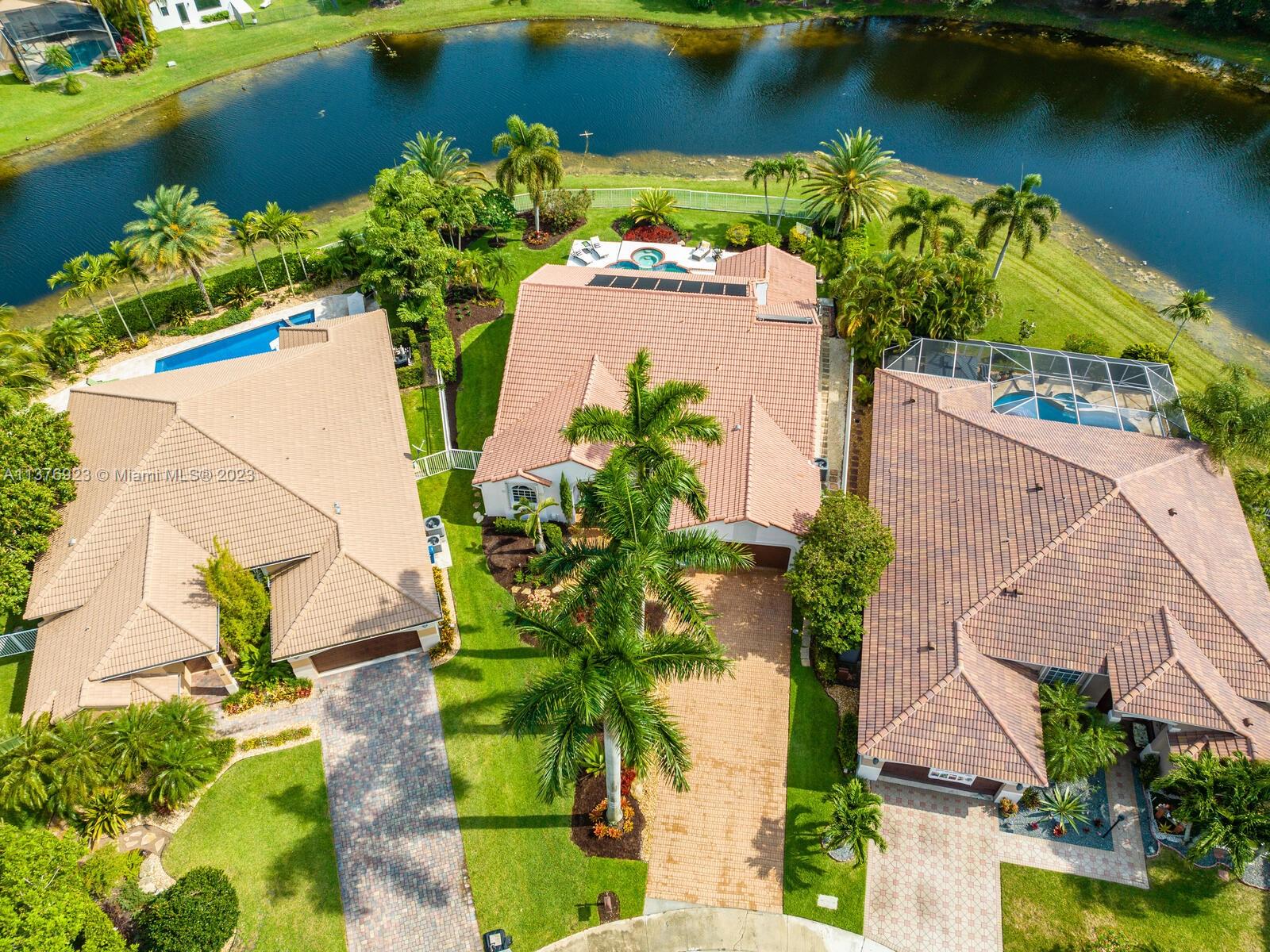 This exquisite, one-story single family home in Weston-Lakes features 4 beds, 3.5 baths, and sits on a cul-de-sac pie-shaped lot, and more than 1/3 Acre of land. This prime location offers a quiet environment, with a long driveway for up to 6 cars. Enjoy the stunning lake view, community pool, kids' playground, and soccer field across the backyard. Recently updated with new plumbing, AC, tankless water heater, kitchen, floors, bathrooms, recess lights, garage and main entrance hurricane doors, freshly painted inside-outside, and stunning landscaping. Accordion hurricane shutters and 2007 roof. Situated near A+ schools, parks, shopping centers and more. Airport and beach only 20-30 min away. Don't miss your chance to own this spectacular home in Weston's most desirable community!