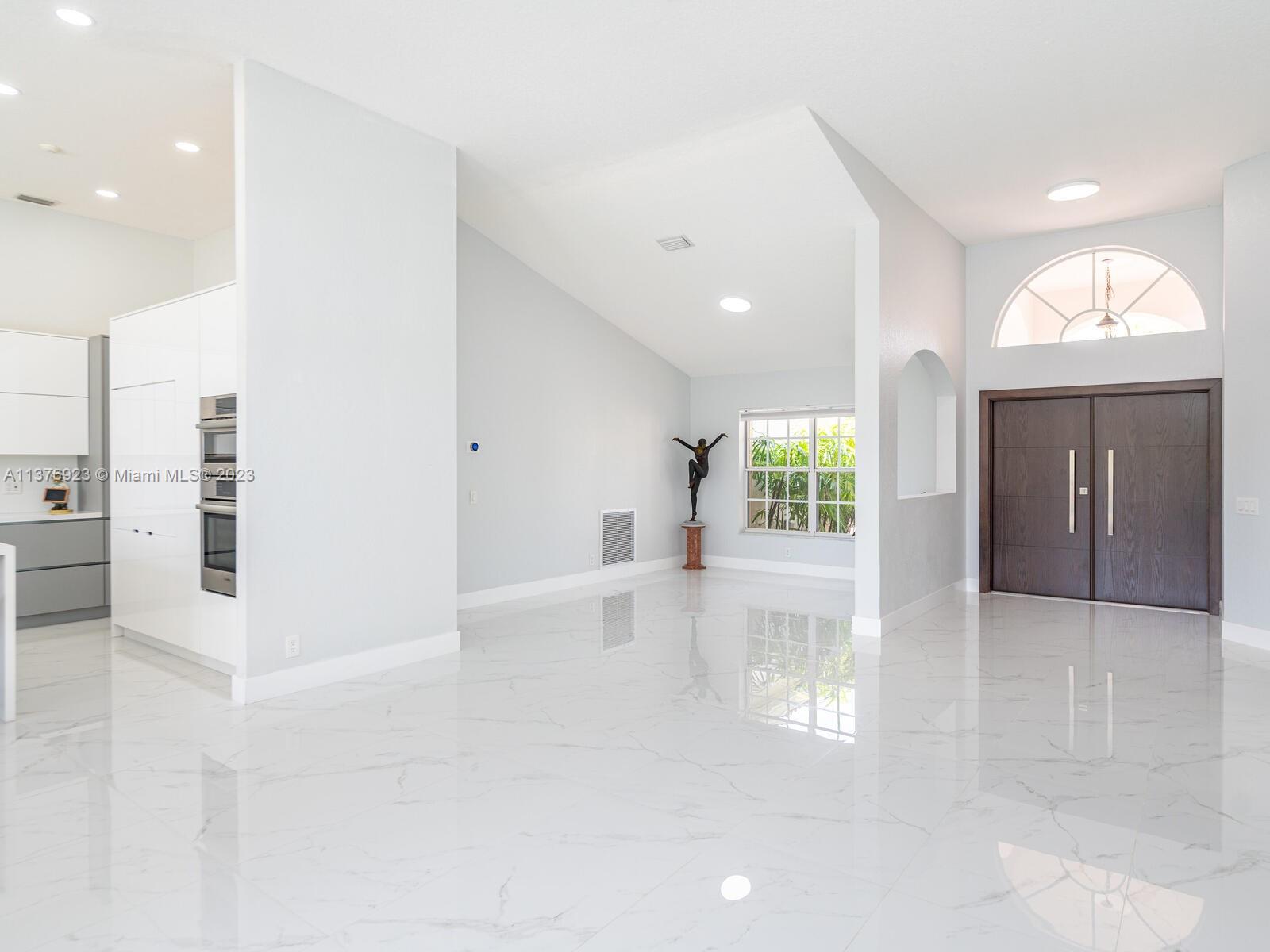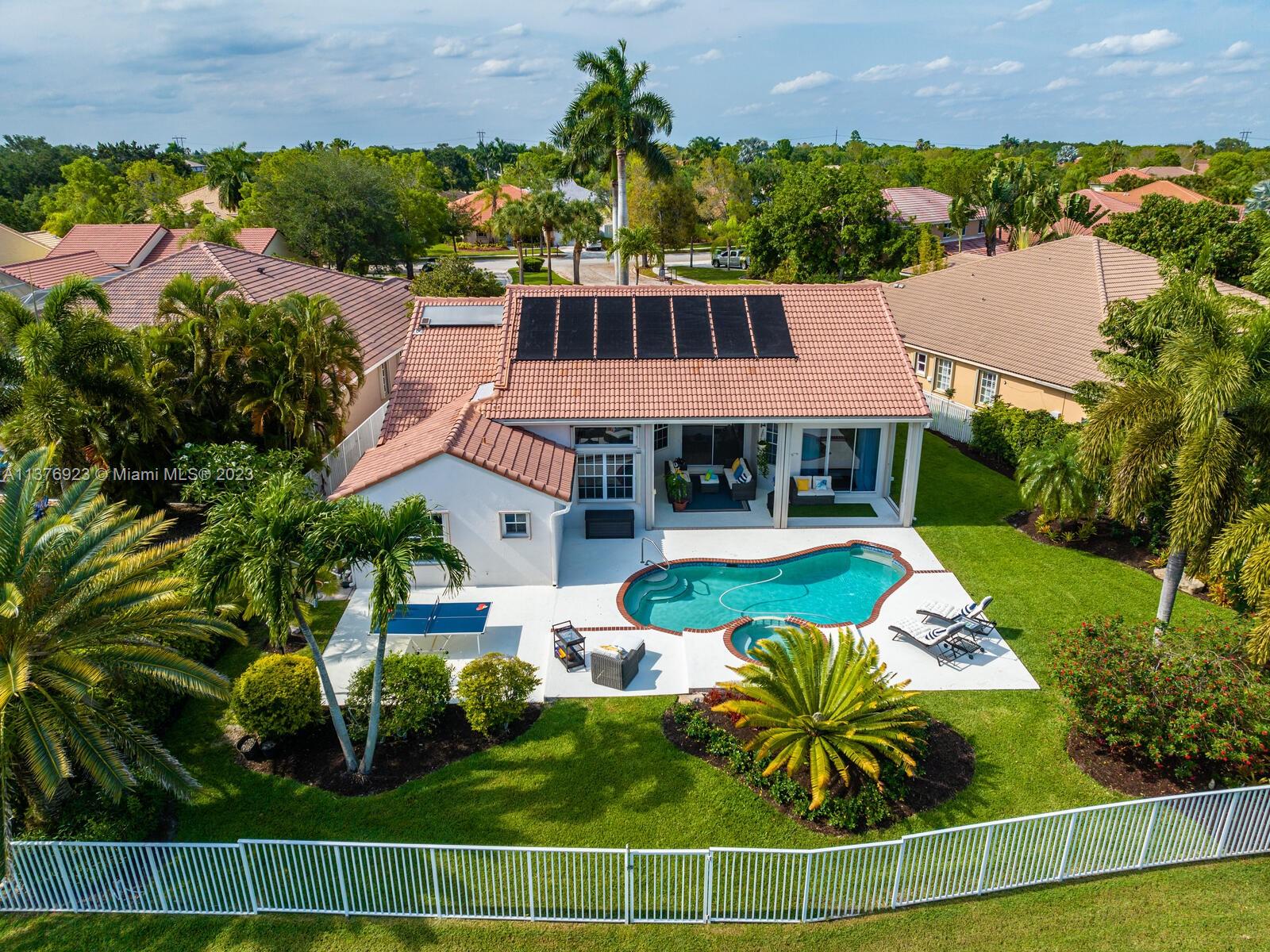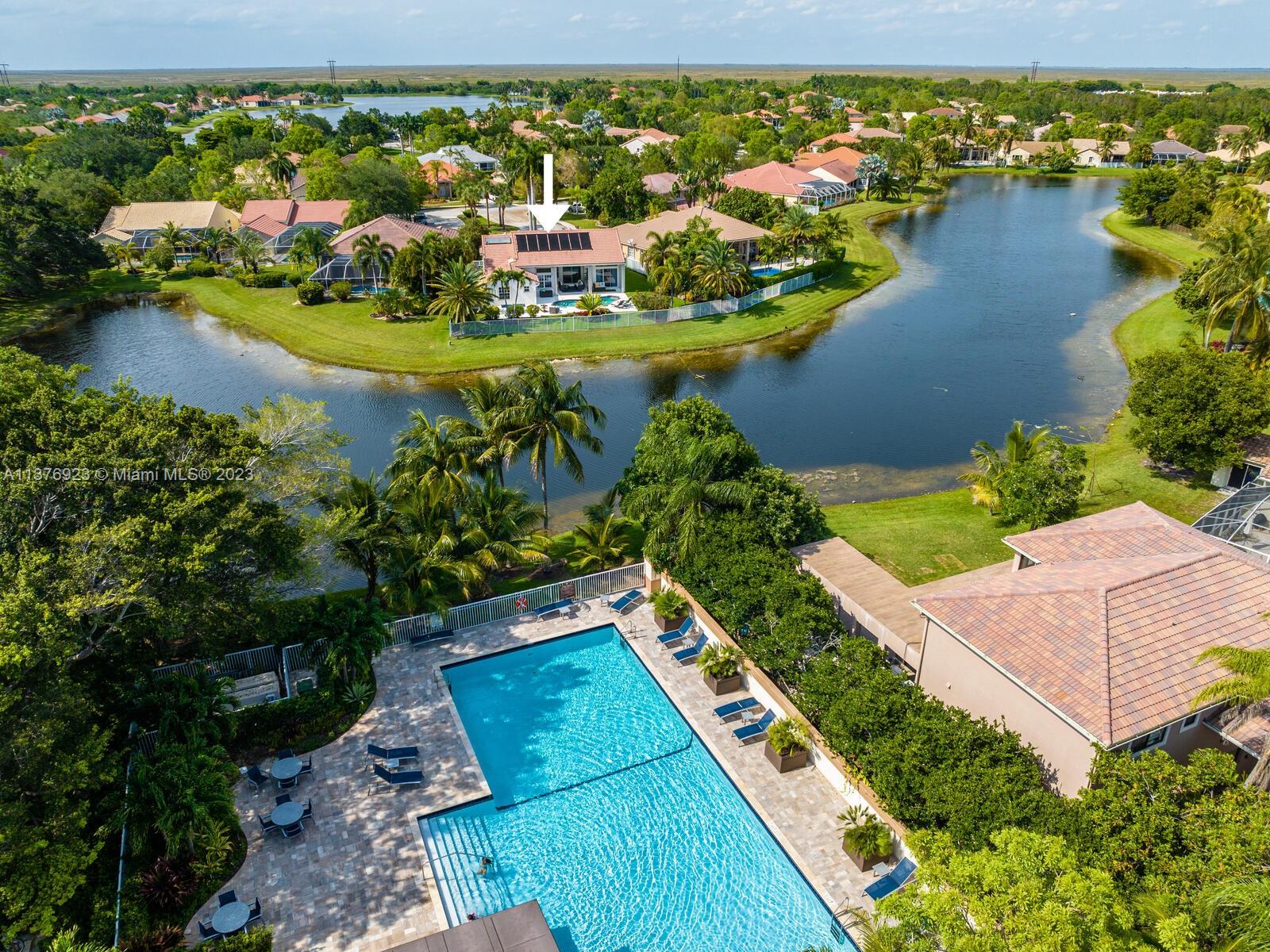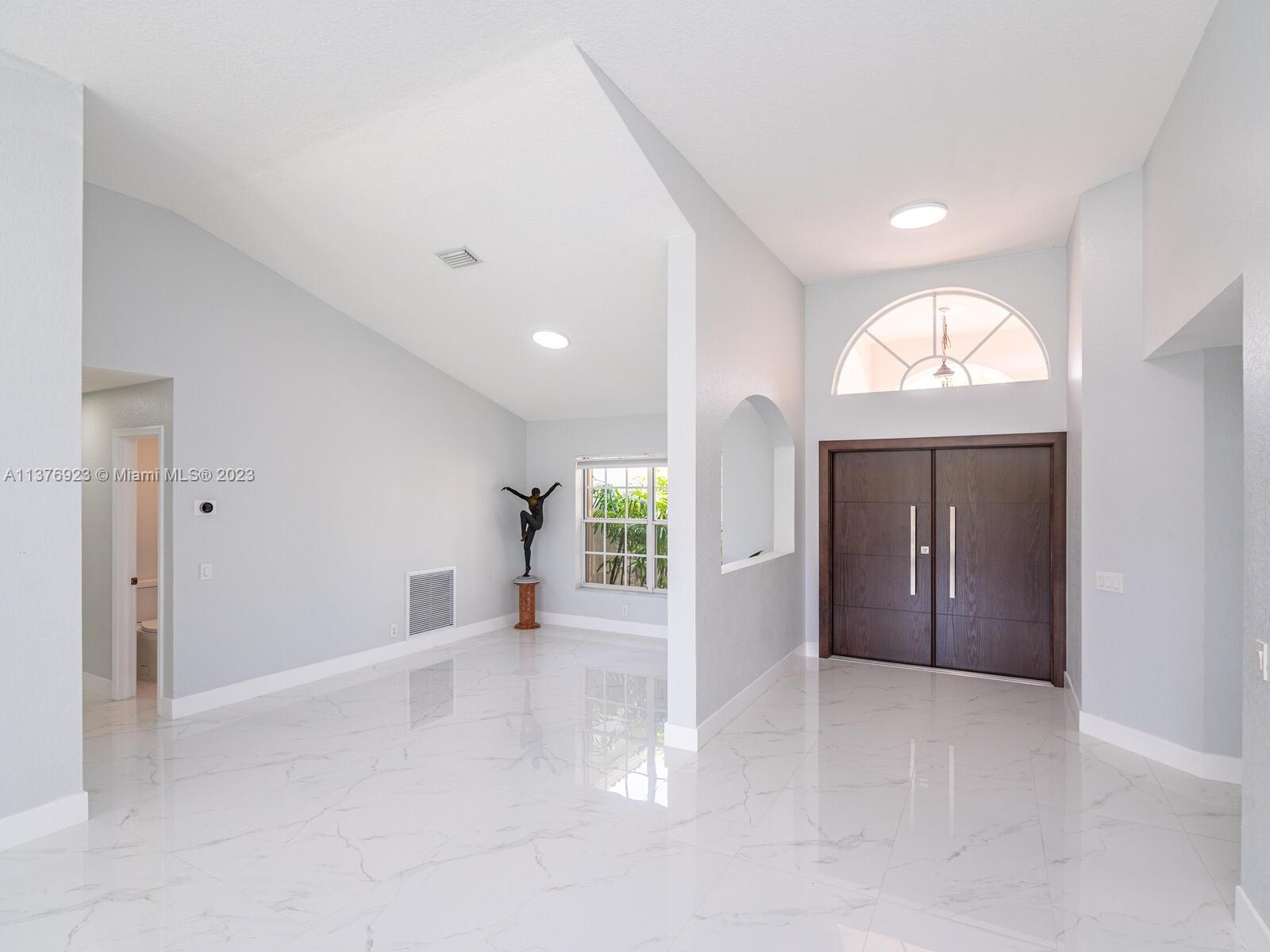 This exquisite, one-story single family home in Weston-Lakes features 4 beds, 3.5 baths, and sits on a cul-de-sac pie-shaped lot, and more than 1/3 Acre of land. This prime location offers a quiet environment, with a long driveway for up to 6 cars. Enjoy the stunning lake view, community pool, kids' playground, and soccer field across the backyard. Recently updated with new plumbing, AC, tankless water heater, kitchen, floors, bathrooms, recess lights, garage and main entrance hurricane doors, freshly painted inside-outside, and stunning landscaping. Accordion hurricane shutters and 2007 roof. Situated near A+ schools, parks, shopping centers and more. Airport and beach only 20-30 min away. Don't miss your chance to own this spectacular home in Weston's most desirable community!