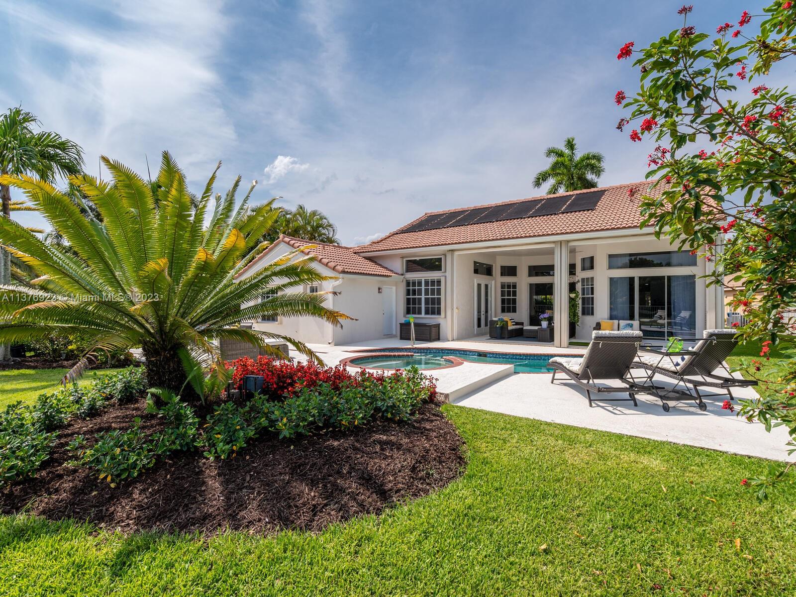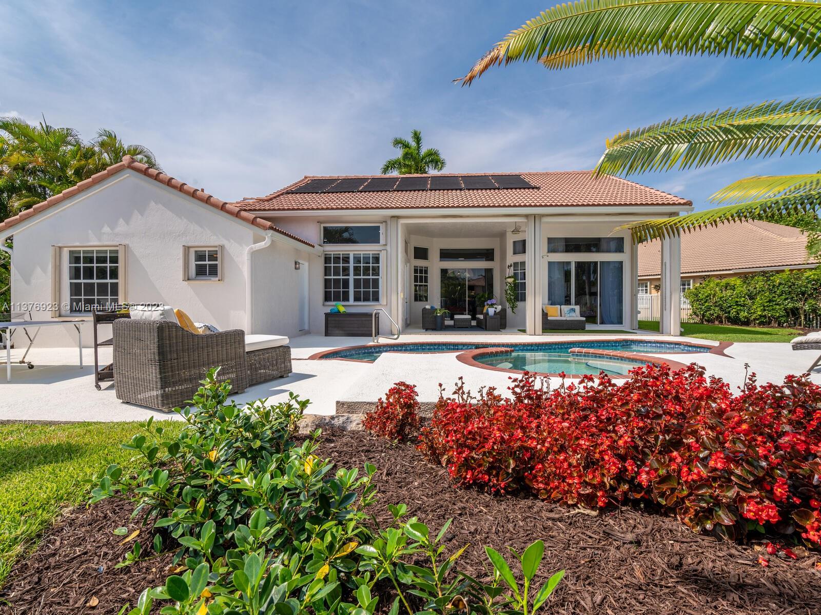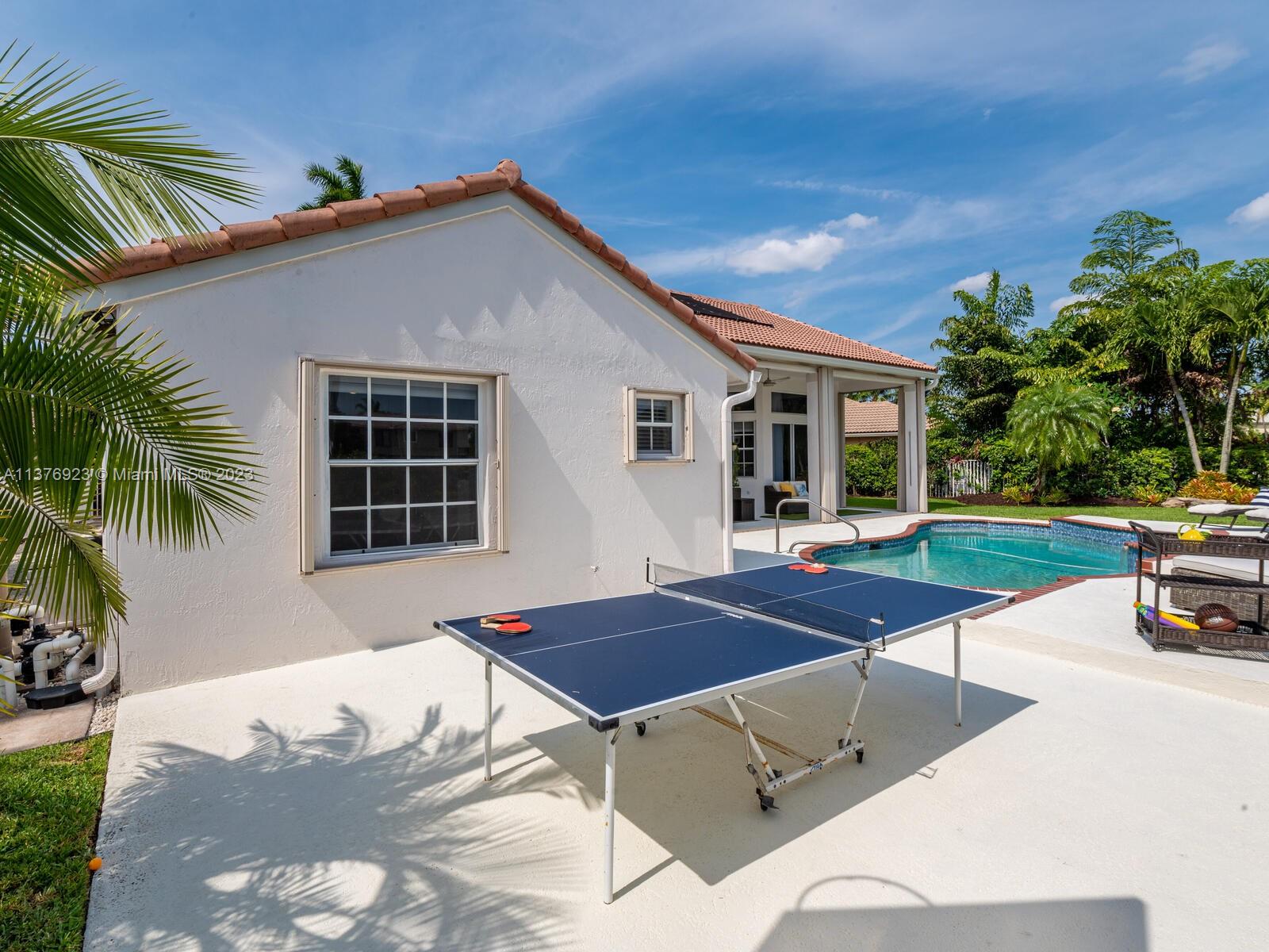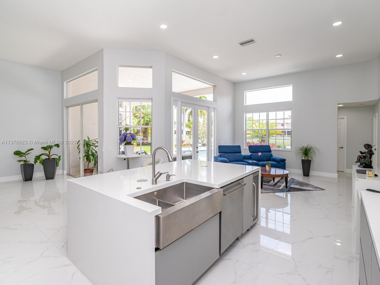This exquisite, one-story single family home in Weston-Lakes features 4 beds, 3.5 baths, and sits on a cul-de-sac pie-shaped lot, and more than 1/3 Acre of land. This prime location offers a quiet environment, with a long driveway for up to 6 cars. Enjoy the stunning lake view, community pool, kids' playground, and soccer field across the backyard. Recently updated with new plumbing, AC, tankless water heater, kitchen, floors, bathrooms, recess lights, garage and main entrance hurricane doors, freshly painted inside-outside, and stunning landscaping. Accordion hurricane shutters and 2007 roof. Situated near A+ schools, parks, shopping centers and more. Airport and beach only 20-30 min away. Don't miss your chance to own this spectacular home in Weston's most desirable community!