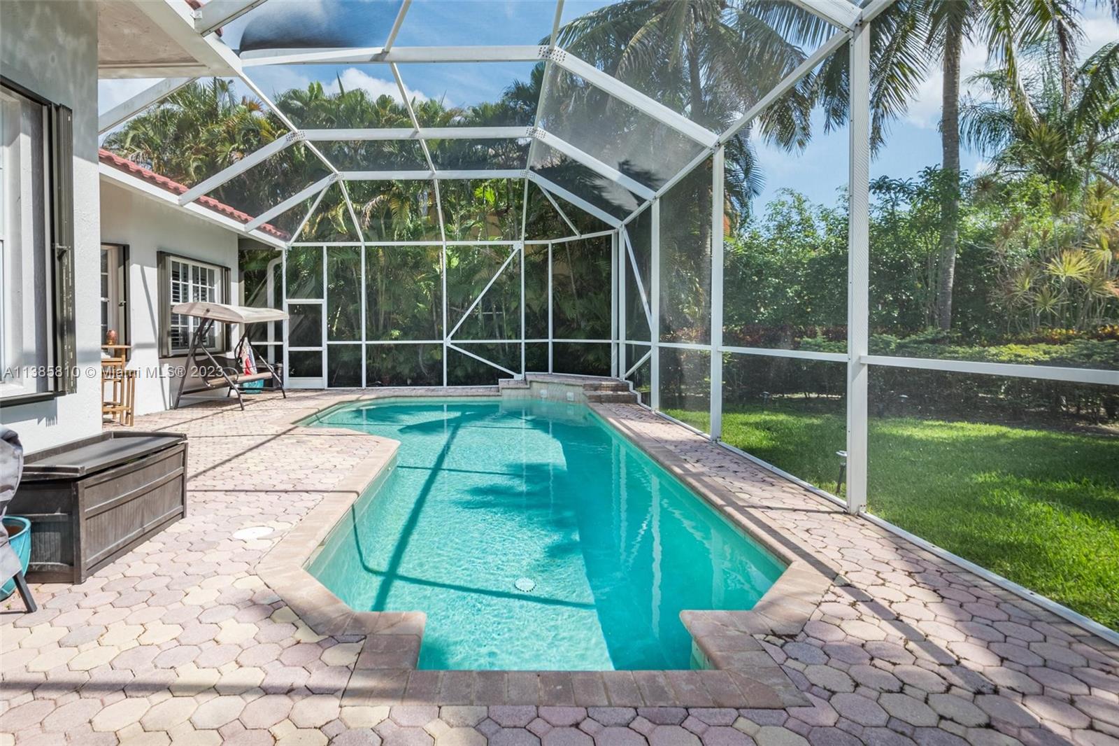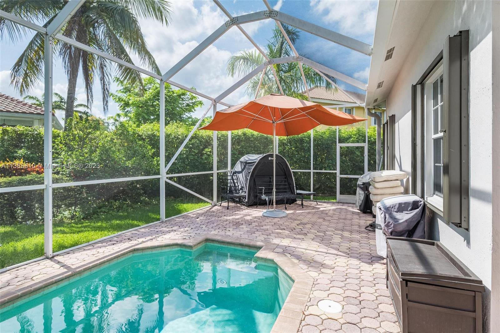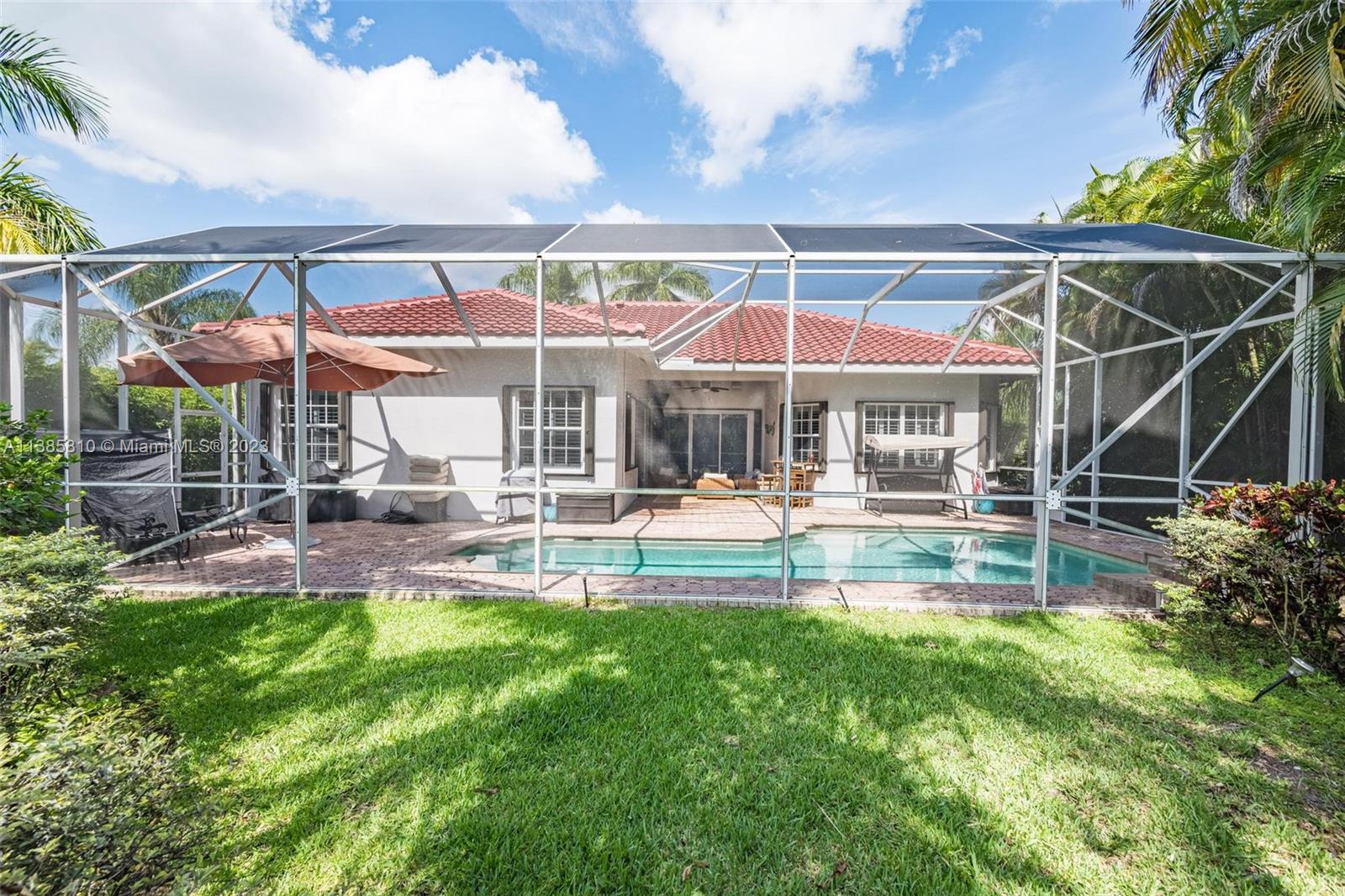 Stunning one story situated on a 13,920 oversized lot w/ NEW ROOF (2020)! Meticulously maintained & set back on a professionally landscaped lot loaded with curb appeal. Volume ceilings & a modern open floor plan create the perfect setting for entertaining & creating family memories! Newer modern kitchen w/ quartz countertops, designer custom cabinetry, large pantry & wine refrigerator. Plantation shutters, crown moulding & surround sound throughout. Porcelanto floors, designer upgraded bathrooms, hardwood floors in master bedroom & laminate in secondary bedrooms. Private yard w/ screened heated pool, patio and yard w/ room for the kids to play. Resort style community w/ pools, splash pad, miniature golf, playgrounds. Bike ride to Gator Run Elementary & enjoy Weston's "A" rated schools.