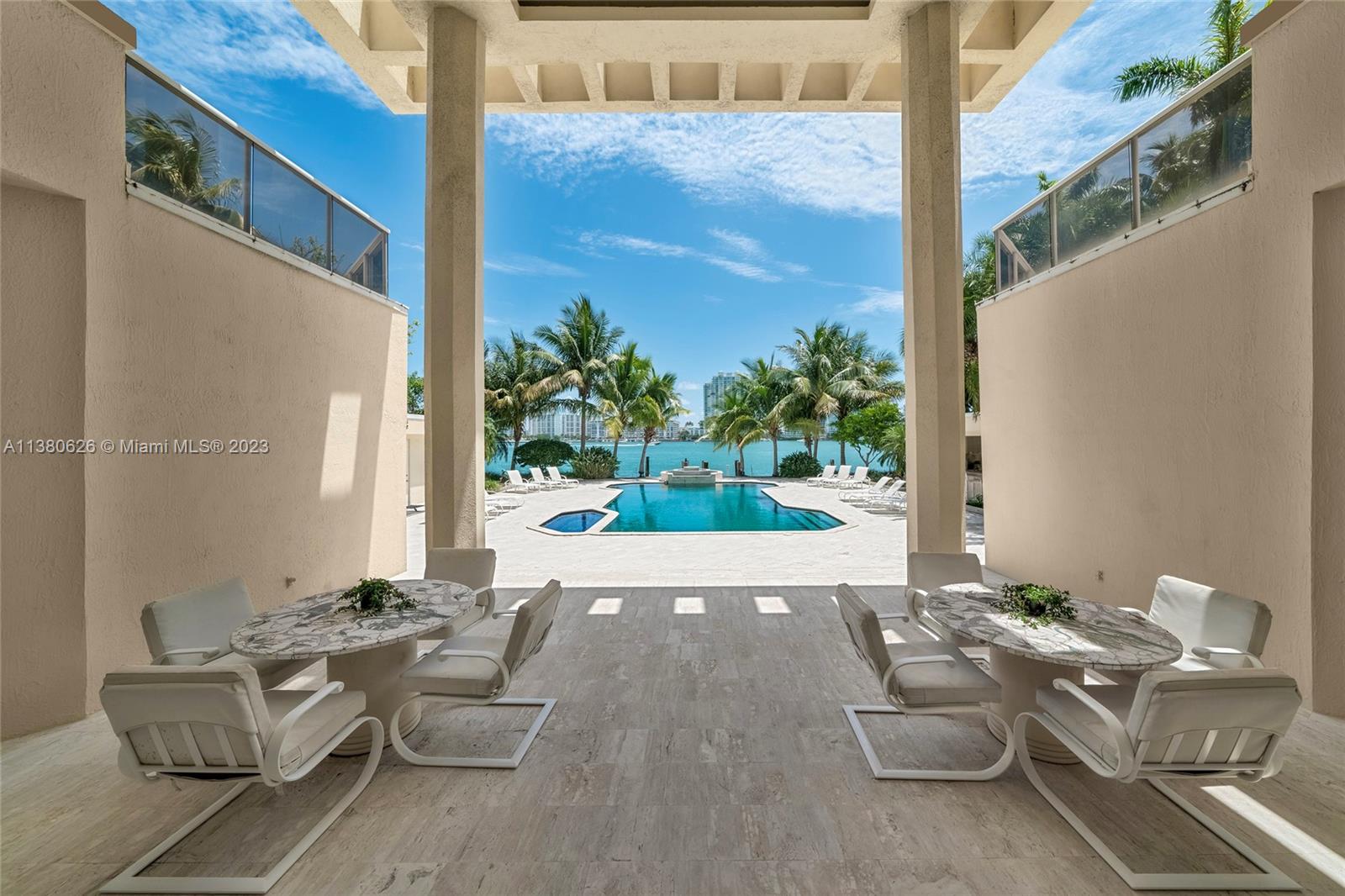 Located on exclusive guard-gated Star Island this residence boasts a manicured 40,000 SF lot, and actual area of 12,374 SF, 6BR plus an office, 8+1BA, and 100FT of sparkling waterfront. Impressive foyer with soaring 30+FT ceilings and custom staircase, exquisite Travertine floors and custom millwork throughout, expansive living room and entertainment room/bar all with large windows and amazing views to the pool and bay. A private dining area, chef’s kitchen with top-of-the-line appliances and a separate breakfast room. The large bay-facing principal suite features dual walk-in closets and dual bathrooms. Upstairs has 4 large guest bedrooms with en-suite baths & oversized Plaza Deck terraces. Heated pool, summer kitchen, 40FT dock, direct bay & ocean access plus amazing central location.