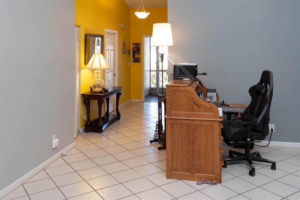 Excellent opportunity to own this spacious, bright two-bedroom and two-bath single-family home with vaulted ceilings and skylights on a cul-de-sac in the 55+ gated Cypress Lakes community. The East-facing primary bedroom with sliding doors lead to a screened porch on the second tee of the community golf course (beautiful sunrise views!). Spacious primary bath and large closet. This home offers impact-resistant windows throughout. An additional air-conditioned room in the garage is excellent for storage of special items. Spacious family room and office space. The great open floor plan showcases formal living and formal dining rooms. Original kitchen cabinetry has new under-cabinet LED lighting and awaits your personal touch. The current situation is a home crowded with belongings.
