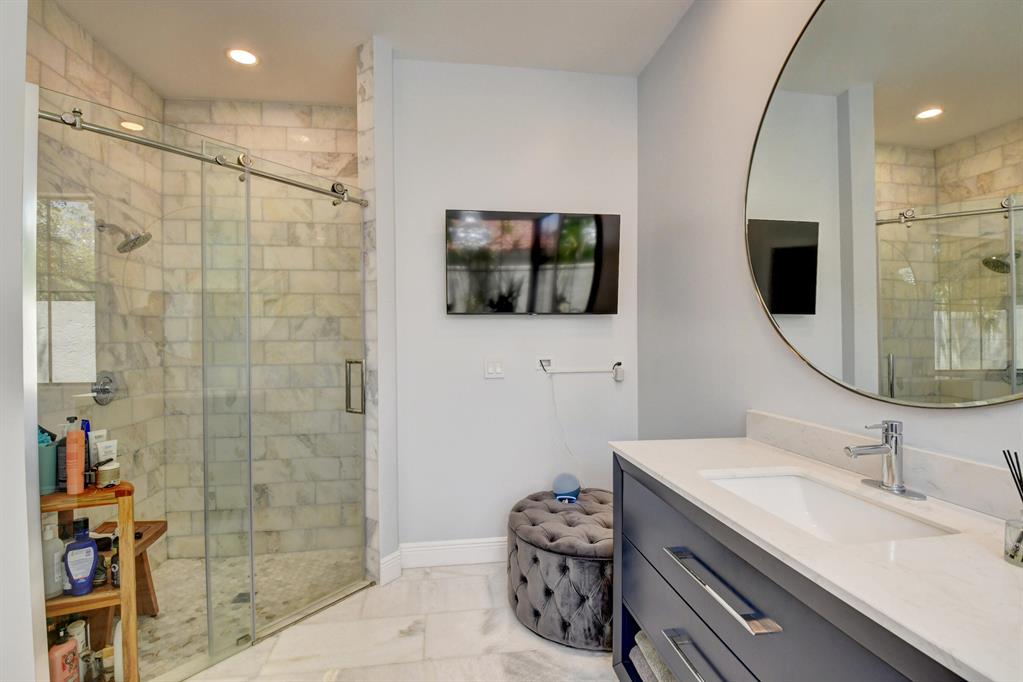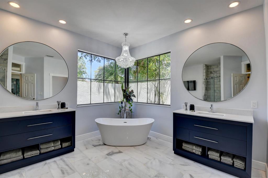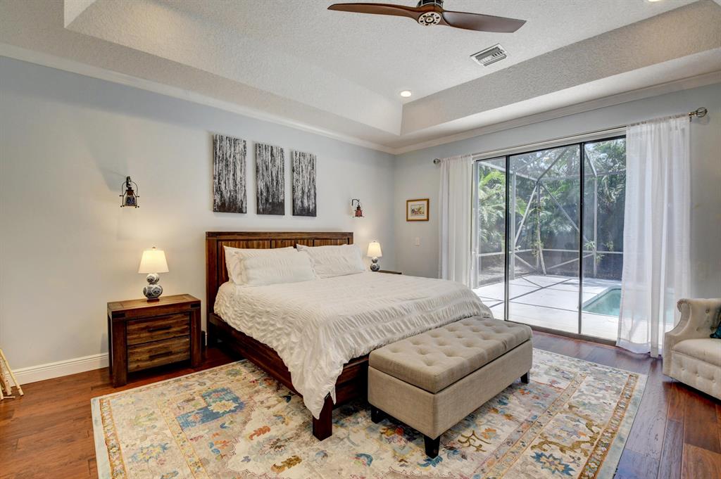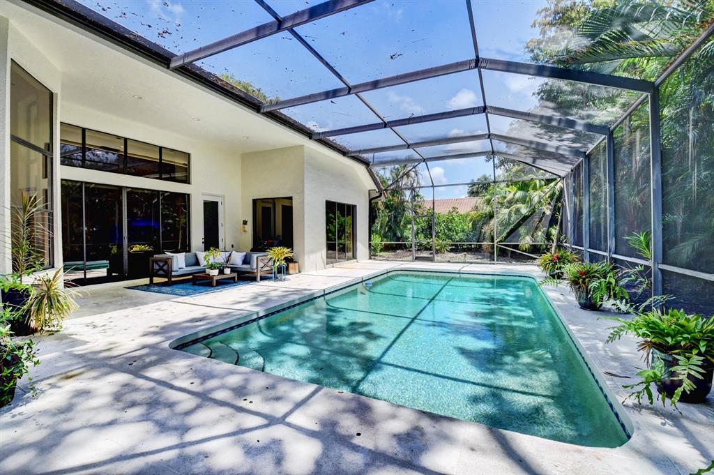 Located in New Floresta, the highly desirable, central Boca Raton community. This Mediterranean-style one story, 4 bedroom, 3 full bath split floorplan home boasts a spacious interior with high ceilings and main living area that opens to an expansive screened in porch, covered patio, and large pool. Primary bedroom opens to the patio and features two walk-in closets and an en-suite luxurious renovated bathroom with two vanities. Enjoy the spacious layout with large living and dining areas or convert it to an open floorplan with ease. Minutes from the Boca Town Center mall, major highways, restaurants, and other amenities. Low HOA, no lease restrictions and great school district. This home is the perfect opportunity to design to fit your lifestyle needs!