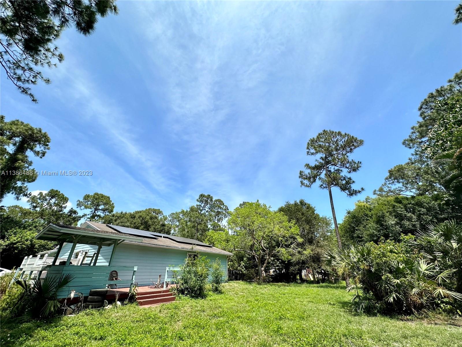 This 3BR + den, 2BR property sits on 1.16 acres, providing plenty of space and privacy. The property is a blank canvas ready for your upgrades. The potential of the land cannot be overlooked as an agriculture zone. With a variety of fruit trees, plenty of room for outdoor activities, gardening, or even building an additional structure, this property offers endless opportunities for those with a vision for its potential. With plenty of space to park an RV, a boat, a truck, etc. the property also has a solar panel system with FPL connections and is in an ideal location for families who are looking for peace and tranquility after a long day of work or even a peaceful retirement. If you're looking for a property with room to grow and put your own stamp on it this property is worth touring.