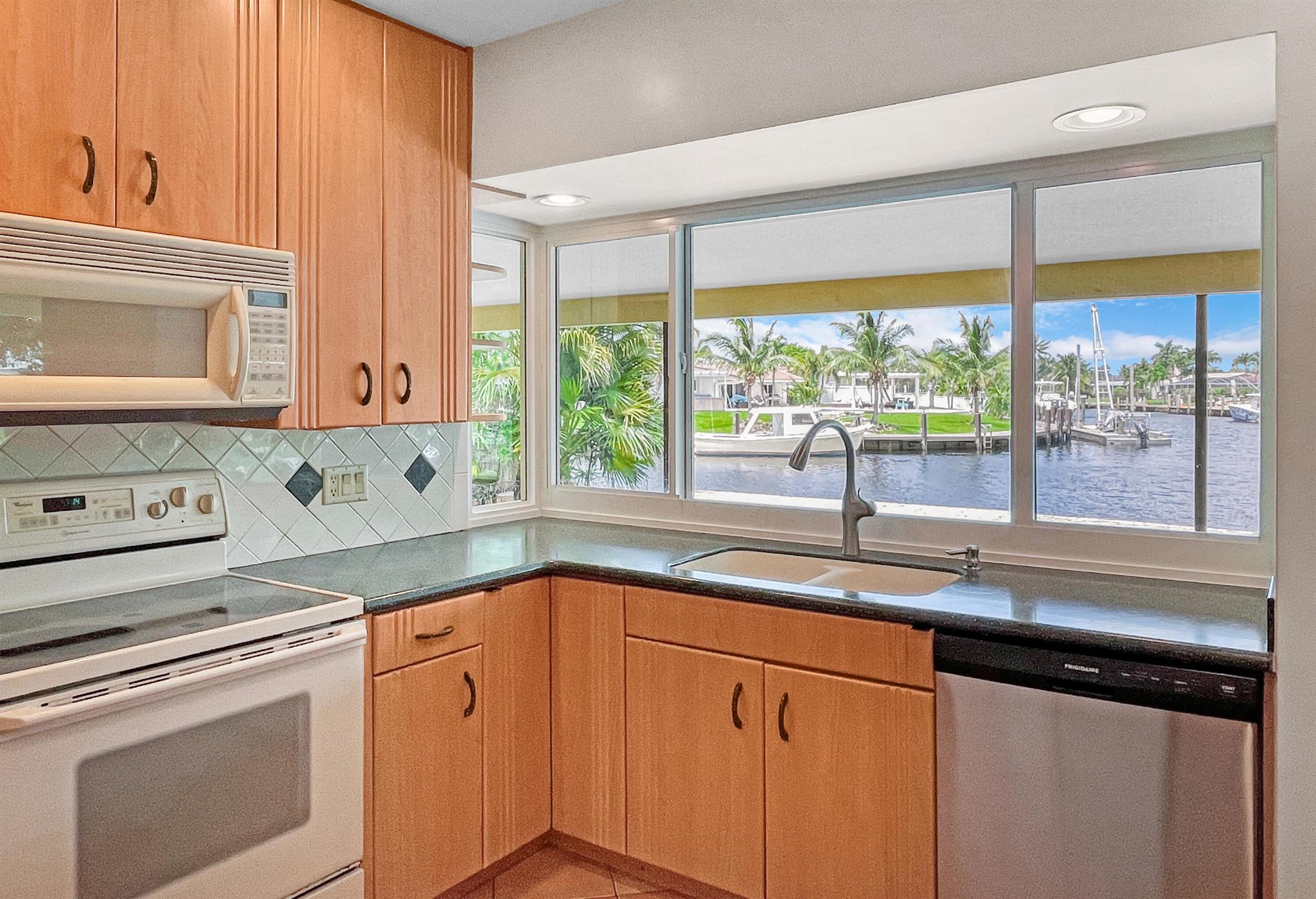 BEST PRICED POINT LOT! - GORGEOUS SUNSET VIEWS, POINT LOT. 202' WATERFRONT...ROOF 2017 & AC 2017 - NEW FOOTER/UPDATED SEAWALL. FOUR BEDROOM w/SPLIT FLOOR PLAN and OVERSIZED 2 CAR GARAGE. IMPACT WINDOWS. 2022: Neighborhood sandbar & favorite fishing hole close. Only 5minutes to INTRACOASTAL; less than 10minutes to the OCEAN. VERY PRIVATE LOCATION: Dead End Road road leads to Cul-de-sac. No traffic ! MASSIVE side yard for pets, playground, putting green or garden! Some photos are staged; no walls moved or removed. This is the one you have been waiting for! Pompano Beach is one of the fastest growing cities in South Florida & known for its restaurants, roof-top bars & luxurious waterfront dining like Houston's, The Foundry, Maxx's Cafe or CASUAL SIDEWALK CAFES
