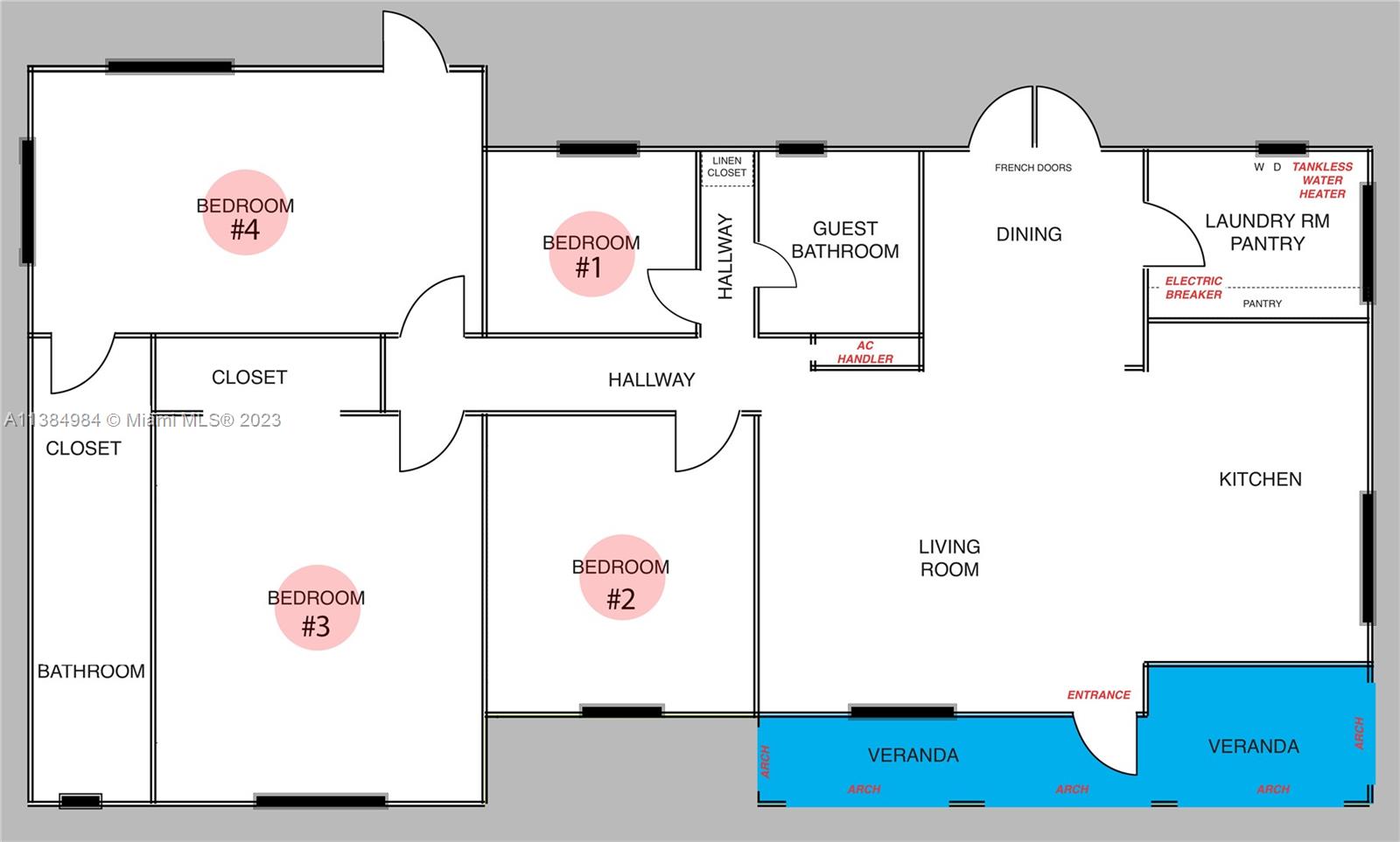 STUNNING RENOVATED CORNER HOME W/AMAZING CURB APPEAL. This quiet & kid-friendly North Miami gem features 4 BDRMS and 2 BTHS, new roof, new impact windows & doors, and new A/C unit. Spacious remodeled kitchen w/breakfast island, quarts countertop, stainless steel appliances + porcelain tile throughout. Sep living and dining areas and large laundry room. You'll fall in love with the large owners suite with bathroom, closet + private entrance. French doors open onto a custom built pergola that's perfect for entertaining. Tankless water heater and new electrical panels. At the front, the home offers lush, manicured landscaping along with large private tropical oasis at the back - A/C UNIT (2019) / IMPACK WINDOWS/DOORS (2020) / ROOF (NOV 2019) / ELEC BREAKER PANEL (2019) PLUMMING (2019)