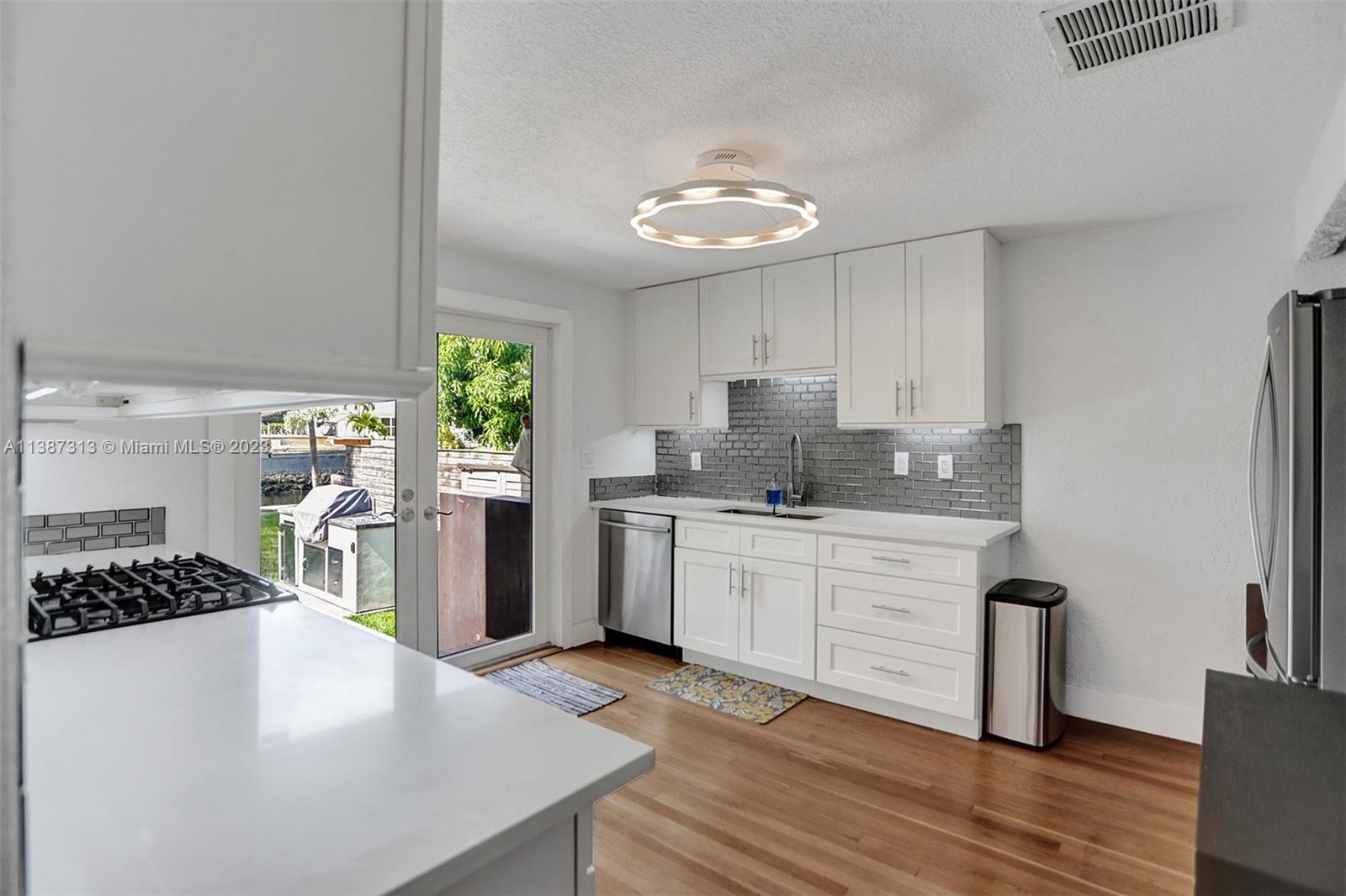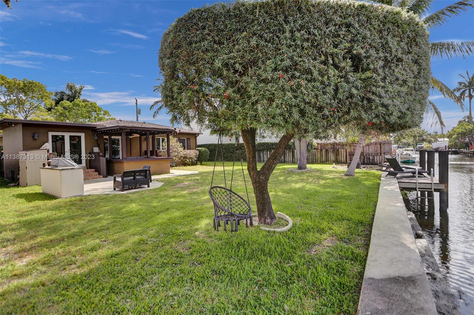 79' waterfront on Tarpon River! Beautifully updated 2 bedrooms 1 1/2 w/office/den single family home in sought after Croissant Park River! There is only 1 fixed bridge. The foyer & office/den are tiled. Real wood floors throughout the main living area, kitchen & bedrooms. Large living/dining area with gas burning fire place. Kitchen has been updated w/white shaker cabinets, white quartz countertops ,gray glass subway tiles, stainless steel appliances, gas range & eat in area. Nice size bedrooms w/walk in closets. Updated main bathroom w/spa feel. Updated 1/2 bath! Covered patio w/Chicago brick tiles. Outdoor kitchen! Firepit! Dock redone in 2016! Seawall redone 2018! Reinforced foundation 2020! New washer, dryer, gas water heater & microwave! Hurricane impact doors & windows! 1 car garage