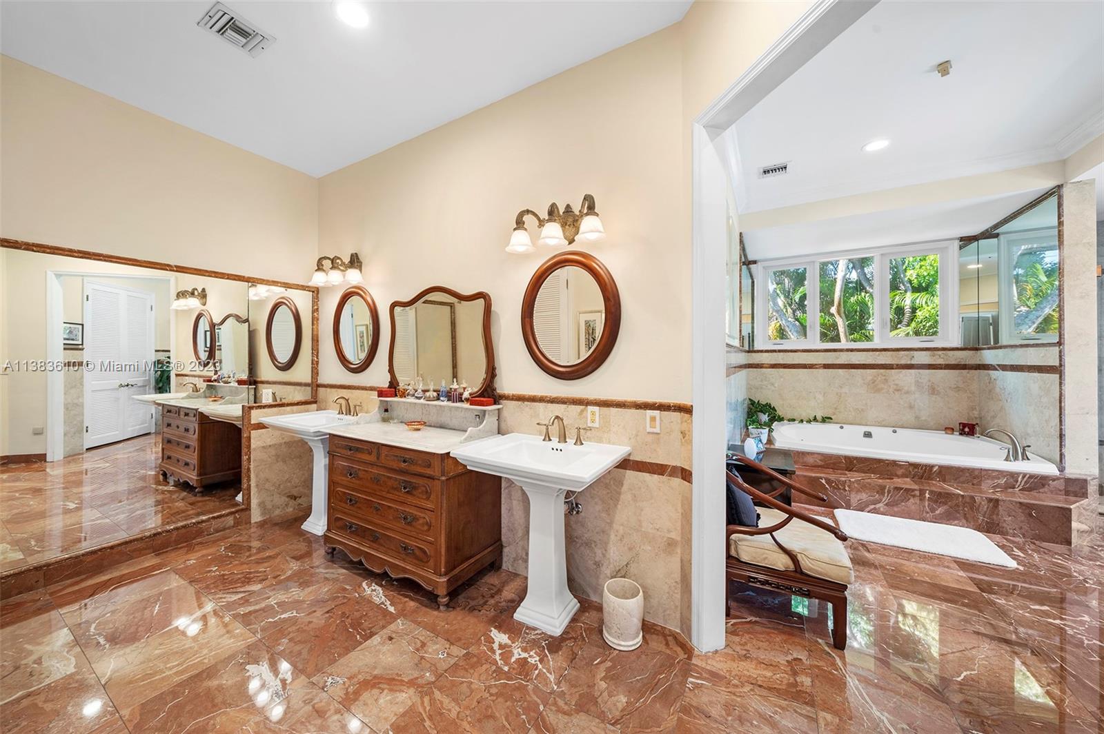 Nestled in the exclusive guard-gated community of Cocoplum, this residence offers an exceptional design featuring voluminous ceilings & abundant natural light on both levels. The well-conceived layout seamlessly connects expansive living spaces, creating an effortless flow that extends into the contemporary eat-in kitchen. With 6 bedrooms, 5.5 bathrooms, including a lavish primary suite with marble bath, dual walk-ins, and private balcony, comfort abounds. Two of the home’s bedrooms are conveniently located on the 1st floor, one offering direct access to the property’s pool & patio area. Featuring impact windows & French doors throughout, 2-car garage & ideal location on a quiet cul-de-sac in the highly-coveted Phase II of the Islands of Cocoplum, this is the home you’ve been waiting for!