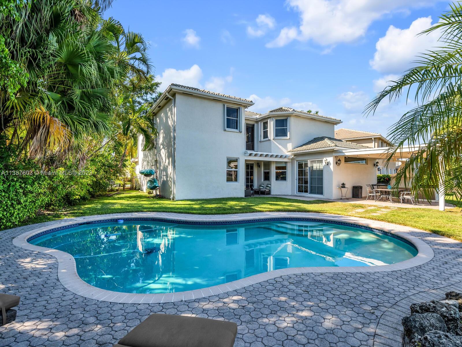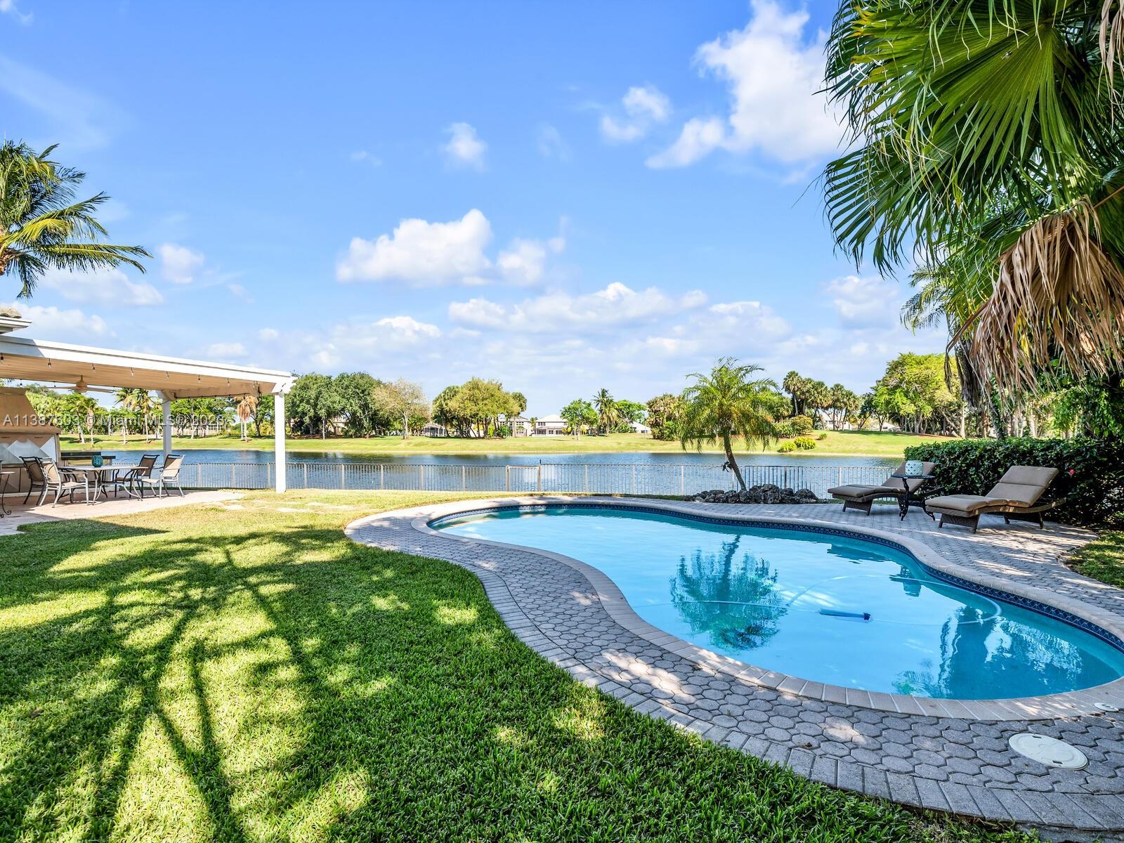 Amazing backyard with Pool and lake “No Neighbors” in the back of the house, this place is perfect for a large family who loves the outdoors and recreational activities, it has a pergola and a built- in grill. The five bedrooms, three and a half bathrooms, with a master bedroom downstairs makes it a very comfortable and convenient house. Impact windows downstairs. Gated community, great schools, close to many shopping centers, don’t miss visiting!!!