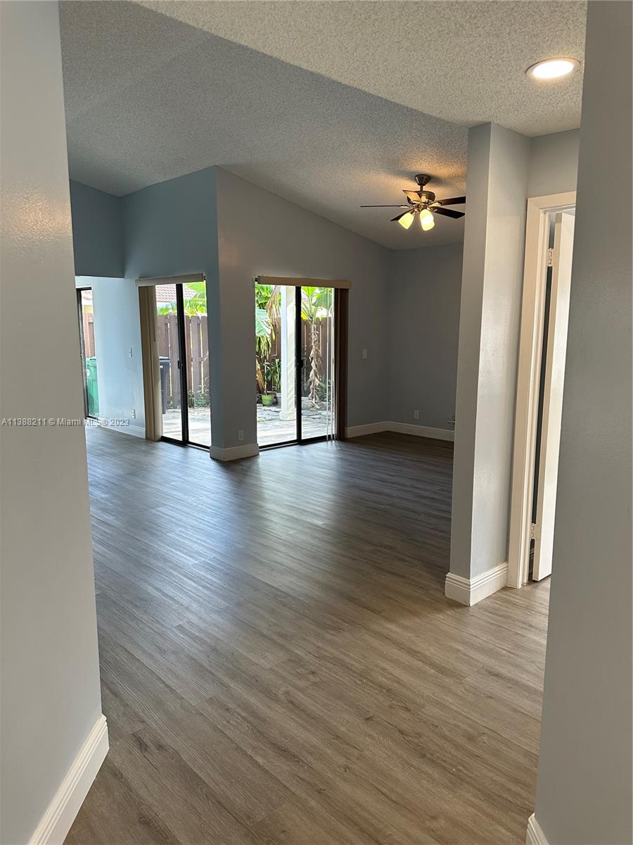 Welcome to this stunning 3 bedroom and 2 bathroom townhouse nestled in the heart of the highly sought-after Villa Homes at The Moors. Light-filled living and dining rooms that step out to a spacious partly-covered backyard that is great for entertaining. This home features new flooring, upgraded AC unit, updated master bathroom, lots of storage space, and just revitalized with a brand-new paint job. Gated Community with many club amenities to include fitness center, tennis courts, racquetball courts, swimming pools, banquet ballrooms (for parties or events), and more. In addition to swimming pool access at The Moors Club, this townhouse has access to the exclusive Villa Homes swimming pool. Easy access to major highways to include 826, I-75, and Turnpike.