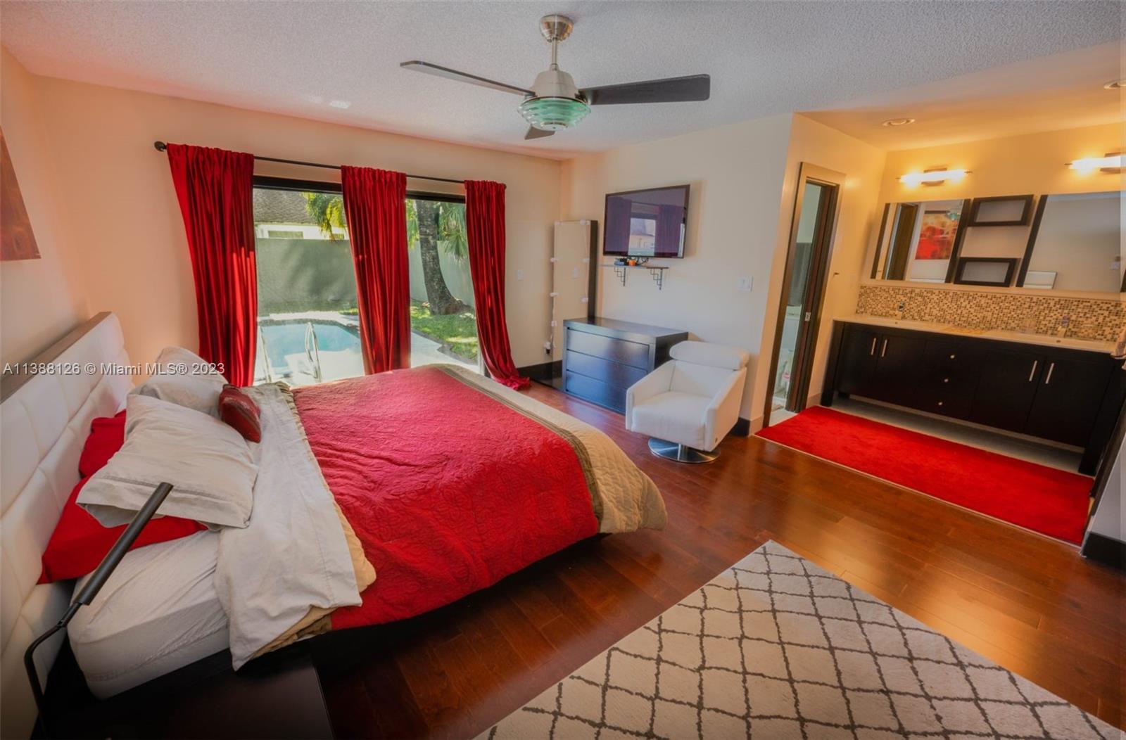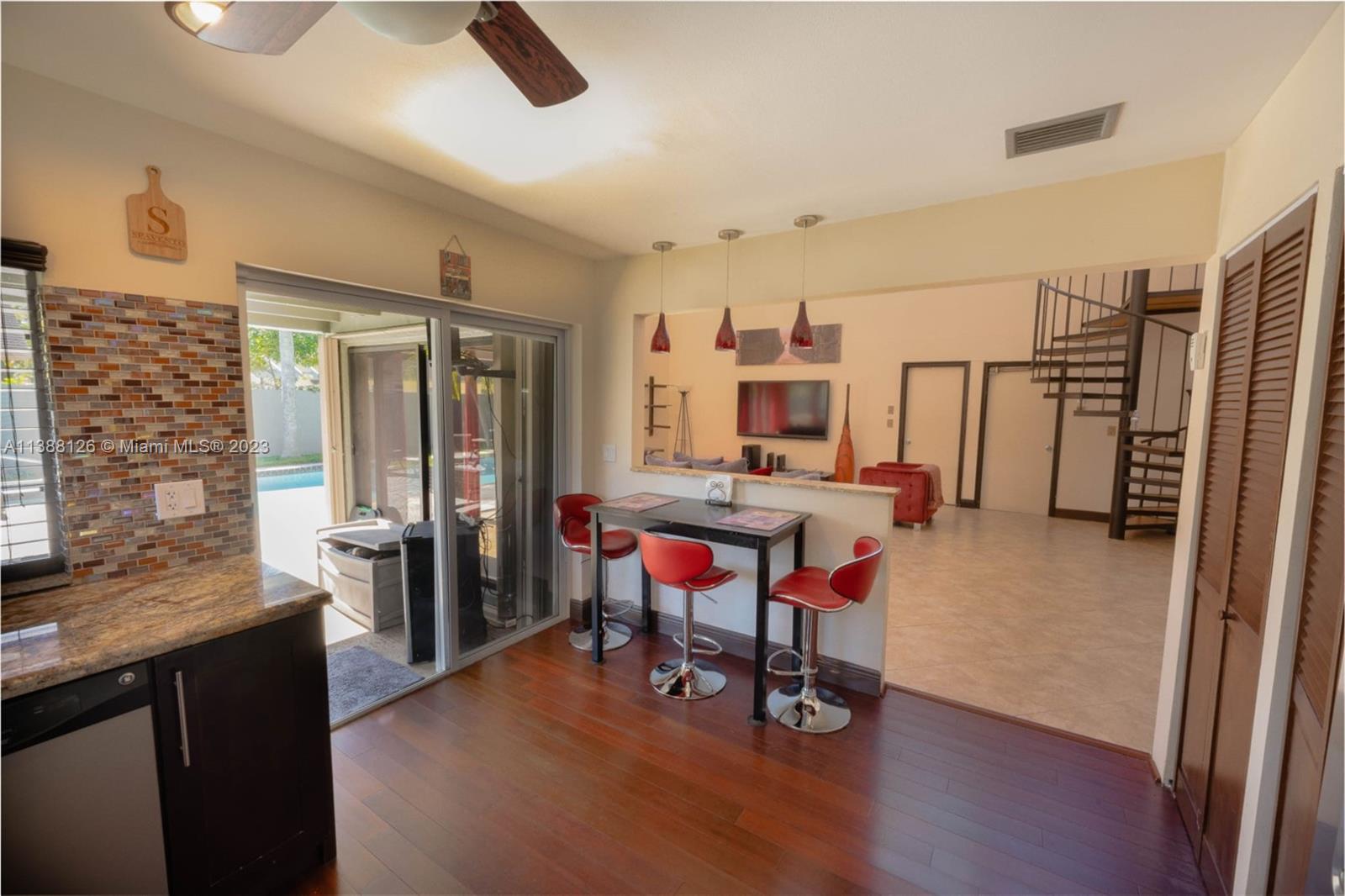 **NEW UPDATE TO LISTING: NEW ROOF AND ELECTRICAL PANEL BEING INSTALLED Charming 3BD/3 full bath fully furnished home with stunning design. Features a 22ft vaulted ceiling in the living room leading to the gourmet eat-in kitchen with stainless steel sink and double pantry. The master bedroom boasts a square sunken shower with multiple jets and a large walk-in closet. Discover a hidden gem through the spiral staircase—a private bedroom that offers versatility and privacy for guests or loved ones with its own full bath and a large walk-in closet, ensuring comfort and convenience for all occupants. Enjoy the unground pool in the walled-in large yard with dry bar, BBQ and enough lawn for kids to play or garden. This upscale home offers a truly remarkable living experience. Easy to Show