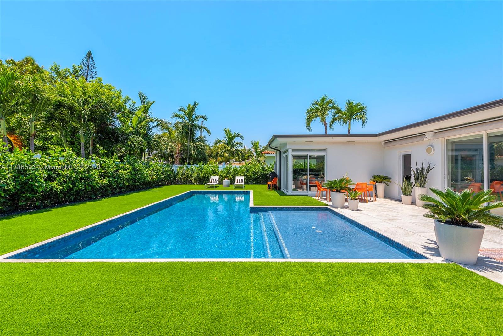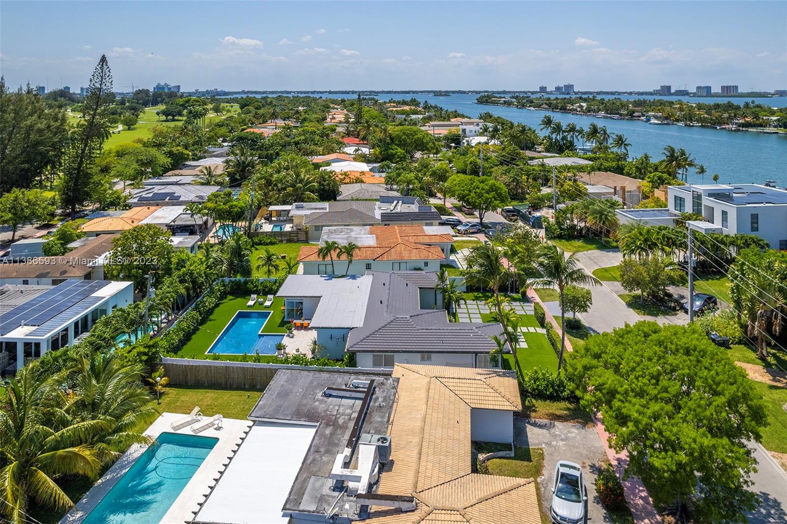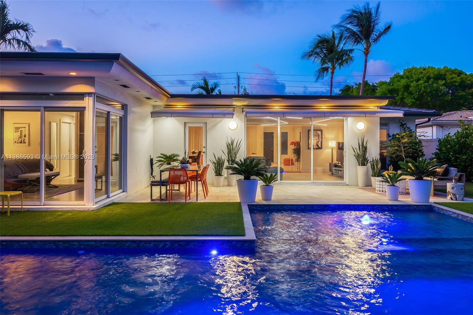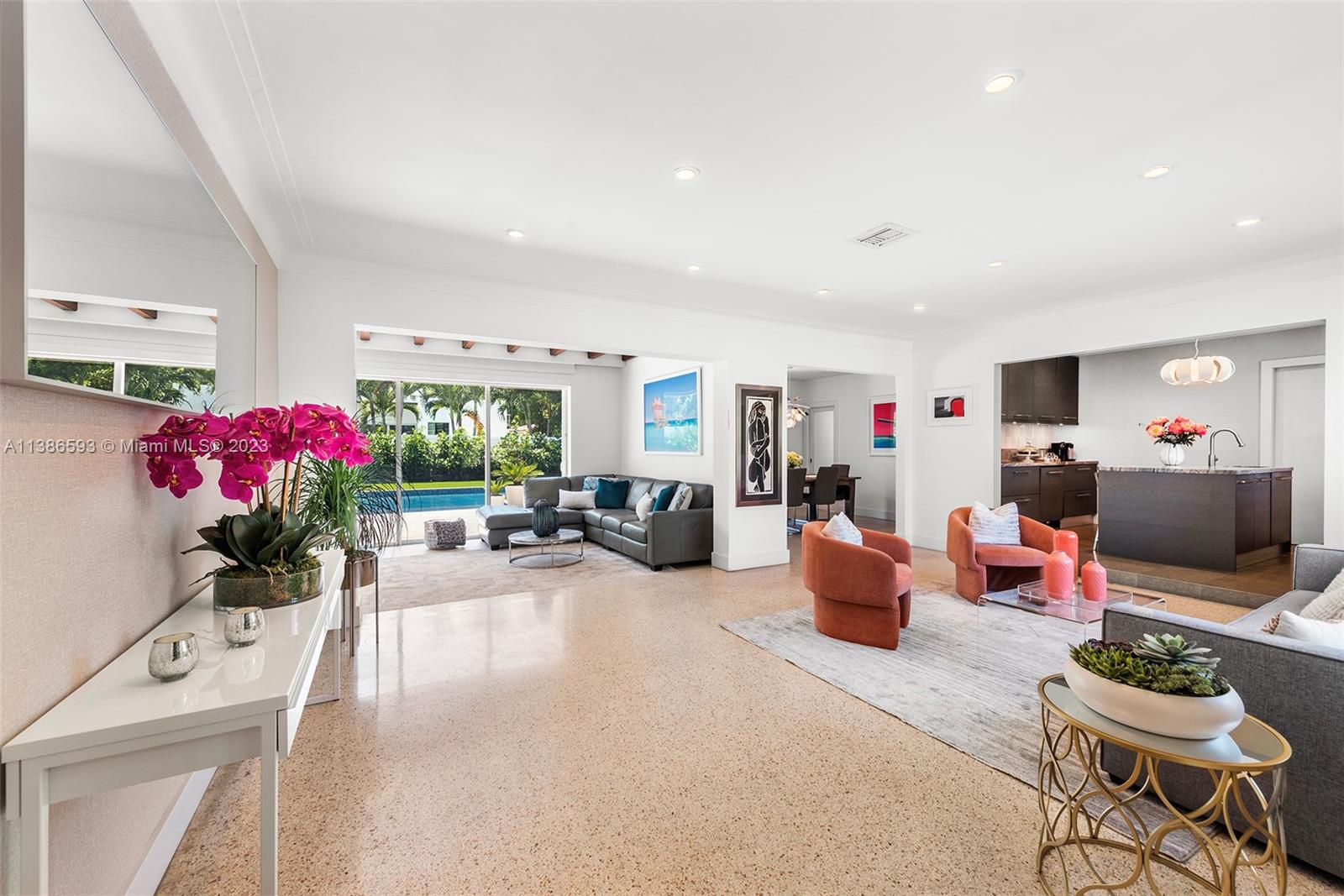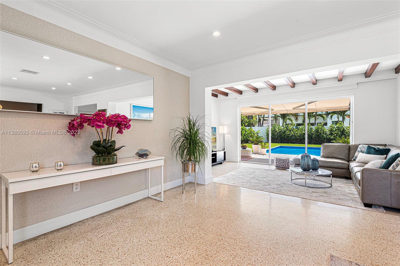 Gorgeously renovated, move-in ready, 3 bed/2.5 bath home, located on oversized 8,500 SF lot in the gated community of Normandy Shores, in Miami Beach. NEW POOL, NEW ROOF, NEW PRIMARY BATHROOM. Great open flow for entertaining. Contemporary kitchen with Gaggenau and Subzero appliances. Florida room opens to manicured backyard with state-of-the-art pool. Large bedrooms, primary suite with access to backyard. Updated primary bath with dual sinks and walk-in shower. Natural light throughout. Original terrazzo floors. Large contemporary driveway for several cars plus GARAGE! Spectacular curb appeal with lush landscaping. Gated community with top amenities: Golf Course, Tennis Courts, Children's Playground and Clubhouse. Walk to the beach, Normandy Circle shops and restaurants. A MUST SEE!