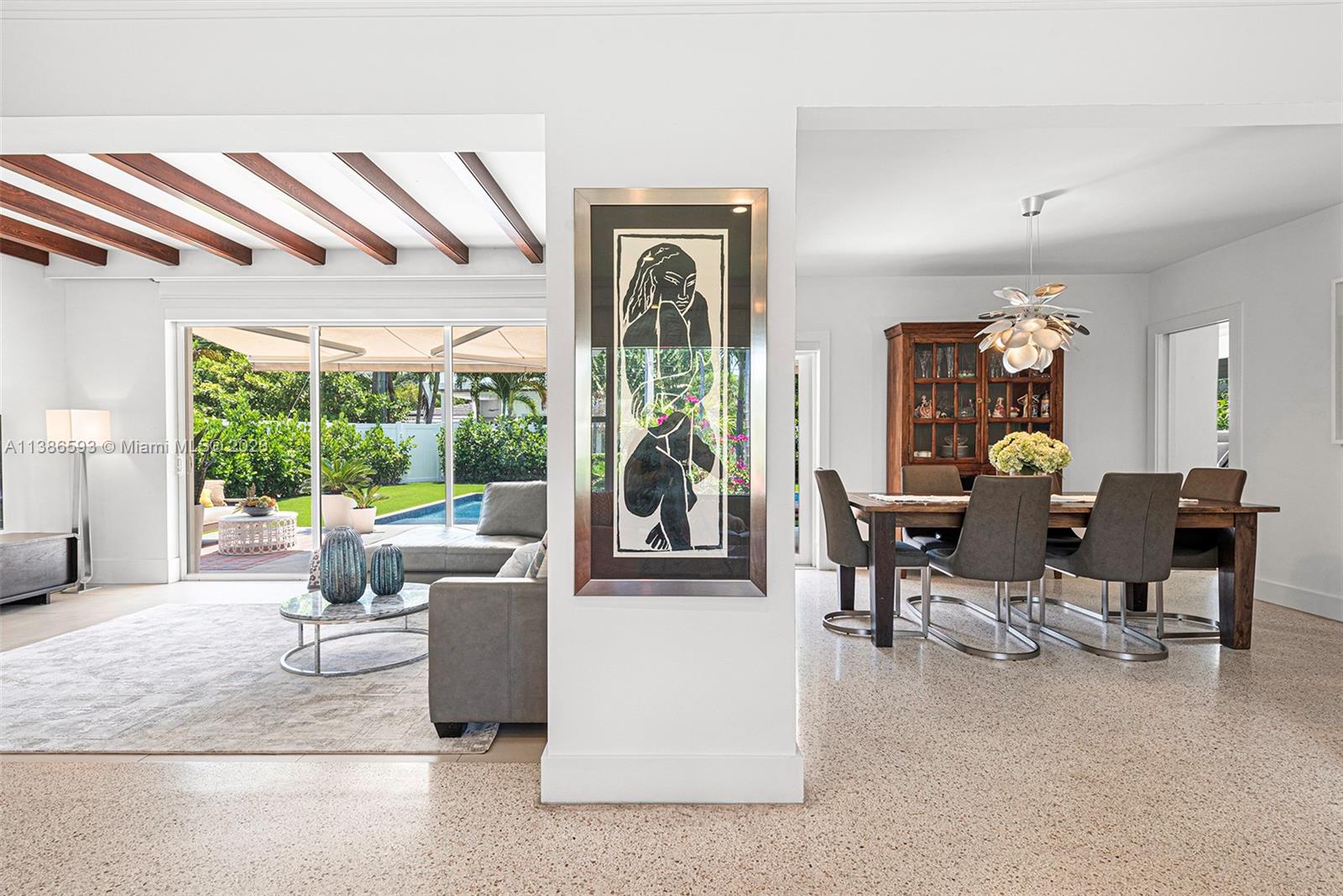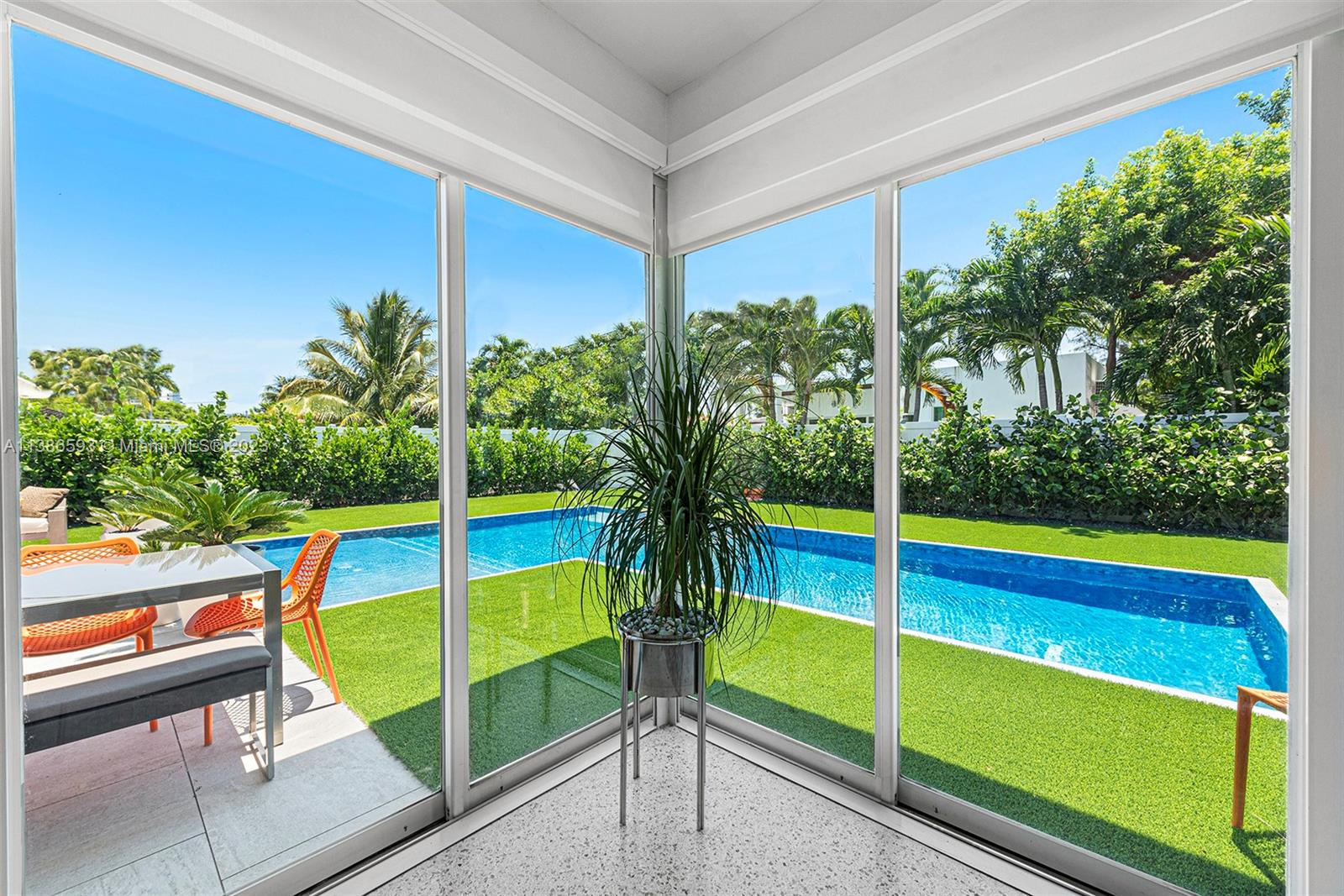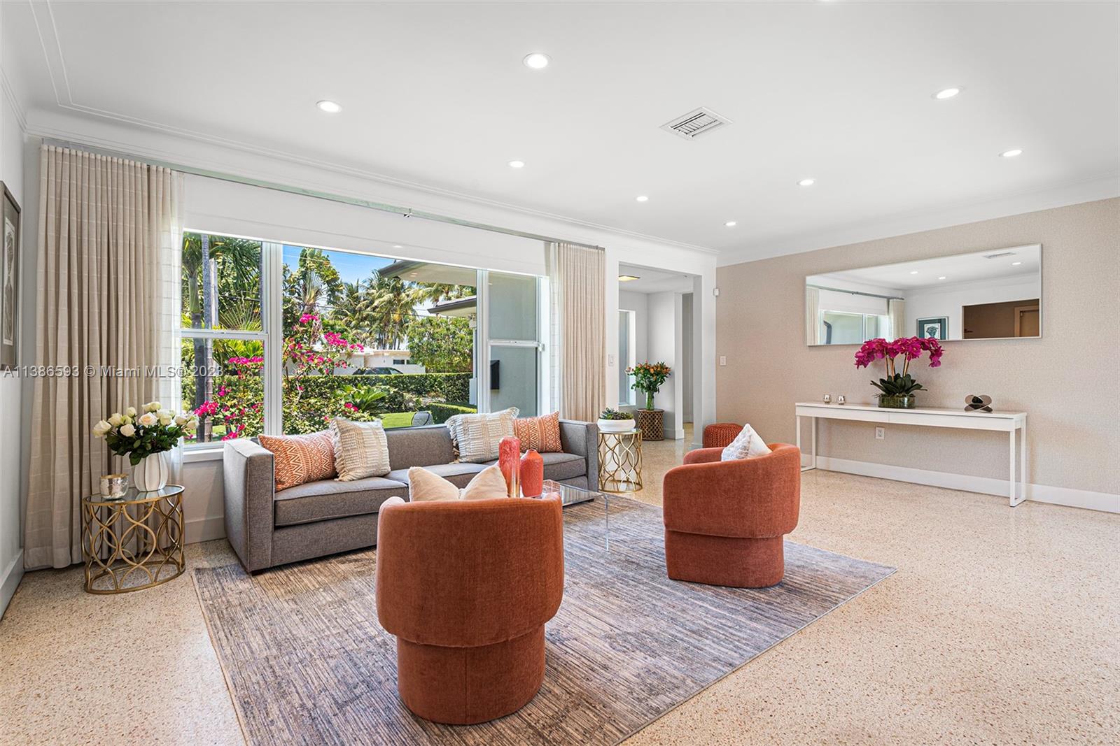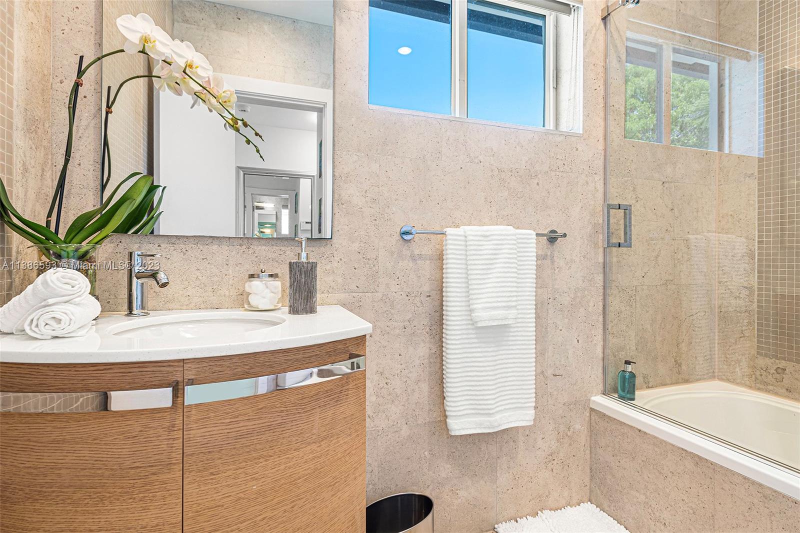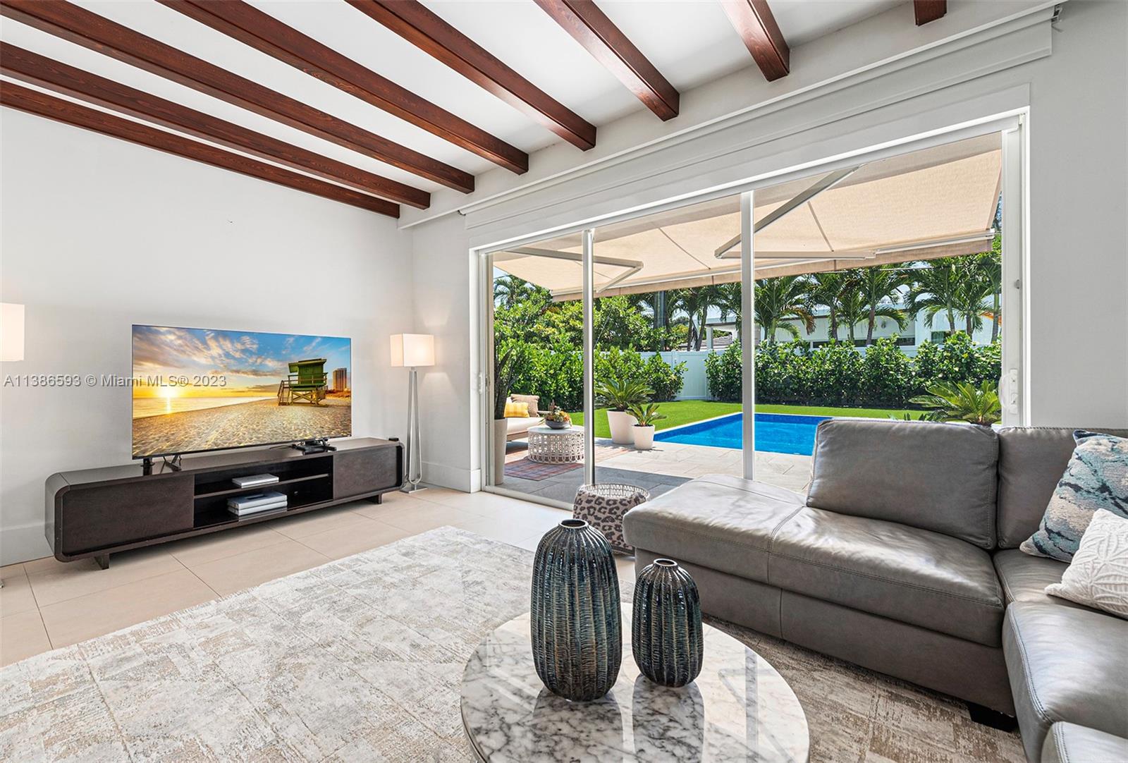 Gorgeously renovated, move-in ready, 3 bed/2.5 bath home, located on oversized 8,500 SF lot in the gated community of Normandy Shores, in Miami Beach. NEW POOL, NEW ROOF, NEW PRIMARY BATHROOM. Great open flow for entertaining. Contemporary kitchen with Gaggenau and Subzero appliances. Florida room opens to manicured backyard with state-of-the-art pool. Large bedrooms, primary suite with access to backyard. Updated primary bath with dual sinks and walk-in shower. Natural light throughout. Original terrazzo floors. Large contemporary driveway for several cars plus GARAGE! Spectacular curb appeal with lush landscaping. Gated community with top amenities: Golf Course, Tennis Courts, Children's Playground and Clubhouse. Walk to the beach, Normandy Circle shops and restaurants. A MUST SEE!