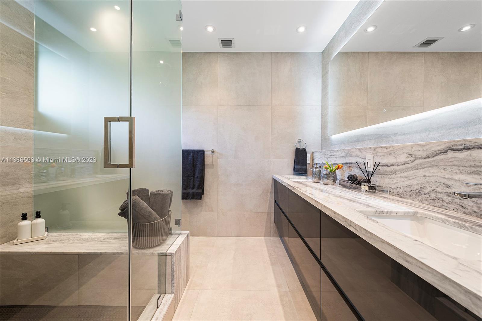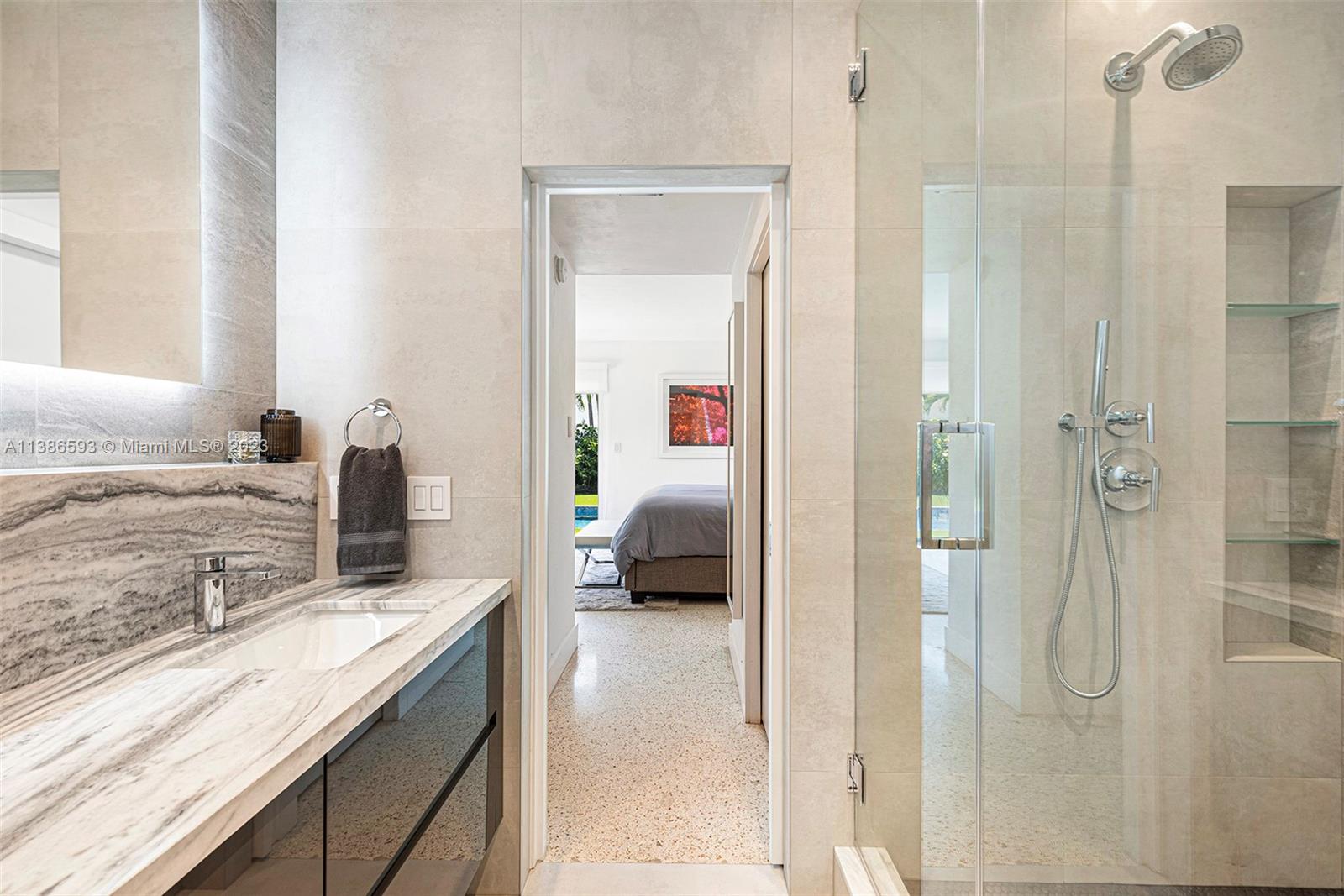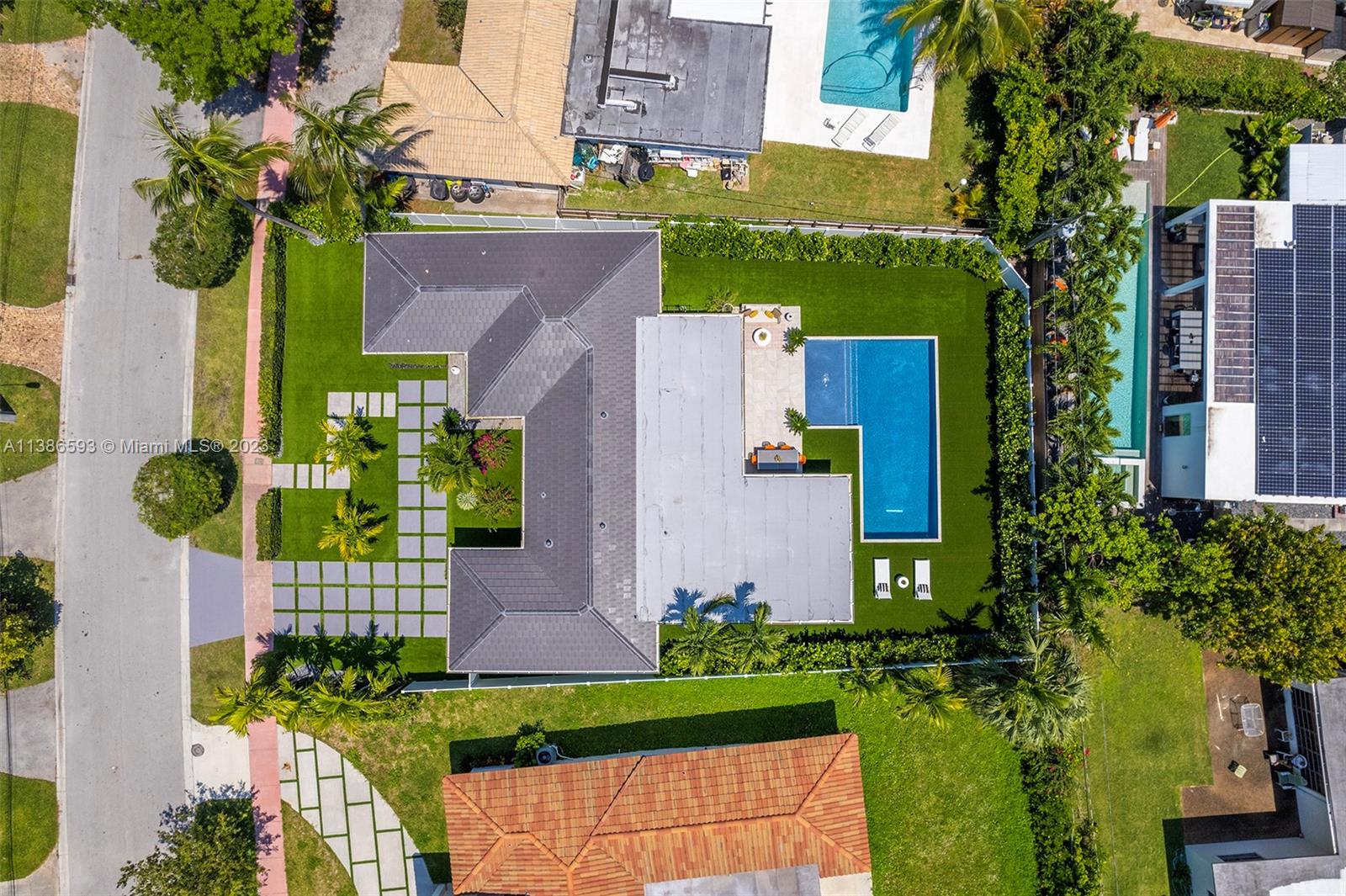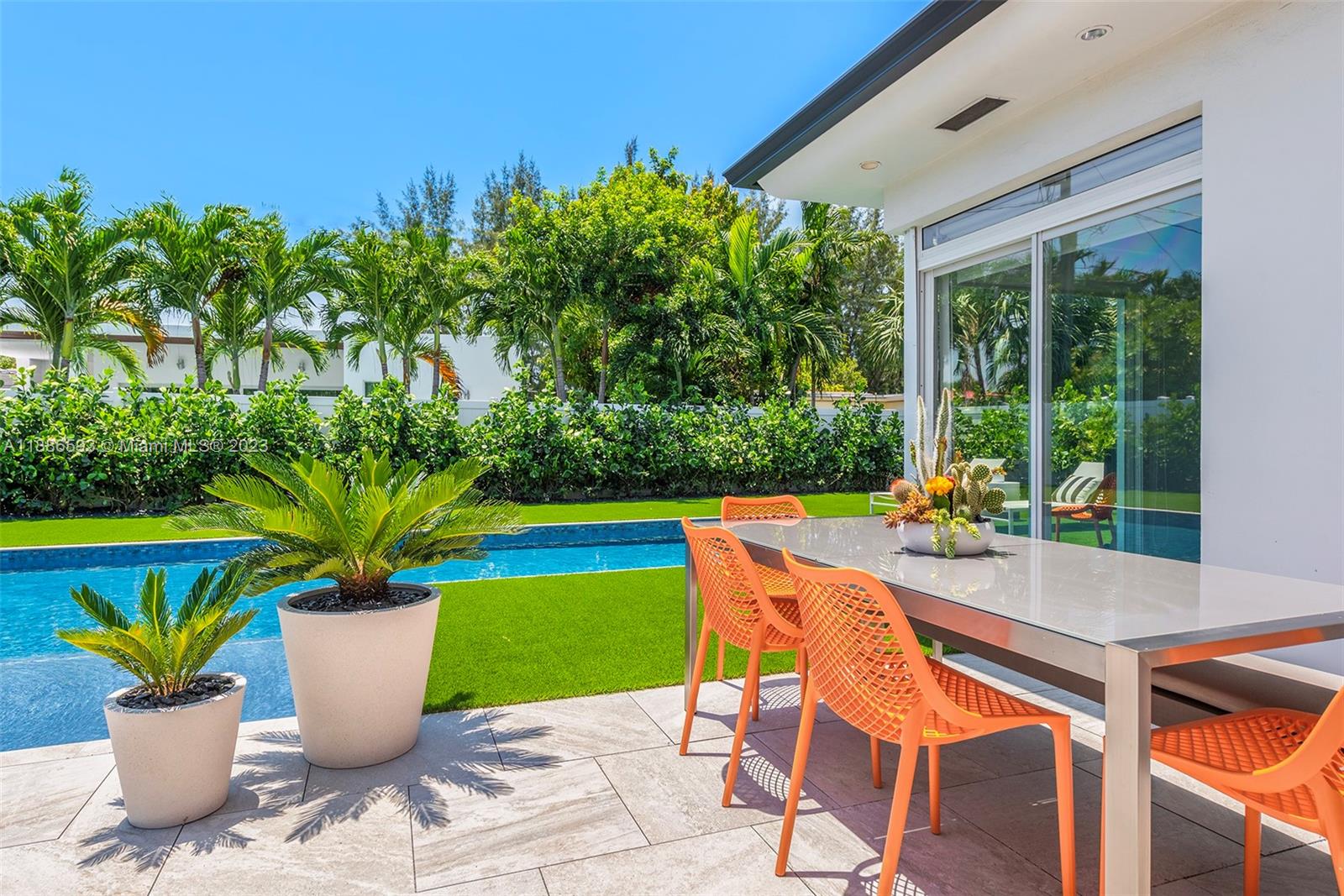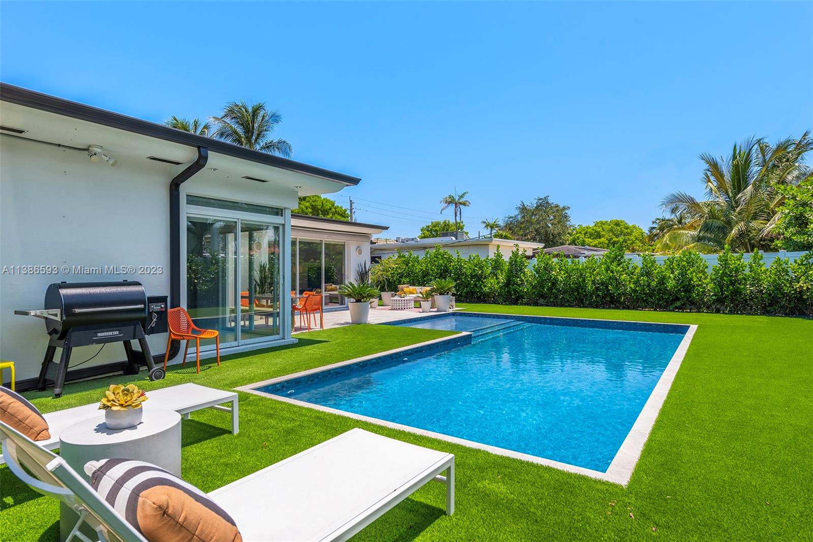 Gorgeously renovated, move-in ready, 3 bed/2.5 bath home, located on oversized 8,500 SF lot in the gated community of Normandy Shores, in Miami Beach. NEW POOL, NEW ROOF, NEW PRIMARY BATHROOM. Great open flow for entertaining. Contemporary kitchen with Gaggenau and Subzero appliances. Florida room opens to manicured backyard with state-of-the-art pool. Large bedrooms, primary suite with access to backyard. Updated primary bath with dual sinks and walk-in shower. Natural light throughout. Original terrazzo floors. Large contemporary driveway for several cars plus GARAGE! Spectacular curb appeal with lush landscaping. Gated community with top amenities: Golf Course, Tennis Courts, Children's Playground and Clubhouse. Walk to the beach, Normandy Circle shops and restaurants. A MUST SEE!