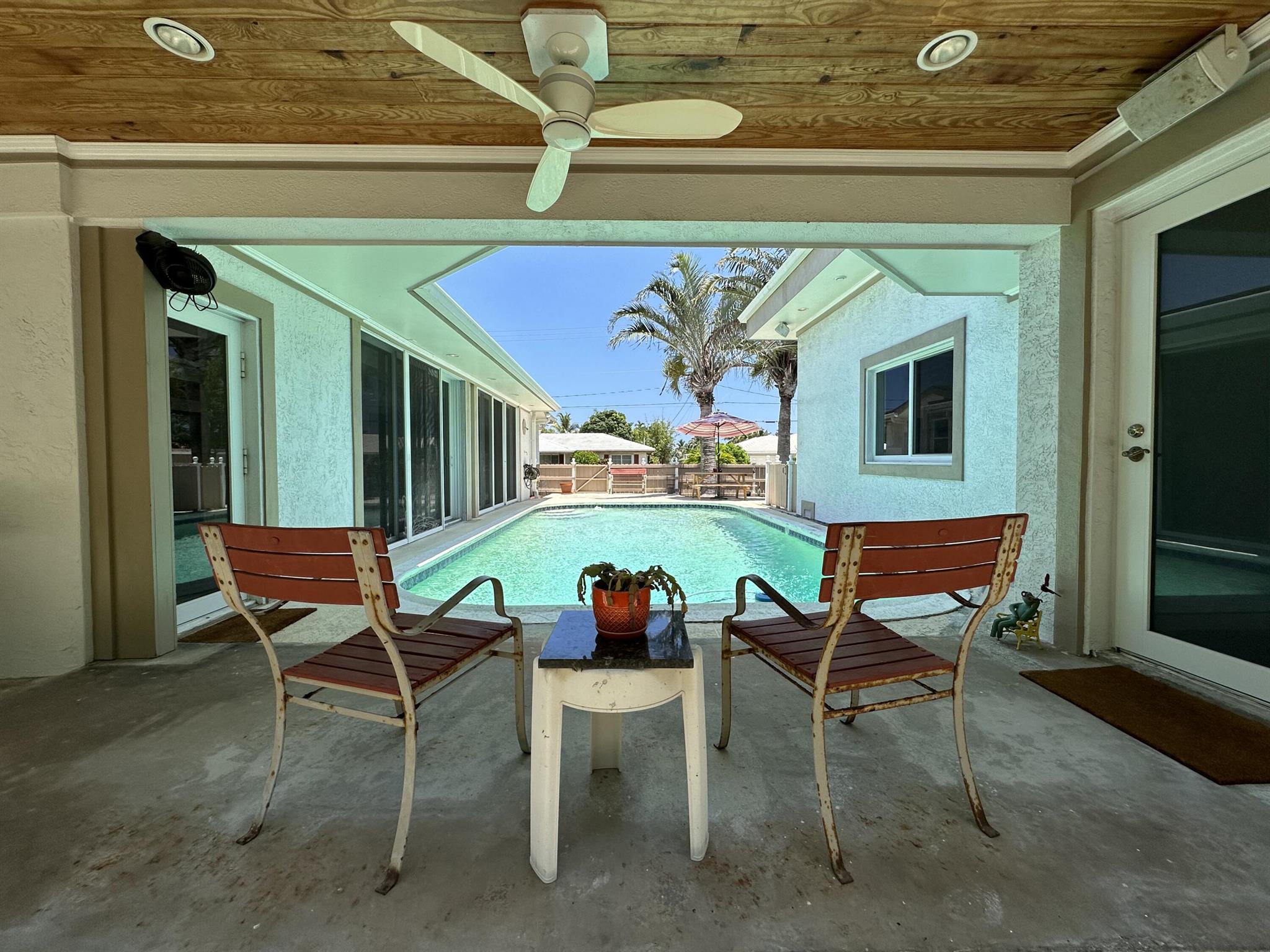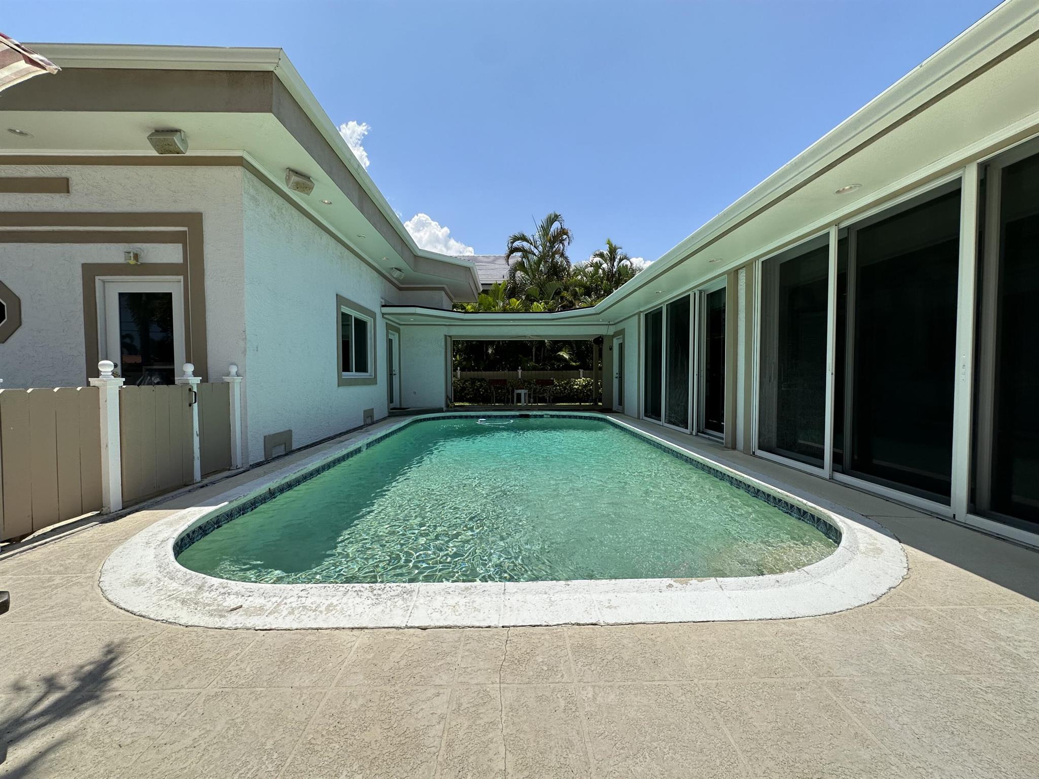 Rarely available oversized corner lot on .28 acres EAST of Federal Hwy. Located directly across from canal just off the intracoastal, which means building up may potentially provide water views. Custom build with a total of 4 bedrooms & 5.5 bathrooms. Main house consists of 2 bedrooms & 2.5 bathrooms along with a connected efficiency apartment with full bath & its own private entrance. Large covered patio provides additional living space with a built-in summer kitchen. Second building consists of a cabana bath for the pool & also a separate 1 bedroom efficiency apartment with full kitchen & private bath. Covered walkway connecting the 2 buildings. Corner lot provides 2 separate driveways. Property is immaculate & well maintained. Lots of potential for a family wanting some separate spaces