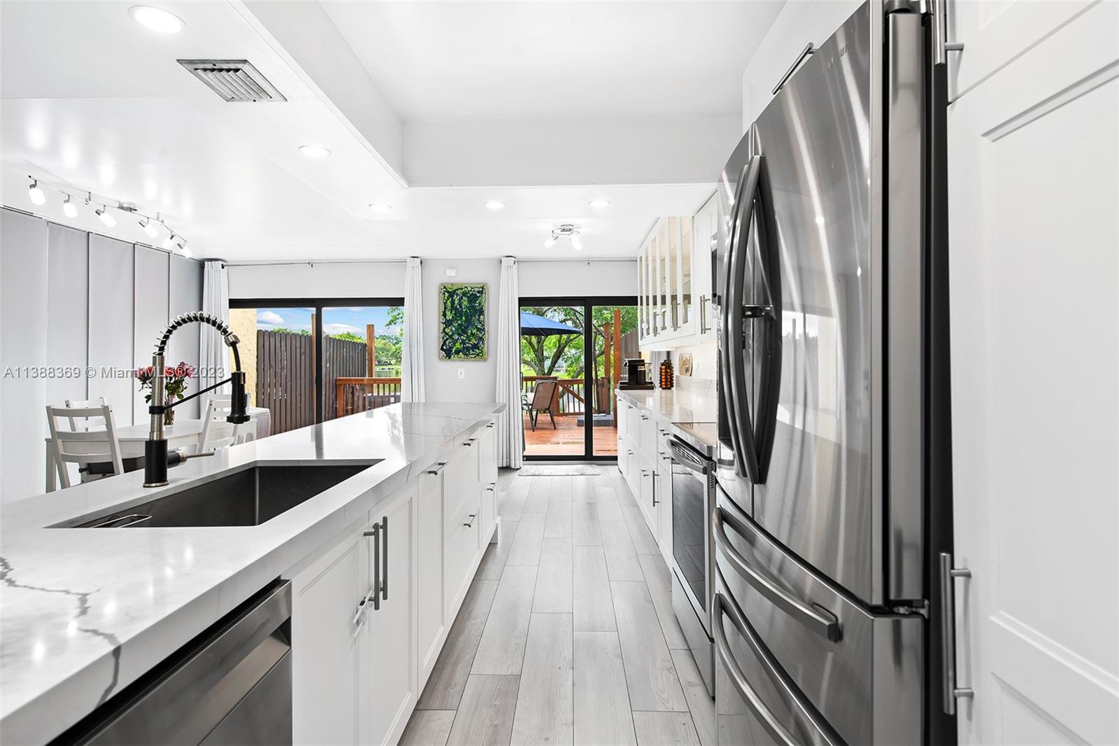 Stunningly renovated lake-side townhouse in the heart of Plantation. Step inside to the large living room that flows through to the kitchen and dining spaces. Entertainers will be thrilled by the beautiful kitchen with extended cabinetry and large island topped w/ white quartz countertops that opens up to the oversized deck and tranquil lake views. The first level features a 1/2 bath, laundry and cleverly added large storage spaces. Upstairs you will find a primary bedroom with updated ensuite bath and two spacious guest bedroom that share a guest bath. Impact glass/doors throughout. 2 assigned parking spaces. Community features a clubhouse, pool and tennis court. Fiber optic cable available. Convenient location near shopping, restaurants, schools & highways.