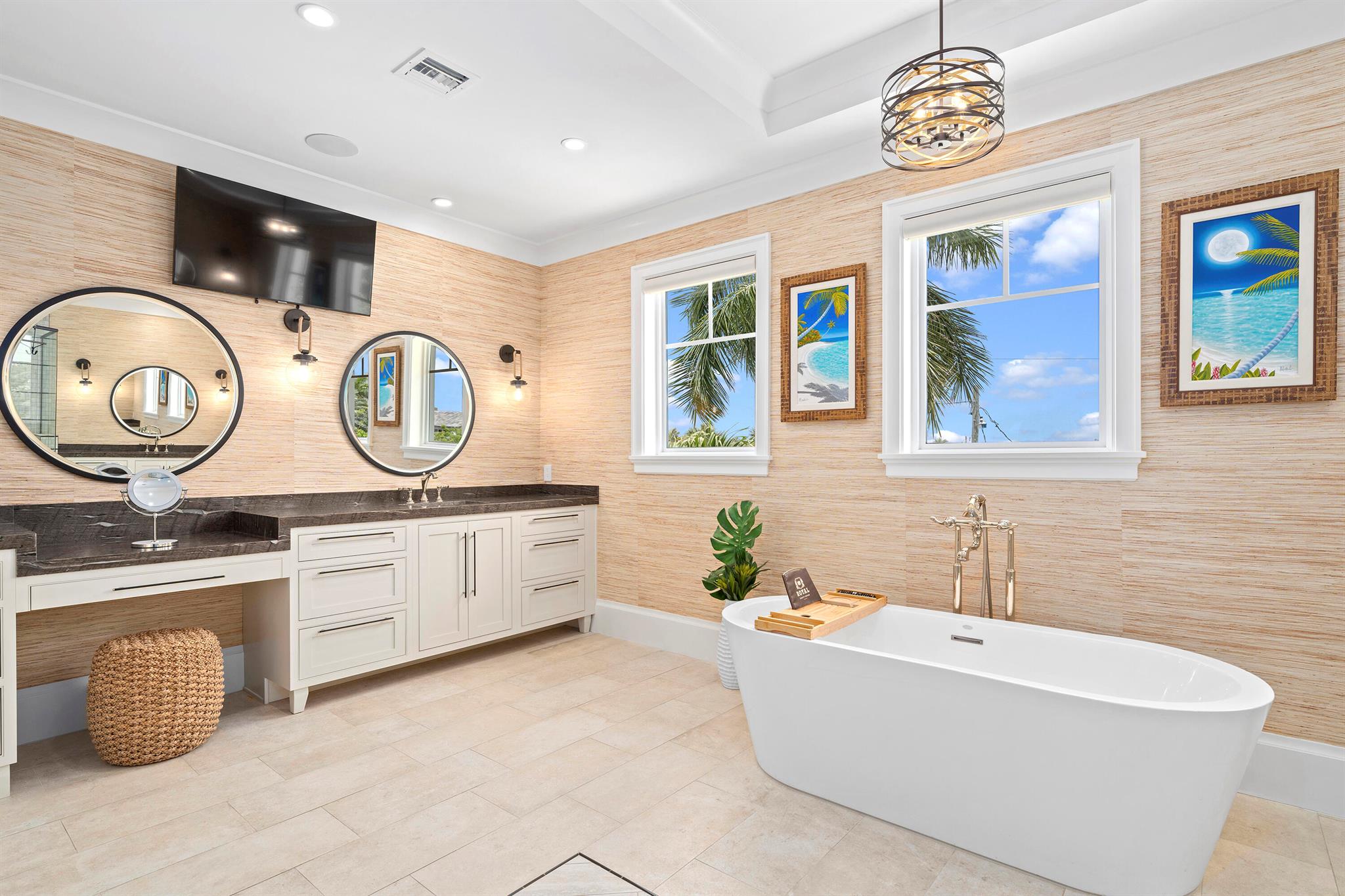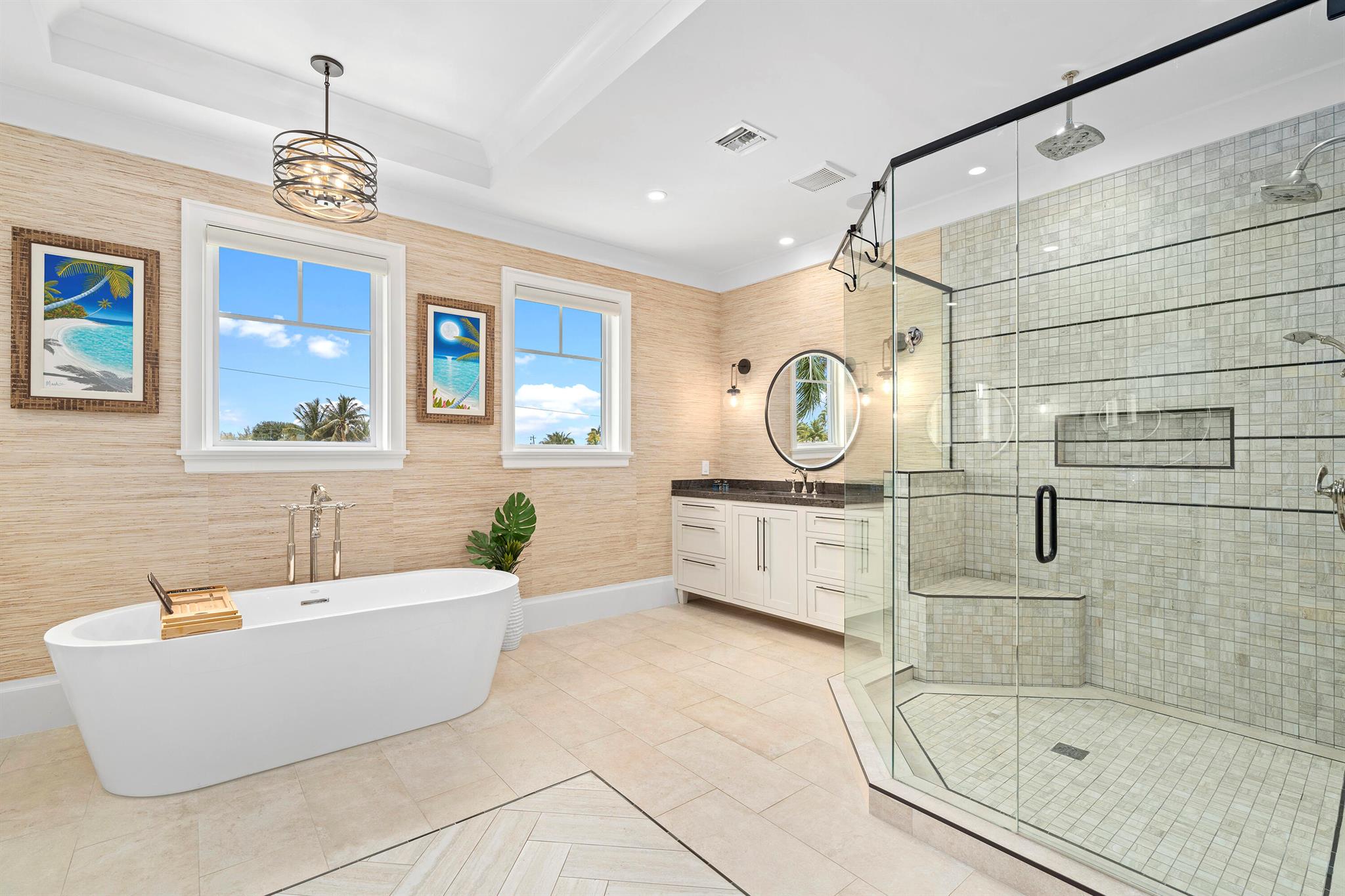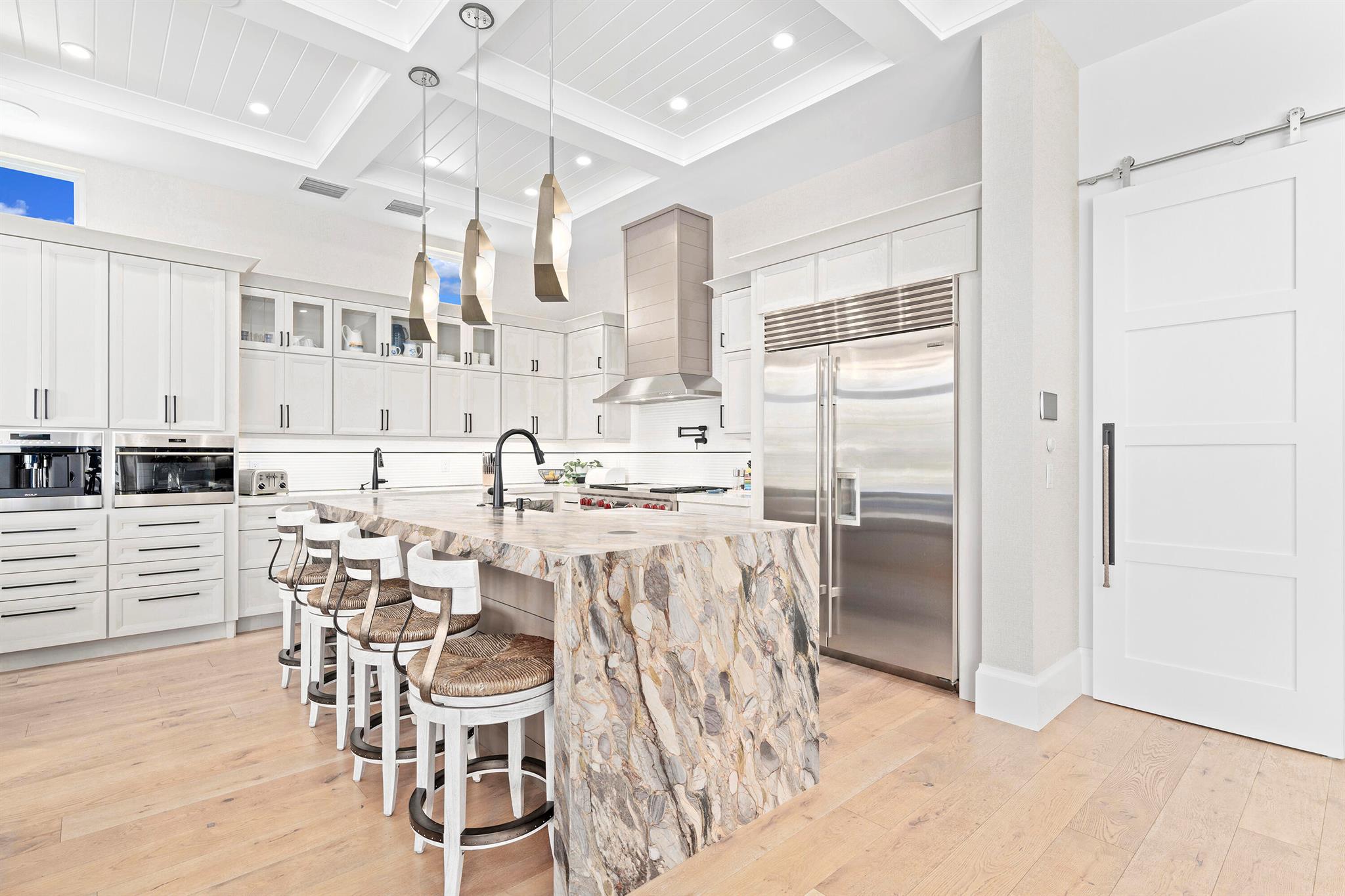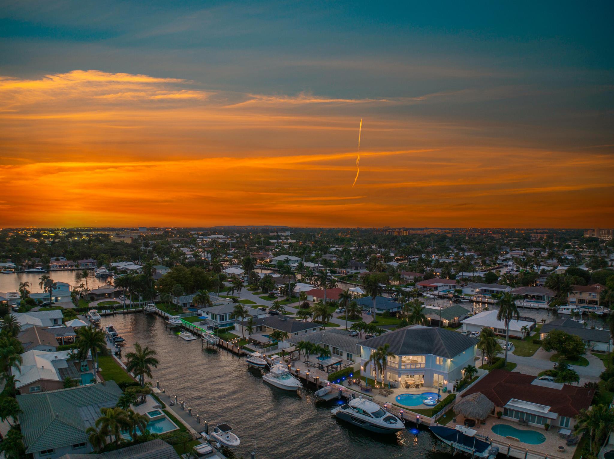 Stunning British West Indies-inspired deepwater estate in the exclusive enclave of Pompano Beach, Florida. Overlooking the Capri Canal, this estate features more than 80 feet of water frontage, offering direct Intracoastal and ocean access, and is only minutes from the Hillsboro Inlet. This home is an epitome of luxury living, encased in luminous glass rooms with breathtaking views of the waterway and a resort-style pool. Engineered with smart home automation, this estate extends its intelligent features to all corners, including the garages. The Chef's Kitchen is a classic blend of chic design and modern amenities, boasting Sub-Zero and Wolf appliances, a gas range with natural gas hookup, and an island breakfast bar. The quartz countertops, full tile backsplash, and