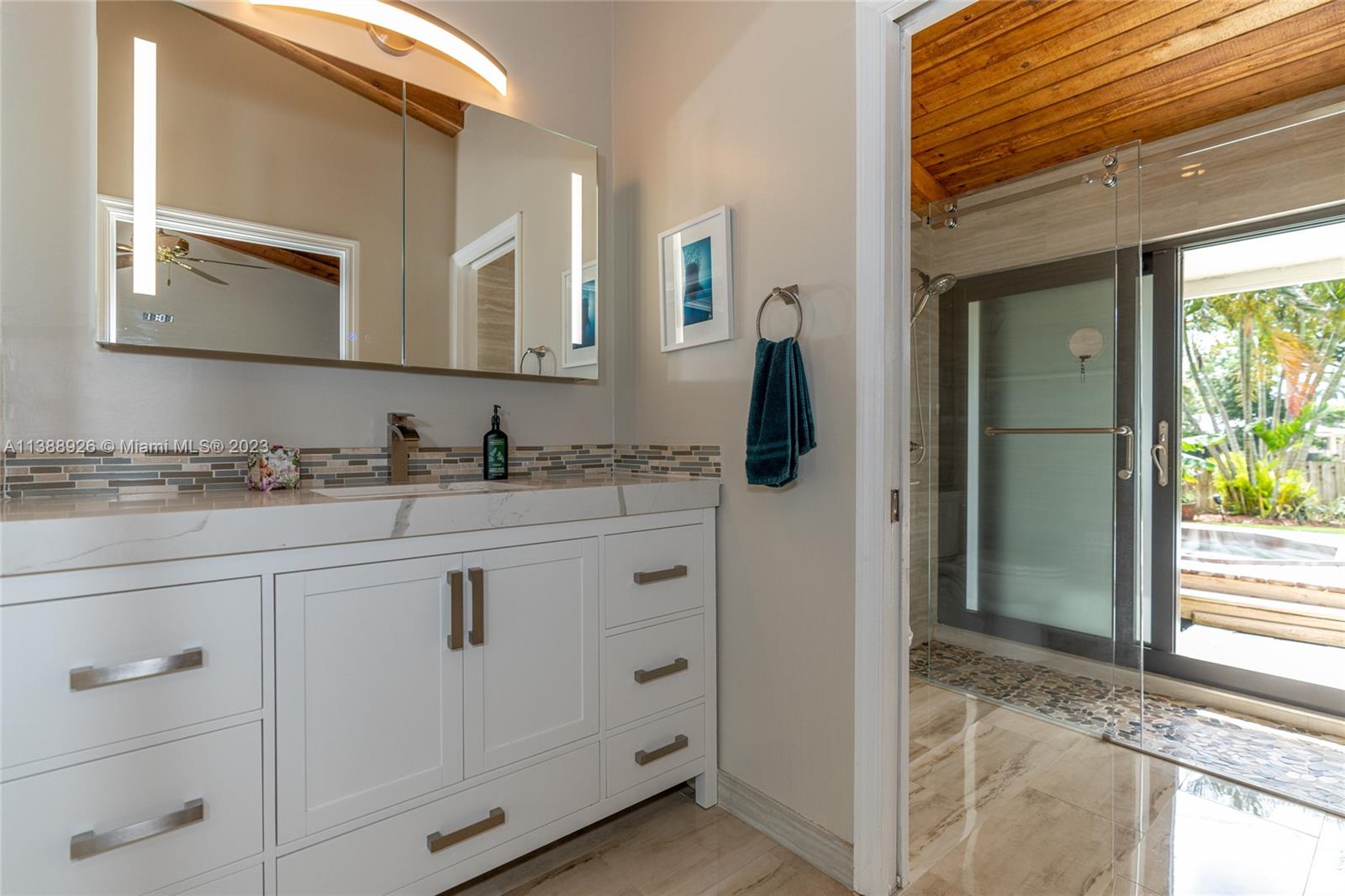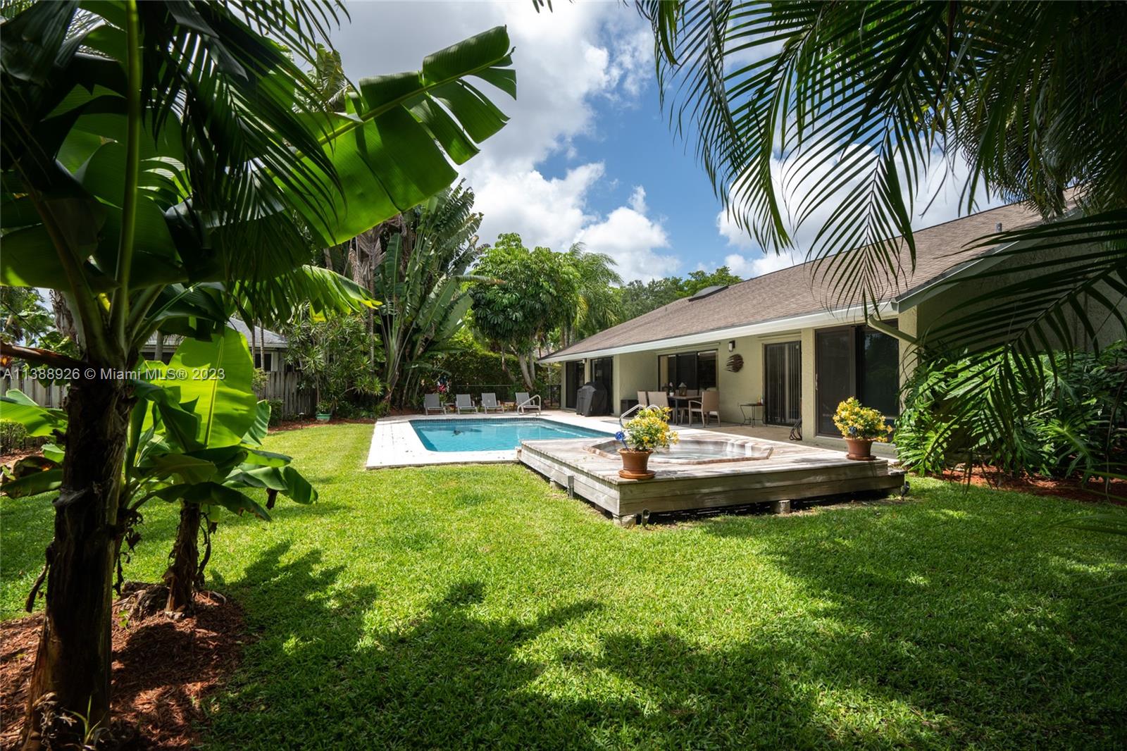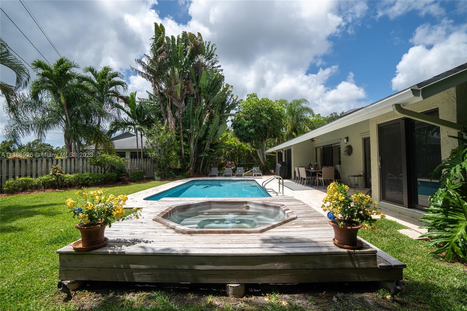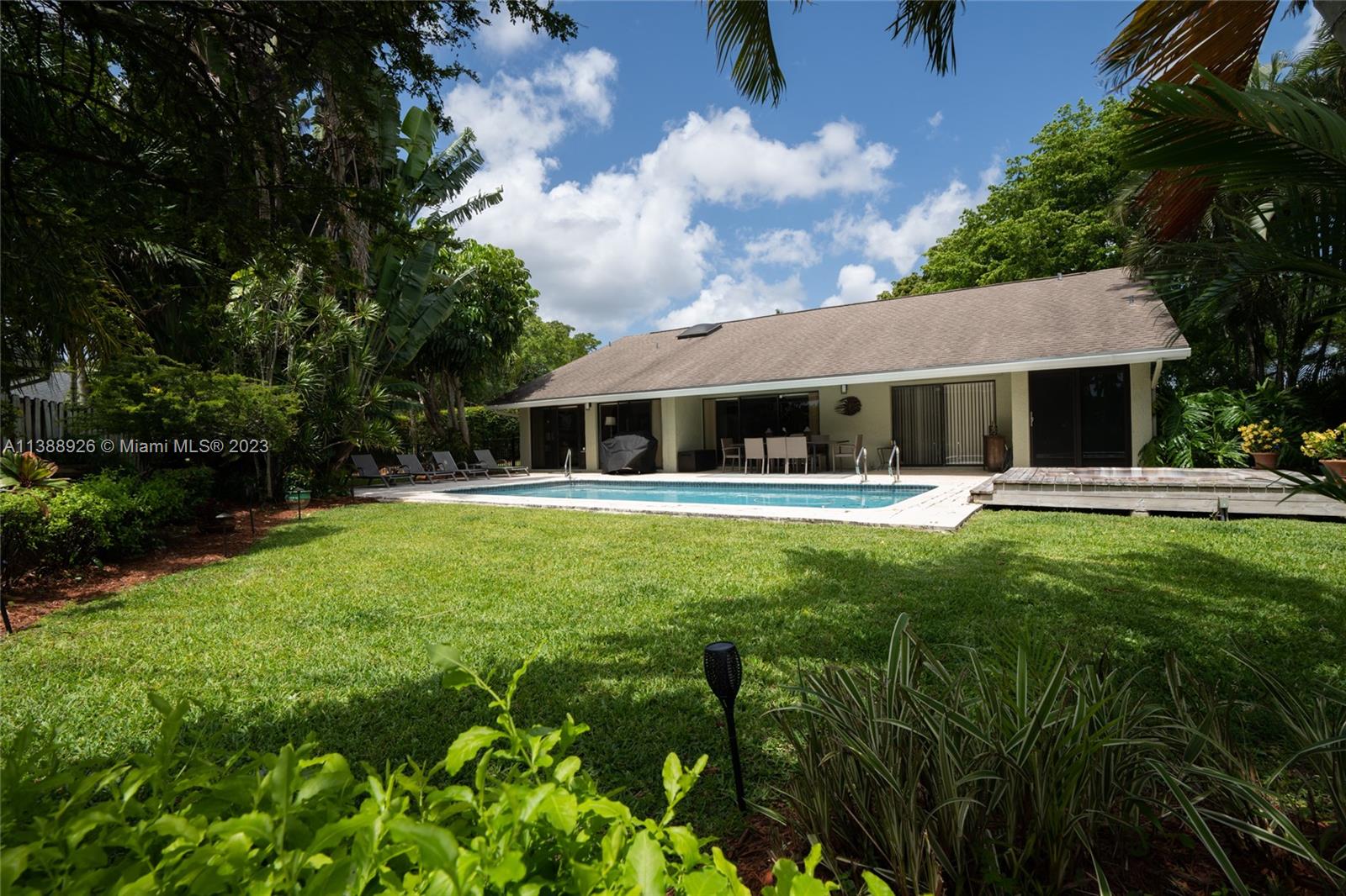 This stunning property has indirect light front and back yard, with a fully functional irrigation system to keep your lawn looking lush and green. With a spacious 2 car garage and attic storage, you'll have plenty of room to store your belongings and vehicles. Newer upgrades include a new roof (2 years old), air conditioning (1-year-old) water heater (2 years old), a new stove, freshly painted exterior, updated electric control panel, central vacuum, new diamond bright surface pool (1 year and 1/2 old), newly renovated bathrooms which exude luxury with modern finishes and fixtures creating a spa-like atmosphere. Nestled on a corner lot beside a cul-de-sac, you'll enjoy a tranquil setting while still being close to local shops, restaurants, and parks.