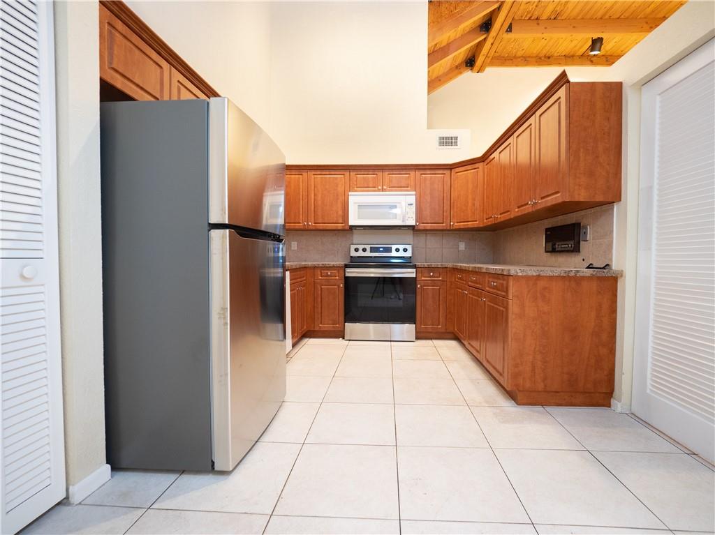 Come see this beautiful 3/2 townhouse in the Boca Raton community of L'Ambiance. This light and bright Brittany model with lake views features volume wood ceiling with open beams and clerestory windows. Master bedroom located on the top floor with large master bath and balcony overlooking the lake view. Lake views can also be enjoyed from your screened in patio. Plenty of light comes through the atrium in the living area. Community is centrally located in the heart of Boca Raton minutes from Town Center Mall, close to casual and fine dining restaurants, BRAND NEW K-8, A-rated public school, Verde Elementary, is within walking distance.