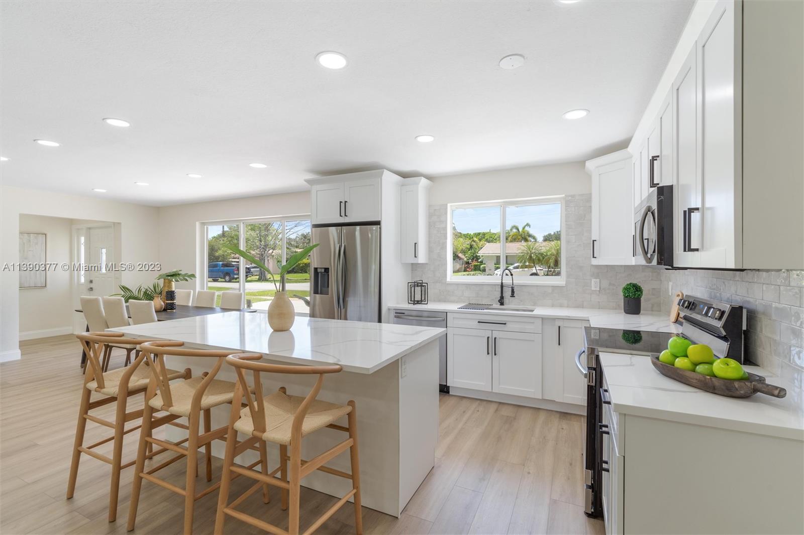 Welcome to this stunning, fully renovated home on a delightful tree-lined street in Hollywood Hills! This exceptional 3 bedroom, 2 bath property boasts a unique feature that sets it apart from the rest; The highly coveted 500+ sqft detached garage, which can be transformed into an in-law suite, a home gym, or even a playroom for children.The home has a well-designed floor plan w/ an open-concept kitchen with quartz countertops & brand new appliances. In addition, brand NEW impact windows throughout, a den/office that can be used as a 4th bedroom w/ a side entrance, a master suite w/ walk-in closet, a COVERED patio, full sprinkler system, and more. Plenty of room for a boat/RV. NO HOA. Just 4 miles from the beach and minutes away from highway access, great schools. THIS IS A MUST-SEE HOUSE.