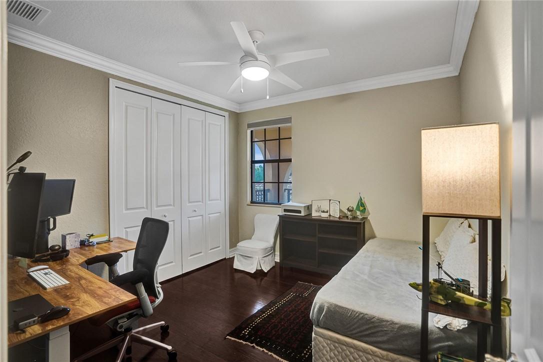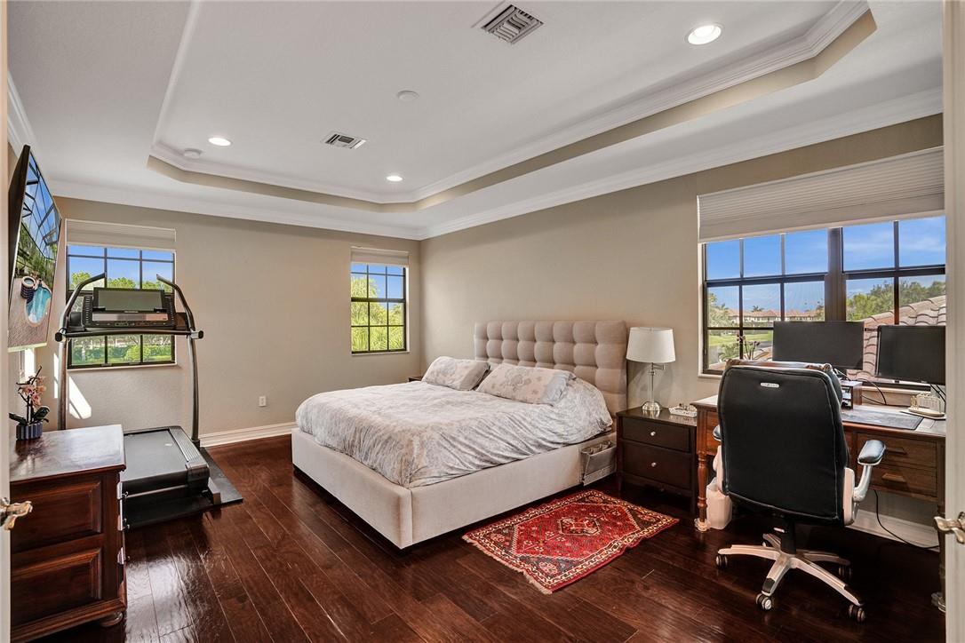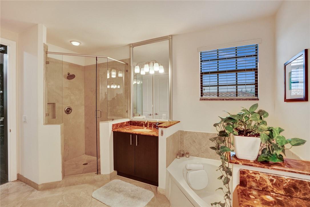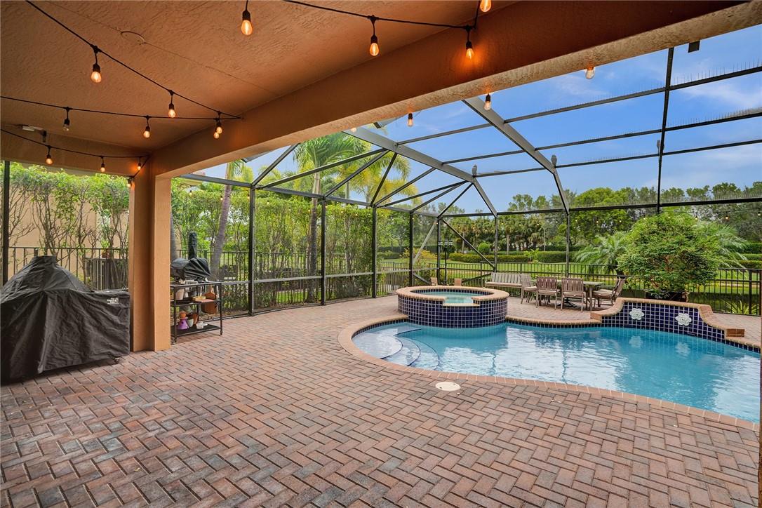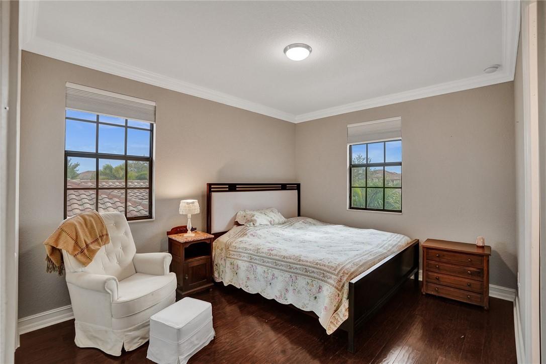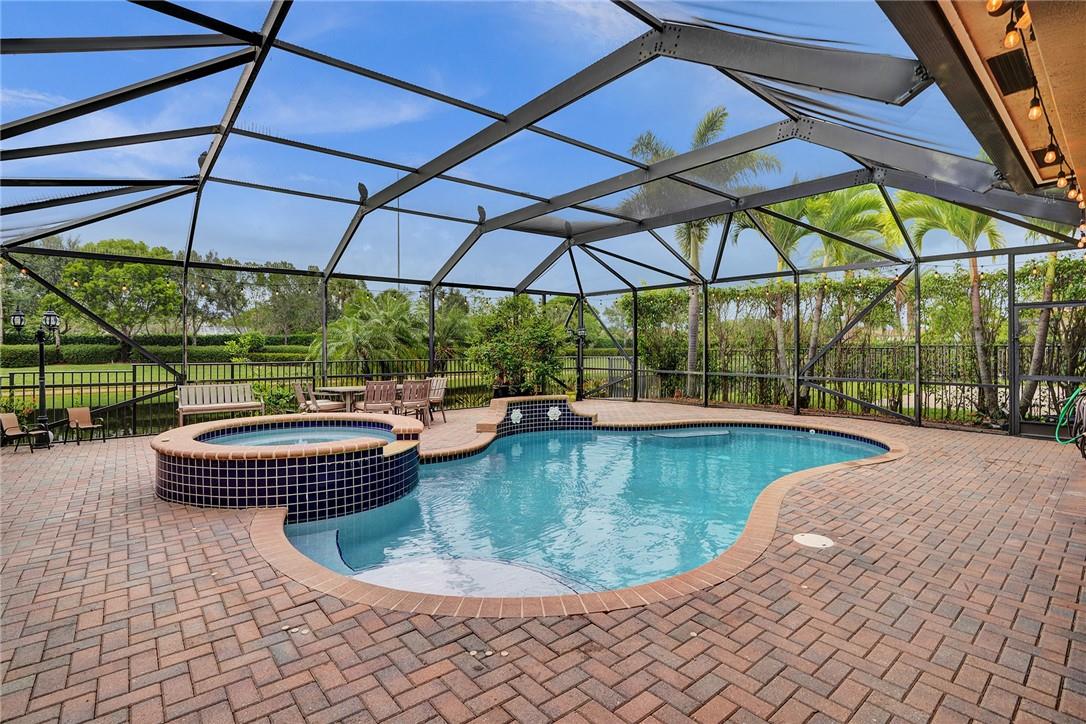 This exquisite 5-bed, 4-bath home w/ 3-car garage spans over 3300 sq ft. Luxury marble flooring 1st flr, 2 newer A/C units, upgraded kitchen, wired for ceiling speakers, dark wood flooring on the stairs & entire 2nd floor. Discover the crowning jewel within the primary bedroom: a sprawling custom "closet room", the perfect sanctuary for your wardrobe. This home features large bedrooms, plus an oversized 2nd master w/ movie theater, large closet & bath. Impact glass & doors for safety & tranquility. Outside, the landscape envelopes a luxurious heated salt system pool & spa. Embrace a vibrant lifestyle: convenient walking access to the A+ schools, an amphitheater, sports fields, basketball courts, & playgrounds. Discover luxury and affordability, with a low monthly HOA fee of just $185.