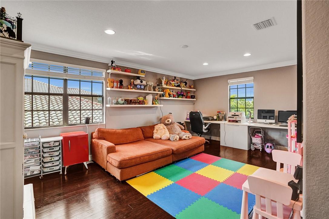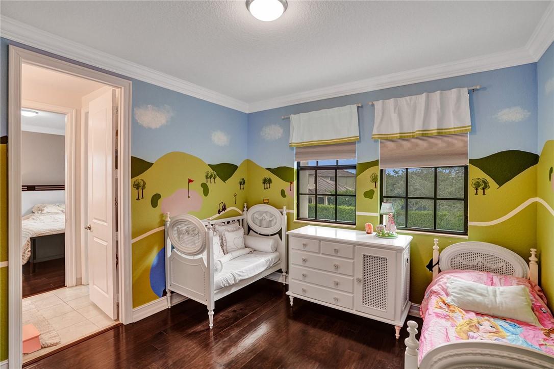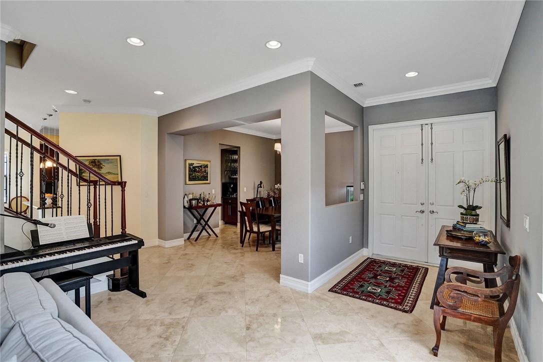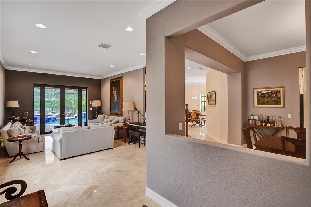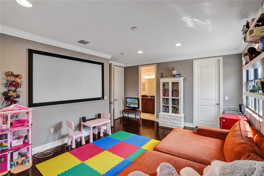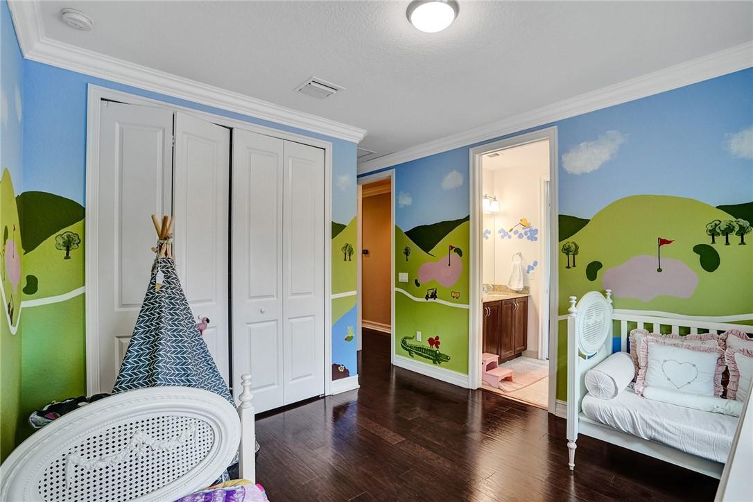 This exquisite 5-bed, 4-bath home w/ 3-car garage spans over 3300 sq ft. Luxury marble flooring 1st flr, 2 newer A/C units, upgraded kitchen, wired for ceiling speakers, dark wood flooring on the stairs & entire 2nd floor. Discover the crowning jewel within the primary bedroom: a sprawling custom "closet room", the perfect sanctuary for your wardrobe. This home features large bedrooms, plus an oversized 2nd master w/ movie theater, large closet & bath. Impact glass & doors for safety & tranquility. Outside, the landscape envelopes a luxurious heated salt system pool & spa. Embrace a vibrant lifestyle: convenient walking access to the A+ schools, an amphitheater, sports fields, basketball courts, & playgrounds. Discover luxury and affordability, with a low monthly HOA fee of just $185.