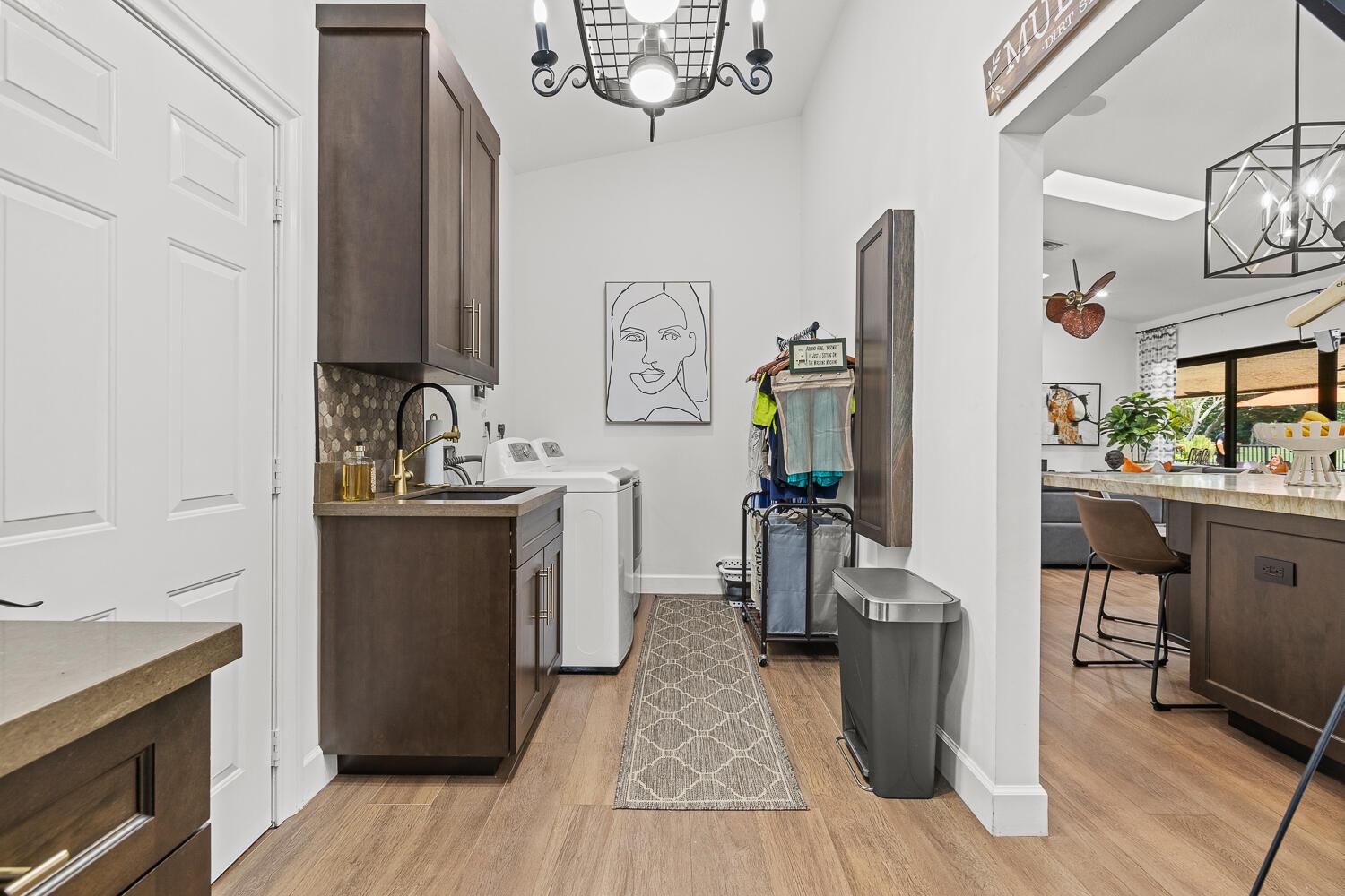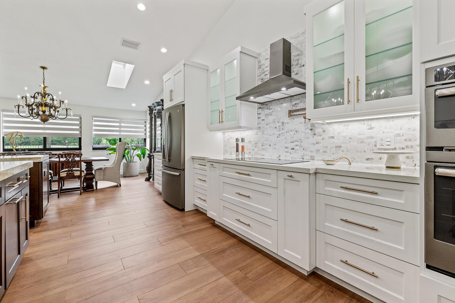 Price improvement! Welcome to Boca Woods Country Club - a hidden gemExceptional 3BR, 2.5 bath home, fully renovated, open concept floor plan with upgrades throughout. Over $250k in renovations including a chef's kitchen featuring quartzite countertops, custom cabinetry, and GE Profile appliances, complemented by a large main kitchen island and wet bar island.Featuring volume ceilings and skylights, and abundant natural light. This home is equipped with 2 zone AC, central vac, and hurricane impact windows and doors. Immaculately clean throughout.Backyard with a golf course view from the 15th hole. Rock waterfall pool and southern exposure.