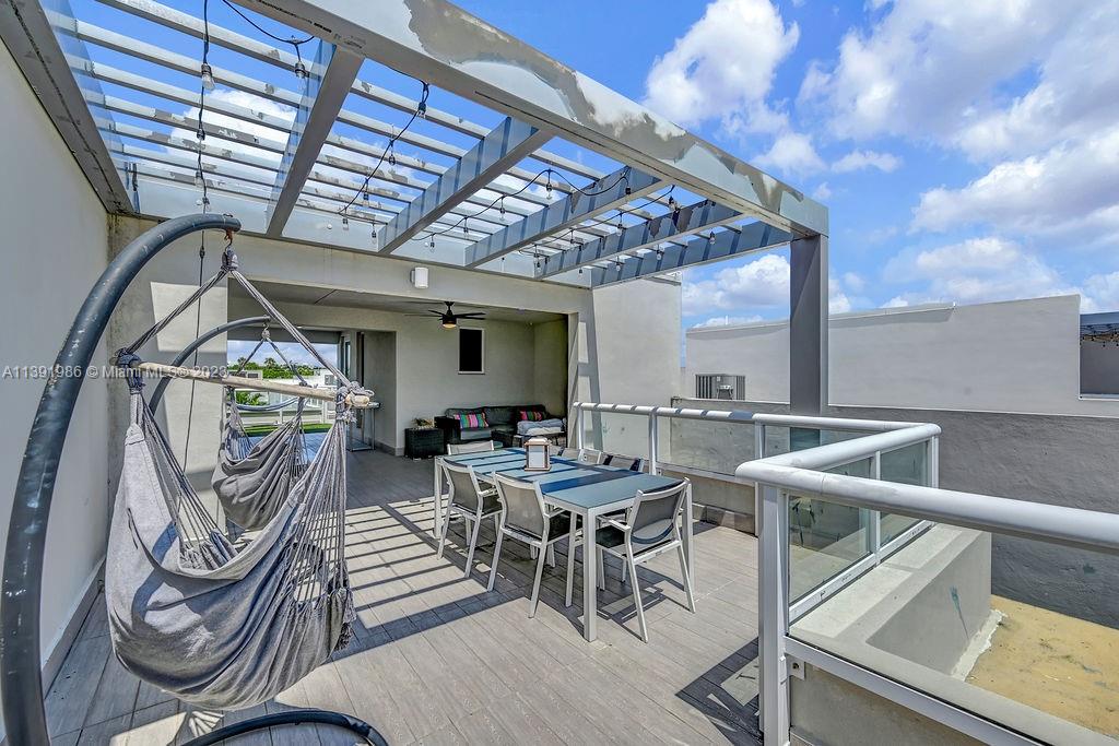 BACK ON MARKET! Modern Townhome at Landmark Doral. Amazing location located right in front of a beautiful walking park! This trip-level unit has modern finishes featuring an open kitchen at entry level and a beautiful rooftop terrace with an outdoor kitchen and lounge area perfect for entertaining!