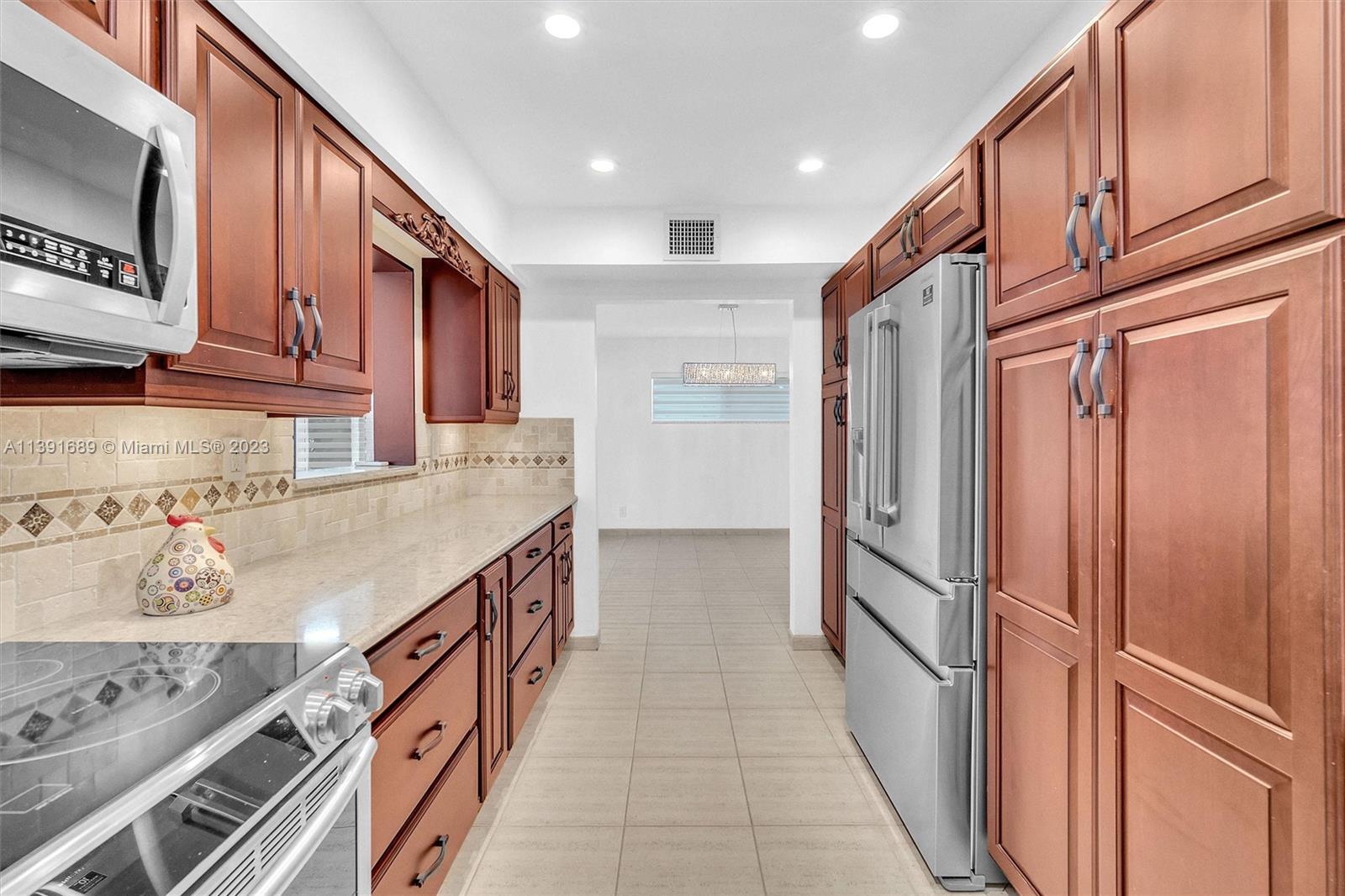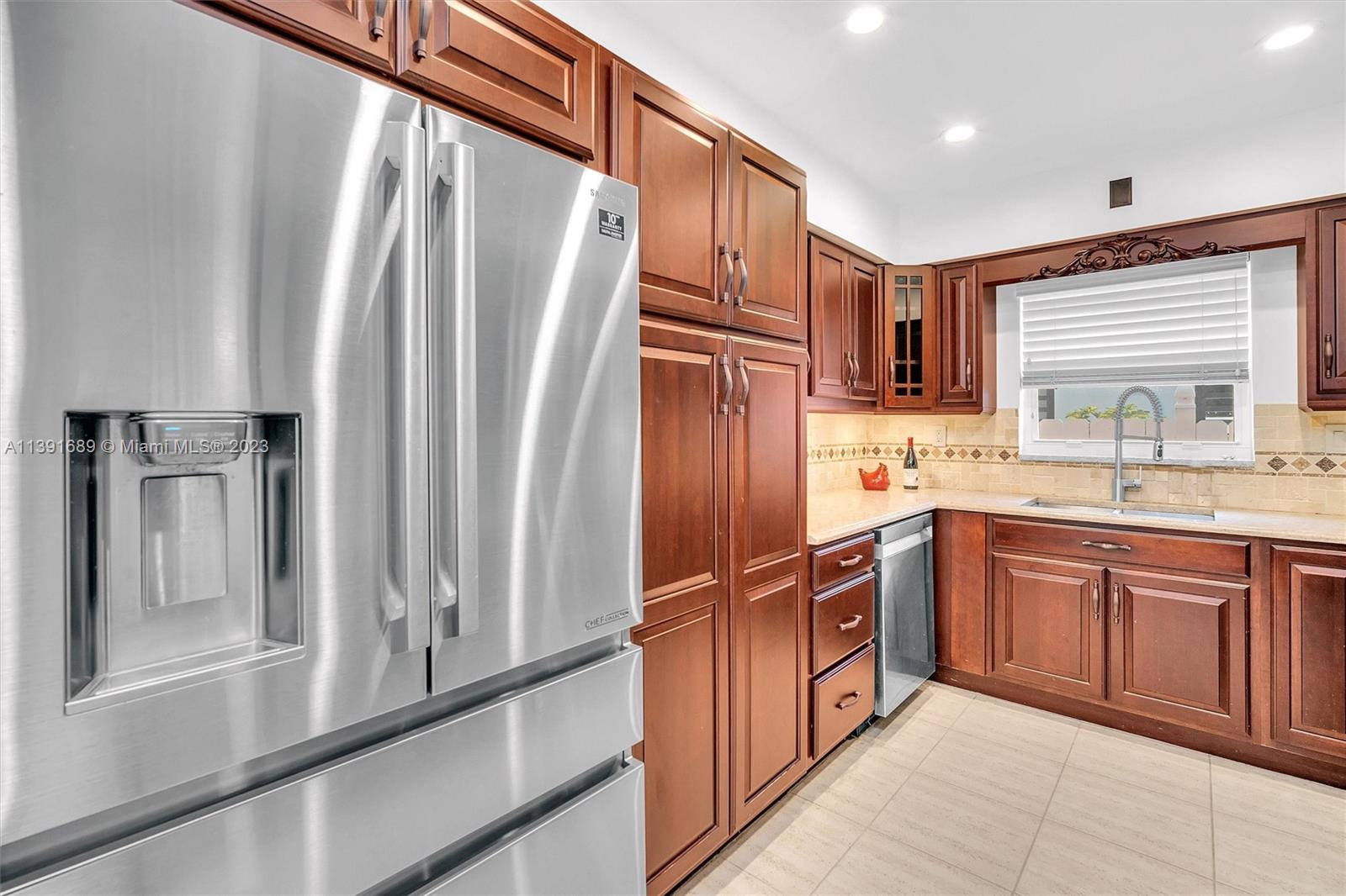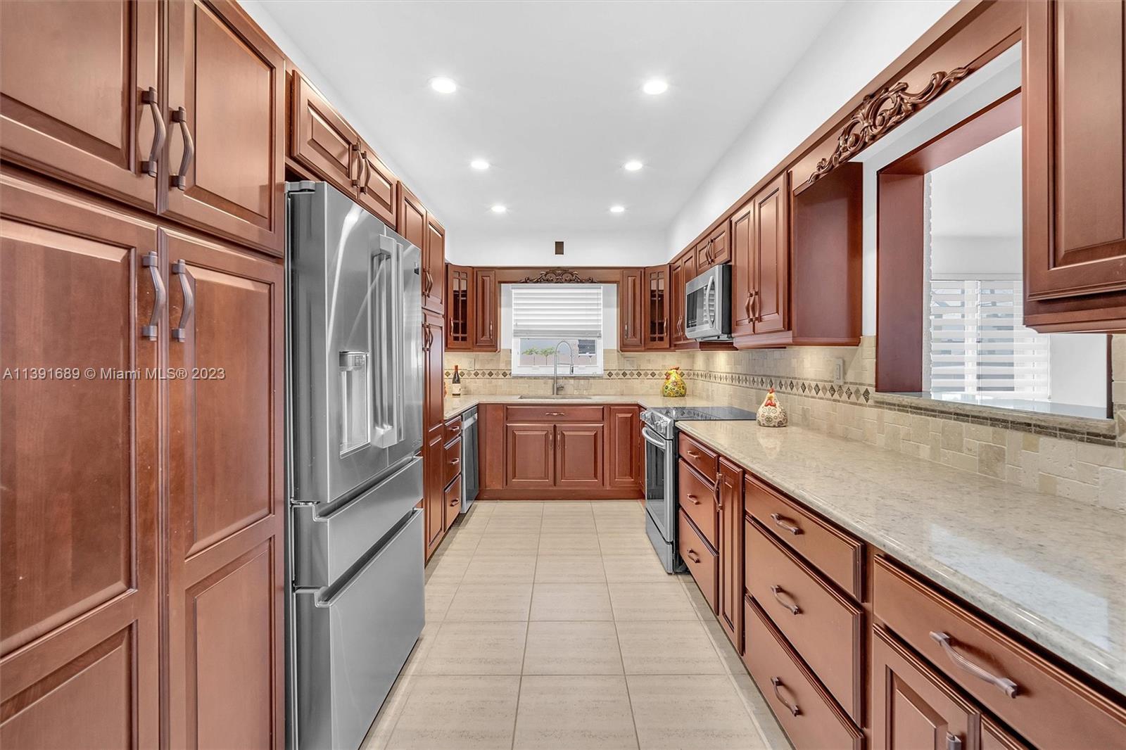 Beautiful home in Hollywood Lakes! 3 Bedrooms, 2.5 Baths, one car garage and a pool! Pristine property with updated kitchen, custom built cabinets, pullouts, SS Samsung Chef Collection appliances, quartz countertops and tumbled marble backsplash. Impact doors and windows throughout plus accordion shutters! Gorgeous coral rock wood burning fireplace. Living room, formal dining, large family room. Wood staircase with hardwood steps and iron details. Tile and hardwood flooring. Spacious cedar closets. Nice size laundry room. Chlorine pool with saltwater system available. Fenced backyard. Covered parking in front. Updated plumbing in baths and kitchen. Located just minutes from the famous Hollywood Beach Broadwalk, Downtown Hollywood, Aventura, Dining, Shopping, and Ft Laud Int'l Airport!