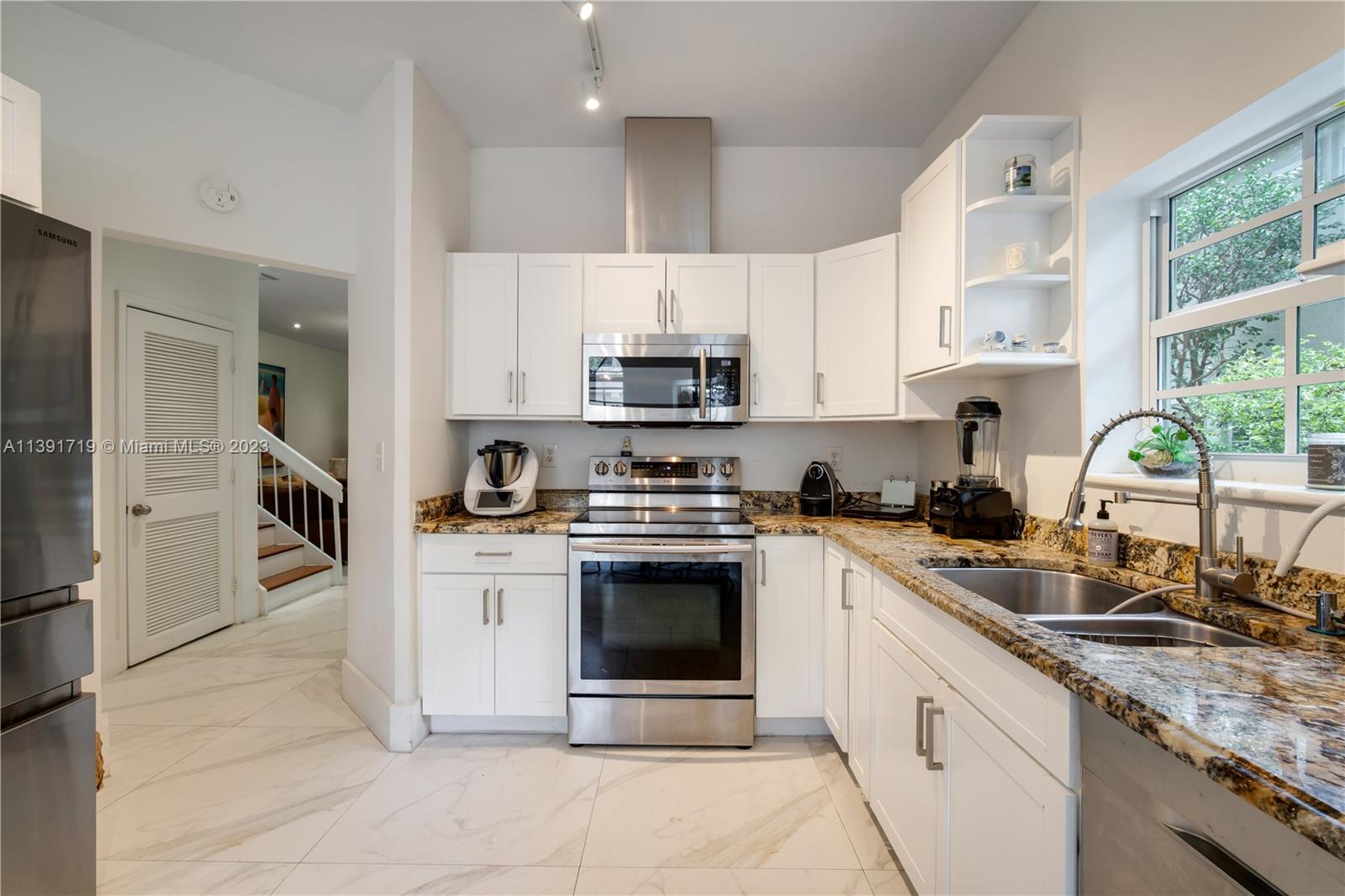 This gorgeous 2-story townhouse was renovated by a top interior designer in 2019 with elegant high finishes.Open and bright layout, with 3 br, 2.5 ba, and 1 den can be used as a 4th bedroom or office. Features: private patio, high ceilings, stunning marble throughout the first floor, custom closets, wood floor bedrooms, roof (2018), AC (2019), and a 2-car driveway, including jacuzzi and family TV room. Rarely available in the private gated community. Sutton Place, in the Village of Pinecrest. Community amenities include 2 tennis courts, a swimming pool, and a clubhouse. Highly sought-after location, short distance to Dadeland mall, supermarkets, restaurants and the Metrorail. Near excellent private and public schools. You must see this home to appreciate it's beauty.
