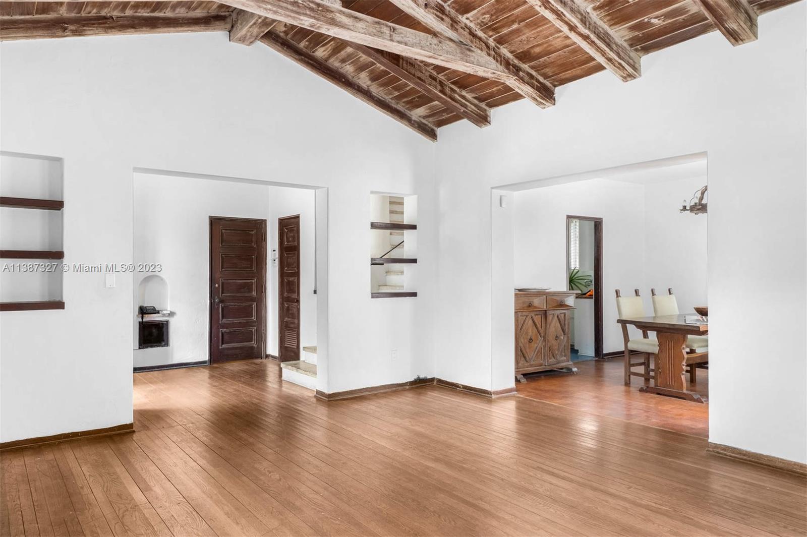 This property has the largest dry lot, 11,000 SF-at the lowest price, $3.2M- currently available on North Bay Road. The romance of a bygone era endures in this 1934 Carlos Schoeppl home. The sprawling house has the original floor plan & vaulted ceilings. With a great limestone outdoor fireplace & large patio, the home was designed for an easy & casual outdoor lifestyle. Call your architect & restore the home to its original splendor or start over & build a resilient, 5000 SF plus home of tomorrow. Land use allows 2 living units. La Gorce Country Club & La Gorce playground are one block away. North Bay Road is unlike any street in America. It has always been home to the rich, famous & infamous. Become a legend in your time and take your place on this very storied street.